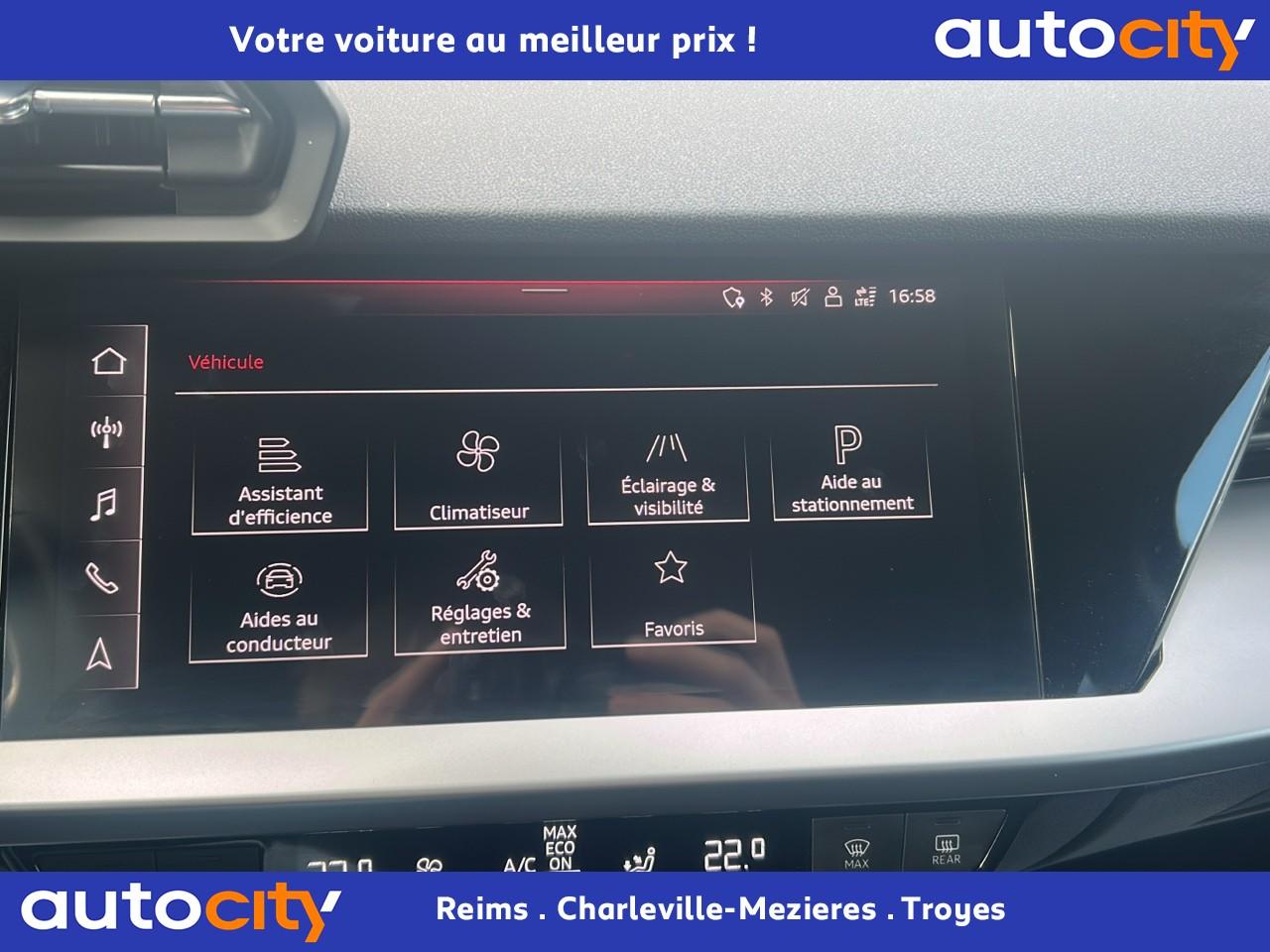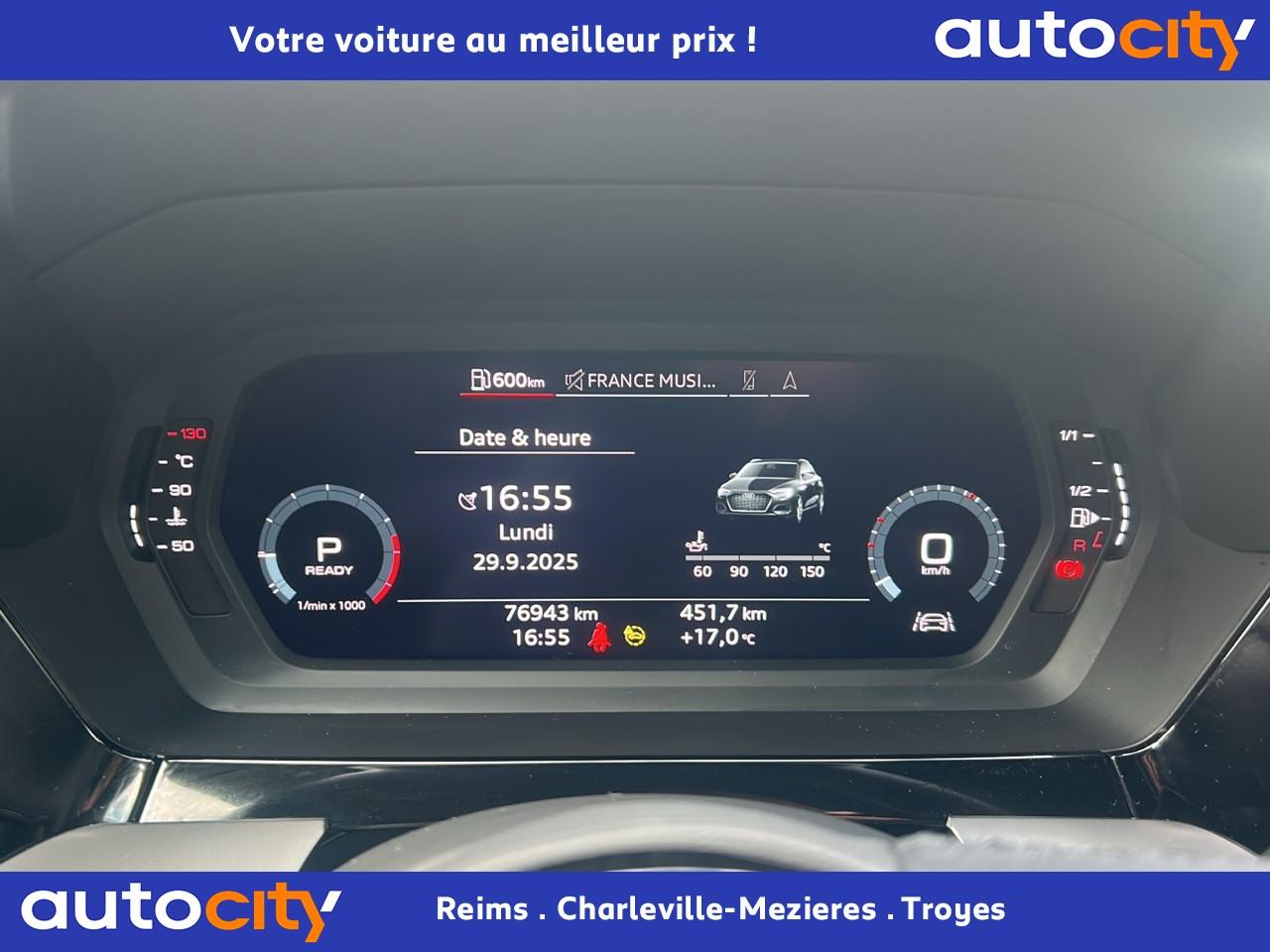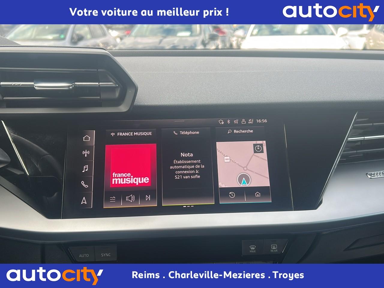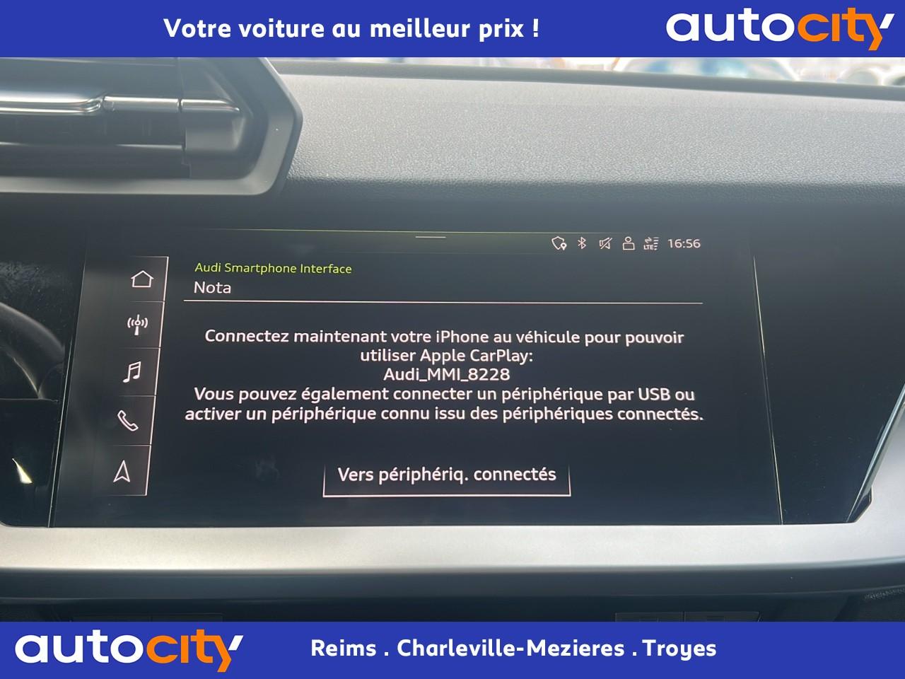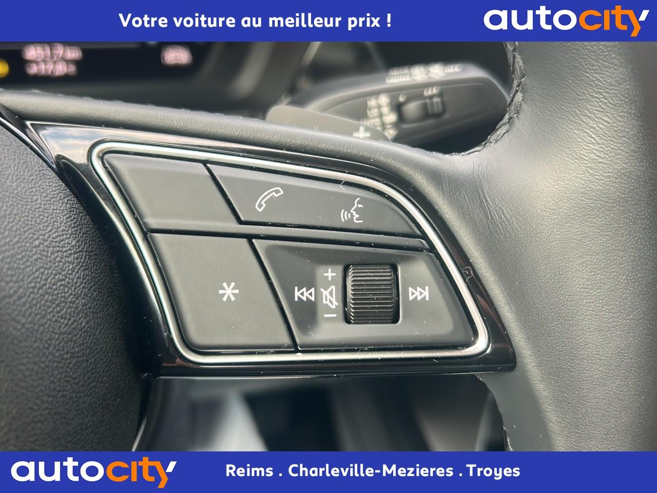 6 haut-parleurs (passifs)Accoudoir central coulissant en longueur, avec inclinaison réglableAppel d’urgence Audi connectApplications décoratives effet spécial soieAppui lombaire à 4 axes avec réglage électrique, pour les sièges conducteur et passager avant, réglage horizontal et verticalAudi connect Appel d’urgence & ServiceAudi connect navigation et divertissement plusAudi Drive SelectAudi Park AssistAudi pre sense frontAudi virtual cockpit : combiné d'instruments entièrement numérique de 10,25"Avertissement de sortie de voieBanquette arrière rabattable 40/60Calandre en noir matCaméra de reculCiel de pavillon en tissuClé à fréquence radio (sans safelock)Climatisation automatique confort 2 zonesCommande de désactivation d'airbag passager avantContrôle de la pression des pneumatiquesDétecteur de pluie et allumage automatique des projecteursDiffuseur arrière noir matDirection assistée électromécanique asservie à la vitesseEcrous antivolI-Size et Top Tether pour les sièges arrière extérieursInterface BluetoothJantes en alliage léger, 5 branches parallèles, dimension 8,0J x 17 avec pneus 225/45 R17Kit anticrevaison (compresseur et produit de colmatage)Limiteur de vitesseMMI navigation plus avec MMI touchOutillage de bordPack aluminium intérieurPack Brillance extérieurPack Eclairage intérieurPare-brise avec isolation acoustiquePeinture verniePhares à LED avec clignotants dynamiques à l’arrièreRappel de ceinture de sécurité avec dispositif arrière de détection d’occupation du siègeRéception radio numérique (DAB)Régulateur de vitesseRétroviseur intérieur à position nuit automatique, sans encadrementRétroviseurs extérieurs couleur carrosserieRétroviseurs extérieurs réglables, dégivrants, rabattables électriquement avec fonction rabat automatique (côté passager avant, marche arrière enclenchée) et fonction jour/nuit automatique des deux côtésSécurité enfant électriqueSellerie tissu IndexSièges avant classiquesSièges avant réglables manuellementTapis de sol avant et arrièreTrousse de secours, triangle de présignalisation et 2 vestes de sécuritéVolant 3 branches multifonctions plus en cuir et palettes de changement de vitesses