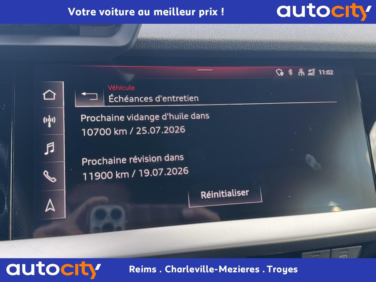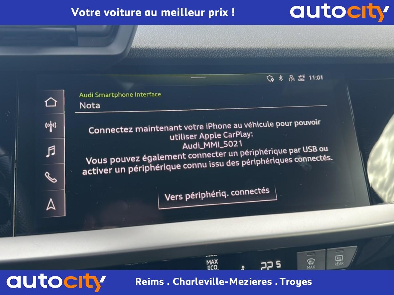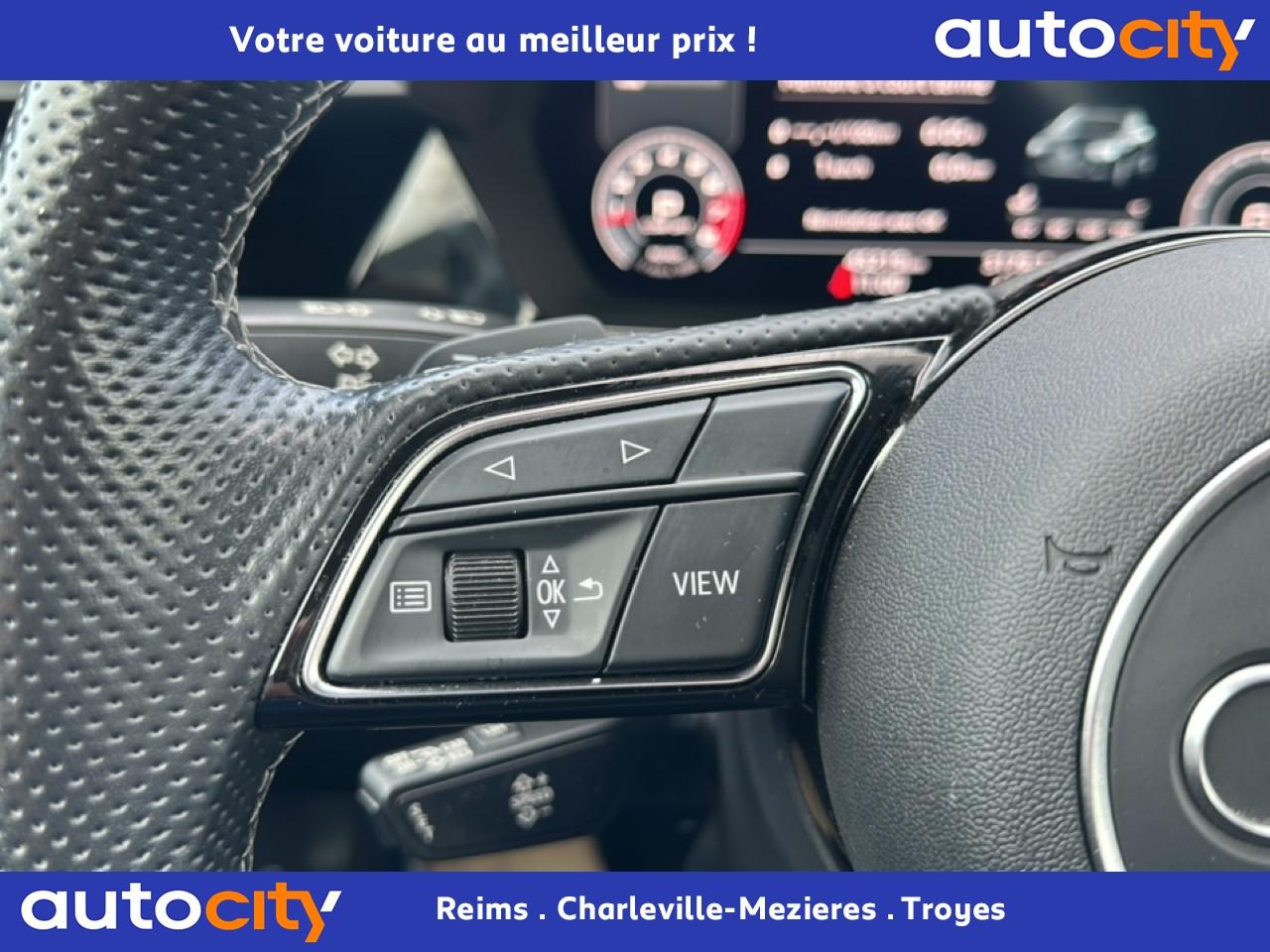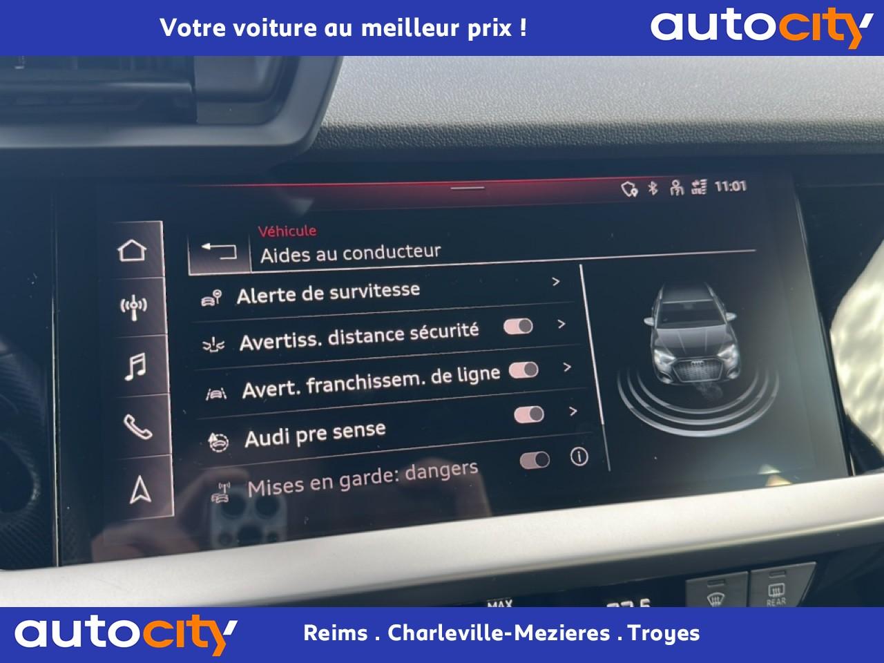 2 prises USB à l'arrièreAirbags latéraux à l'avant et système d'airbags de têteAppel d’urgence Audi connectApplications décoratives en aluminium spectre foncéAudi connect Appel d’urgence & ServiceAudi connect navigation et divertissement en combinaison avec MMI navigation plus avec MMI touchAudi Drive SelectAudi Park AssistAudi pre sense frontAudi smartphone interfaceAudi sound system : 10 haut-parleurs incluant un haut-parleur central et un subwoofer ; amplificateur à 6 canaux avec une puissance totale de 180 wattsAudi virtual cockpit : combiné d'instruments entièrement numérique de 10,25"Avertissement de sortie de voieBanquette arrière rabattable 40/60Caméra de reculCiel de pavillon en tissu noirClé à fréquence radio (sans safelock)Climatisation automatique confort 2 zonesCommande de désactivation d'airbag passager avantContrôle de la pression des pneumatiquesDétecteur de pluie et allumage automatique des projecteursDirection assistée électromécanique asservie à la vitesseEcrous antivolI-Size et Top Tether pour les sièges arrière extérieursInterface BluetoothJantes en alliage léger, 5 branches en Y, Gris Graphite, tournées brillantes, dimension 8,0J x 18 avec pneus 225/40 R18Kit anticrevaison (compresseur et produit de colmatage)Limiteur de vitesseMMI navigation plus avec MMI touchOutillage de bordPack Eclairage intérieurPack Extérieur S linePack Intérieur S linePalettes de commande au volantPare-brise avec isolation acoustiquePeinture verniePhares à LED avec clignotants dynamiques à l’arrièreRappel de ceinture de sécurité avec dispositif arrière de détection d’occupation du siègeRéception radio numérique (DAB)Régulateur de vitesseRétroviseur intérieur à position nuit automatique, sans encadrementRétroviseurs extérieurs couleur carrosserieRétroviseurs extérieurs réglables, dégivrants, rabattables électriquement avec fonction rabat automatique (côté passager avant, marche arrière enclenchée) et fonction jour/nuit automatique des deux côtésSécurité enfant électriqueSièges avant réglables manuellementTrousse de secours, triangle de présignalisation et 2 vestes de sécurité