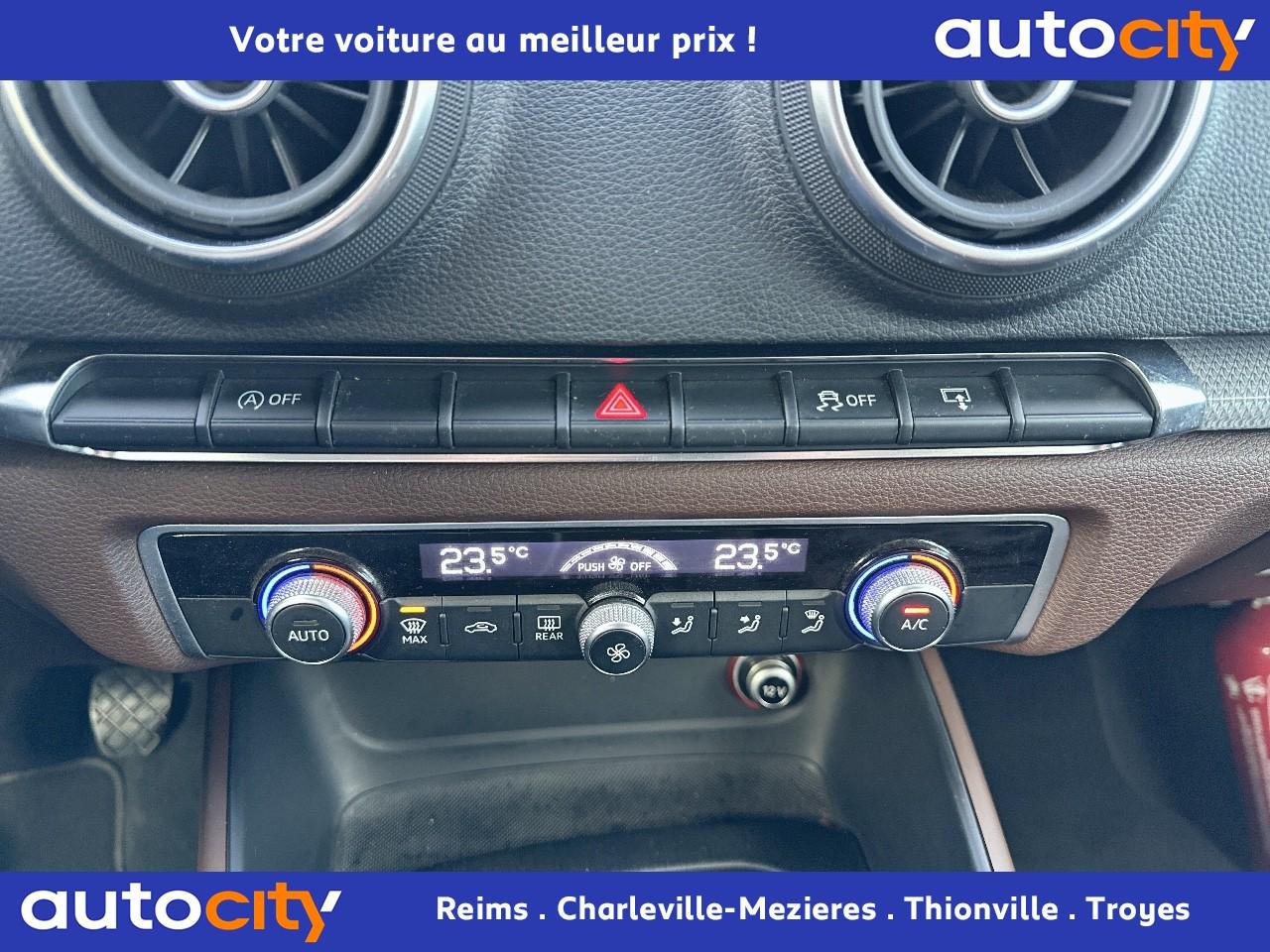 Œilletons de fixation, 4 dans le coffre, pour maintenir les bagages et objets dans le coffre, points de fixation pour le filet mixte en optionAccoudoir central avant coulissant en longueur, avec vide-poches relevable et inclinaison réglableAirbag genoux conducteurAirbags grand volume pour le conducteur et le passagerAirbags latéraux à l'avant intégrés au dossier des siègesAllume-cigare et cendrier amovible, couvercle chromé avec anneaux AudiAntipatinage (ASR)Applications décoratives sur les contre-portes et tableau de bord “Argent micrométallique”Applications décoratives sur les panneaux de contre-portes et le tableau de bordAudi Drive SelectAudi Singleframe avec encadrement chromé de la calandreBecquet de pavillon laqué dans la couleur de la carrosserie, avec inserts aérodynamiques latéraux noir brillantBlocage électronique de différentiel (EDS)Boîte à gants grand volume côté passager avant, éclairéeCache-bagages amovibleCarrosserie galvaniséeCeintures de sécurité 3 points automatiques pour toutes les placesChâssis dynamique. À l'avant : suspension Mc-Pherson avec bras triangulés transversaux inférieurs, châssis auxiliaire en aluminium et barre stabilisatrice. À l'arrière : un essieu arrière à bras oscillant mixte légerChâssis Sport, carrosserie surbaissée de 15 mm, avec suspension et amortisseurs plus fermesClimatisation automatique Confort avec réglage asservi à la position du soleilContrôle électronique de stabilisation (ESC) avec blocage transversal électroniqueContrôle électronique de stabilisation (ESC) désactivable, avec amplificateur hydraulique de freinage d'urgenceContrôle de ceinture attachée pour toutes les placesContrôle de pression des pneus ( TPMS )Détecteur de pluie et allumage automatique des projecteursDirection assistée électromécanique avec assistance asservie à la vitesse (servotronic)Dossier de banquette arrière rabattable en deux parties 40/60 ou complètementEclairage intérieur à l'avant et à l'arrièreEcrous antivolFeux arrière avec feux de recul blancs et feux de brouillard arrière, incluant troisième feu stop surélevé et éclairage de plaque à LEDFeux de freinage adaptatifsFixation pour sièges enfants ISOFIX et Top Tether pour les places arrièreIdentification du modèle/technologie sur le capot de coffreJantes en aluminium coulé style 5 branches dynamiques. 7,5 J x 17" avec pneus 225/45 R 17Lève-vitres à l'avant et à l'arrière, électriques, avec protection antipincement, ouverture/fermeture par le verrouillage centralisé, fonction ouverture/fermeture par impulsionLave-essuie-glace 2 vitesses, 4 intervalles de balayage réglablesLunette arrière dégivrante, avec minuterieMiroir de courtoisie côté conducteur et passagerMMI RadioMoulures de seuils de portes avec inserts en aluminiumOutillage de bord dans le coffre incluant un cricPare-brise acoustique, améliore l'isolation phonique du pare-brise et réduit les bruits extérieursPare-chocs dans la couleur de la carrosseriePare-soleil rabattables et pivotants, côtés conducteur et passager avant, avec miroir de courtoisie occultablePatères à vêtements sur les montants de pavillon centraux, à gauche et à droite, simplesPhares halogènes à surfaces libres sous vitre transparente, réglage électrique du site des phares et commande de feux de stationnement, feux diurnesPoignées de maintien. 4 poignées avec mécanisme amortisseur, rabattables, encastrées dans le pavillonPréparation pour téléphone portable (Bluetooth)Prise de courant 12 volts sur la console centrale à l'avantProjecteurs antibrouillardProtection antidémarrage électronique, intégrée à la gestion du moteur, activation automatique par la clé du véhiculeProtection latérale anticollision avec barres extrêmement rigides dans les portières et une structure latérale de carrosserie renforcéeRégulateur de vitesseRétroviseur intérieur électrochromeRétroviseur intérieur jour/nuit, boîtier dans la couleur du ciel de pavillonRétroviseurs extérieurs électriques et dégivrants incluant buses de lave-glaces dégivrantesRétroviseurs extérieurs avec clignotants à LED intégrésRecommandation de repos qui analyse le comportement routier au moyen de différents capteursSellerie tissu “Rallye”Sièges à l'avant avec positionnement en longueur et inclinaison de dossier réglables manuellementSièges conducteur et passager avant réglables en hauteurSièges Sport à l'avant avec bourrelets latérauxSignal sonore pour oubli d'extinction des feuxSortie d'échappement simple chroméeSystème d'airbags de têteSystème d'information du conducteur (écran monochrome)Système d'information du conducteur avec écran couleur haute résolution de 3,5 poucesSystème de freinage avec antiblocage (ABS) et répartiteur électronique de freinage (EBV)Système de ventilation et chauffage 4 diffuseurs d'air rondsTémoins de contrôle pour, entre autres : airbag, ABS, ESC/ASR, frein de stationnement serré, électronique EDS, phares, clignotants, circuit de freinage, pression d'huile moteur, fermeture du coffre, système électrique du moteur, système de pr&eacuTapis complémentaires à l'avant et à l'arrière assortis à la couleur de la moquetteTriangle de présignalisation fixé sur l'intérieur du capot du coffreTrousse de secours dans le vide-poches sous le siège passagerVerrouillage centralisé à télécommandeVide-poches sur les habillages des portières ainsi que sur la console centrale avec porte-boissonVolant réglable en hauteur et en profondeurVolant Sport 3 branches multifonction en cuir