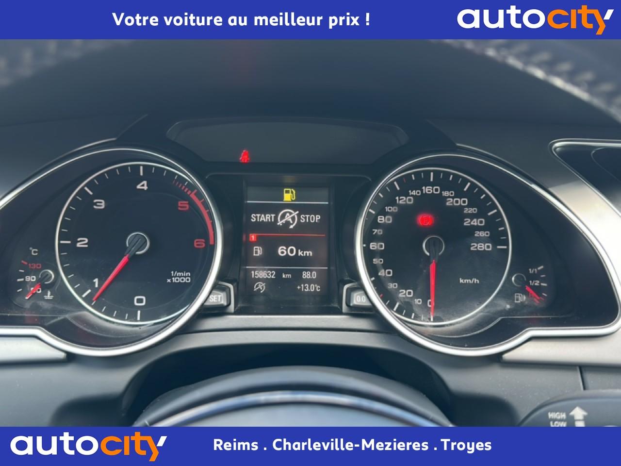 Étui à lunettes, dans le module d'éclairage intérieur avant, au-dessus du rétroviseur intérieurAccoudoir central avant avec vide-poches et 2 prises 12 V dans la console centraleAirbags grand volume pour conducteur et passager avant avec détecteur de la position d'assise ; airbag adaptatif pour le conducteur et passager avantAirbags latérauxAllume-cigare intégré dans le cendrier avantAntipatinage ASR pour une motricité optimale, empêche le patinage des roues motricesApplications décoratives en aluminium brossé matAppuie-têtes réglables à l'avant et à l'arrièreAvertisseur deux tons avec commande au centre du volantBlocage électronique de différentiel EDSCalandre Singleframe avec lamelles horizontales noires brillantesCapot de coffre à déverrouillage par la télécommande ou par actionnement de la touche douce sur le capot du coffreCarrosserie galvaniséeCeintures de sécurité, automatiques à trois points pour les quatre placesCendrier dans la console centrale à l'avant et à l'arrièreChâssis DynamiqueChâssis Sport avec amortissement plus ferme et suspensions renforcéesChangeur 6 CD compatible MP3 et WMA dans la boîte à gantsCiel de pavillon en tissu noirClimatisation automatique Confort Plus 3 zones à fonctionnalités étendues et affichage numériqueColonne de direction de sécuritéContact d'allumage électronique ; clé de contact pouvant mémoriser différentes données d'entretienContrôle électronique de stabilisation ESC, relie ABS, ASR et EDS à ses propres capteursContrôle de pression des pneus, vérifie durant la marche la pression de chacune des roues en serviceCric dans le coffreDésactivation de l'airbag passager (désactive aussi l'airbag latéral passager)Détecteur de pluie et allumage automatique des projecteursDirection asservie à la vitesse servotronicDossier des sièges arrière rabattable séparément 2/3 - 1/3, avec déverrouillage à distance des dossiers depuis le coffreEclairage intérieur à extinction temporisée et contacteurs sur toutes les portières ; éclairage coffre, conducteur passager avant et arrière, deux spots de lecture à l'avant, éclairage intérieur de l'arrière, miroir de cEcrous antivolEntourages de vitre en aluminium, revêtement noir brillant sur les montants de pavillon centraux et les triangles des portières arrièreFonction Start/StopFrein de stationnement electromécaniqueGPS PlusIndicateur d'usure des disques à l'avantIndicateur de rapport de vitesse dans le système d'information du conducteur : apporte assistance au conducteur dans le choix du rapport de vitesse adaptéIndicateur de température extérieure dans le système d'information du conducteurInscriptions S line sur ailes avant et seuils de portesInstrumentation à éclairage réglable, tachymètre électronique avec compteur kilométrique totalisateur et journalier, compte-tours, horloge, indicateur de température du liquide de refroidissement et jauge de carburantJantes Audi exclusive en aluminium coulé style 5 branches doubles, 8,5 J x 18”, avec pneus 245/40 R 18.Lève-vitres électriques à l'avant et à l'arrière avec protection antipincement et fonction ouverture/fermeture Confort par impulsionLave-glace, deux vitesses, réglage d'intermittence sur 4 niveaux, commande de balayage coup par coup, lavage-balayage automatiqueLave-phares haute pressionLimiteurs d'effort des ceintures de sécurité avantLunette arrière dégivrante avec minuterieOrdinateur de bord couleur et système de contrôle AutocheckOutillage de bord dans le coffreParking System : système acoustique d'aide au stationnement arrièrePhares antibrouillard intégrés dans le pare-chocsPhares halogènes à projecteur ellipsoïdal sous vitre transparentePoignées de maintien, amorties, rabattables dans les deux sens, dans le ciel de pavillonPoignées de portières extérieures laquées dans la couleur de carrosserie, poignées cintrées agréables à utiliserPommeau de levier de vitesses en cuir perforé, surpiqûres de soufflet de levier de vitesses argentPré-équipement attelagePréparation ISOFIX pour sièges latéraux arrière et siège passager avantPréparation téléphone 2 W bi-bande (D et E)Prétensionneurs des ceintures de sécurité avantProtection antidémarrage électronique, intégrée à la gestion du moteur, activation automatique par la clé du véhiculeQuatre oeilletons de fixation, pour maintenir les bagages et objets dans le coffre, points de suspension pour le filet mixteRéglage d'appuis lombaires électriques sur 4 plans pour sièges avantRégulateur de vitesse électronique actif dès 30 km/h. Inclut fonction de freinage. Affichage de la vitesse paramétrée sur l'écran de l'ordinateur de bordRéservoir avec protection contre les erreurs de ravitaillementRétroviseur intérieur jour/nuit automatique incluant une bande grise en haut du pare-briseRétroviseurs extérieurs avec clignotant latéral intégré à diodes, réglable électriquement, boîtiers dans la couleur de la carrosserie, miroir asphériqueRétroviseurs extérieurs et buses de lave-glace chauffantsRangements dans les contre-portes à l'avant avec casier de rangement pour boissons, rangements à l'arrière sur les côtés du siège et dans les garnitures latérales arrièreRoue de secours temporaireSellerie mixte cuir/tissu Sprint avec logo S line sur le dossier des sièges avantSièges avant Sport incluant réglage de la longueur d'assise et appuis lombaires électriques sur 4 plans.Sideguard, système d'airbags de tête grand formatSortie d'échappement visible double, une double sortie à gaucheSystème audiophonique AudiSystème d'information du conducteur avec affichage monochromeSystème de freinage à double circuit en diagonale, système antiblocage ABS avec répartiteur de freinage EBV, avec assistant de freinage EBD, servofrein tandem,freins à disques avant et arrière, ventilés à l'avantTélécommande à fréquence radio pour le verrouillage centralisé, intégré