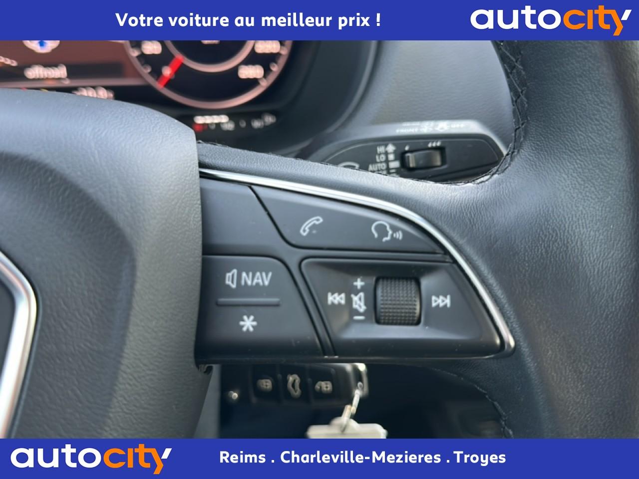 Accoudoir central avant ConfortAffichage du contrôle de la pression des pneumatiquesAirbags latéraux à l'avant et système d'airbags de têteApplications décoratives en aluminium brossé matAssistant de feux de routeAudi connect sécurité et assistance en ligneAudi Drive SelectAudi Hold AssistAudi Music InterfaceAudi phone box avec charge du téléphone par inductionAudi pre sense frontAudi sound system : 10 haut-parleurs incluant un haut-parleur central et un subwoofer ; amplificateur à 6 canaux avec une puissance totale de 180 wattsAvertissement de sortie de voieBlade en Argent MagnesiumCâbles de recharge pour téléphone portable, compatibles iPhone et AndroidCiel de pavillon en tissu noirClé confortClimatisation automatique confort 2 zonesDésactivation de l'airbag du passager avantDétecteur d'occupation des sièges avantDétecteur de pluie et allumage automatique des projecteursDirection progressiveDossier de banquette arrière rabattable en deux parties 40:60 ou entièrementFeux arrière à LEDInscription “S line” sur les ailes avantJantes en aluminium, 5 branches design dynamique, contrastées gris, 7,0J x 18, avec pneus 215/50 R18Lève-vitres électriques à l'avant et à l'arrièreMoulures de seuils avec insert en aluminium et emblème S, éclairéesPack aluminium intérieurPack Assistance StationnementPack ConfortPack ConnectivityPack Eclairage d'ambiancePack Intérieur SportPare-brise avec bandeau pare-soleil grisPeinture intégralePeinture vernie Blanc ArkonaPhares Matrix LED avec clignotants dynamiques à l’arrièreRéception radio numérique, réception des signaux DAB, DAB+ et DMB AudioRégulateur et limiteur de vitesseRétroviseurs extérieurs couleur carrosserieSécurité enfant électriqueSet de réparation pour pneus avec compresseur 12 volts et produit de colmatage pour les pneus, vitesse maximale 80 km/hSièges sports à l’avant en tissu IndexSystème d'information du conducteur avec écran couleurTapis de sol AV et ARTriangle de présignalisation et trousse de secoursVitres athermiquesVolant Sport S line en cuir style 3 branches avec multifonction avec emblème S (poignées de volant en cuir perforé)