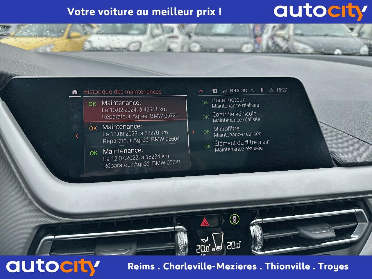 Accoudoir central avant coulissantAide au maintien dans la voie avec avertisseur de franchissement de ligne et correction de trajectoireAirbag passager déconnectableAirbags conducteur et passagerAirbags latéraux avantAirbags rideauxAluminium Line satiné BMW IndividualBMW Live Cockpit Navigation PlusBoîte steptronicCiel de pavillon anthraciteClimatisation automatiqueContrôle de freinage en courbe CBCContrôle dynamique de la stabilité DSCContrôle Dynamique de la Traction DTCDémarrage sans cléDétecteur de pluie et allumage automatique des projecteursEcrous antivolFeux de jour à LEDFixations ISOFIX aux places arrièreIndicateur de limitation de vitesseInserts décoratifs"Quartz Silver" mat grainéJantes alliage 17" style 548 bicolores Orbit Grey/AluminiumKit de mobilité BMWKit rangementPack Connected ProPark AssistPeinture métalliséeProjecteurs antibrouillard à LEDProtection active des piétonsRégulateur de vitesse avec fonction freinage en descenteRétroviseur intérieur anti-éblouissementRétroviseurs extérieurs rabattables électriquementSellerie Tissu "Grid" AnthraciteSiège passager réglable en hauteurSystème anti-collision à basse vitesseSystème antiblocage des roues (ABS)Tapis de sol en veloursTuner DABVolant gainé cuir avec touches multifonctions