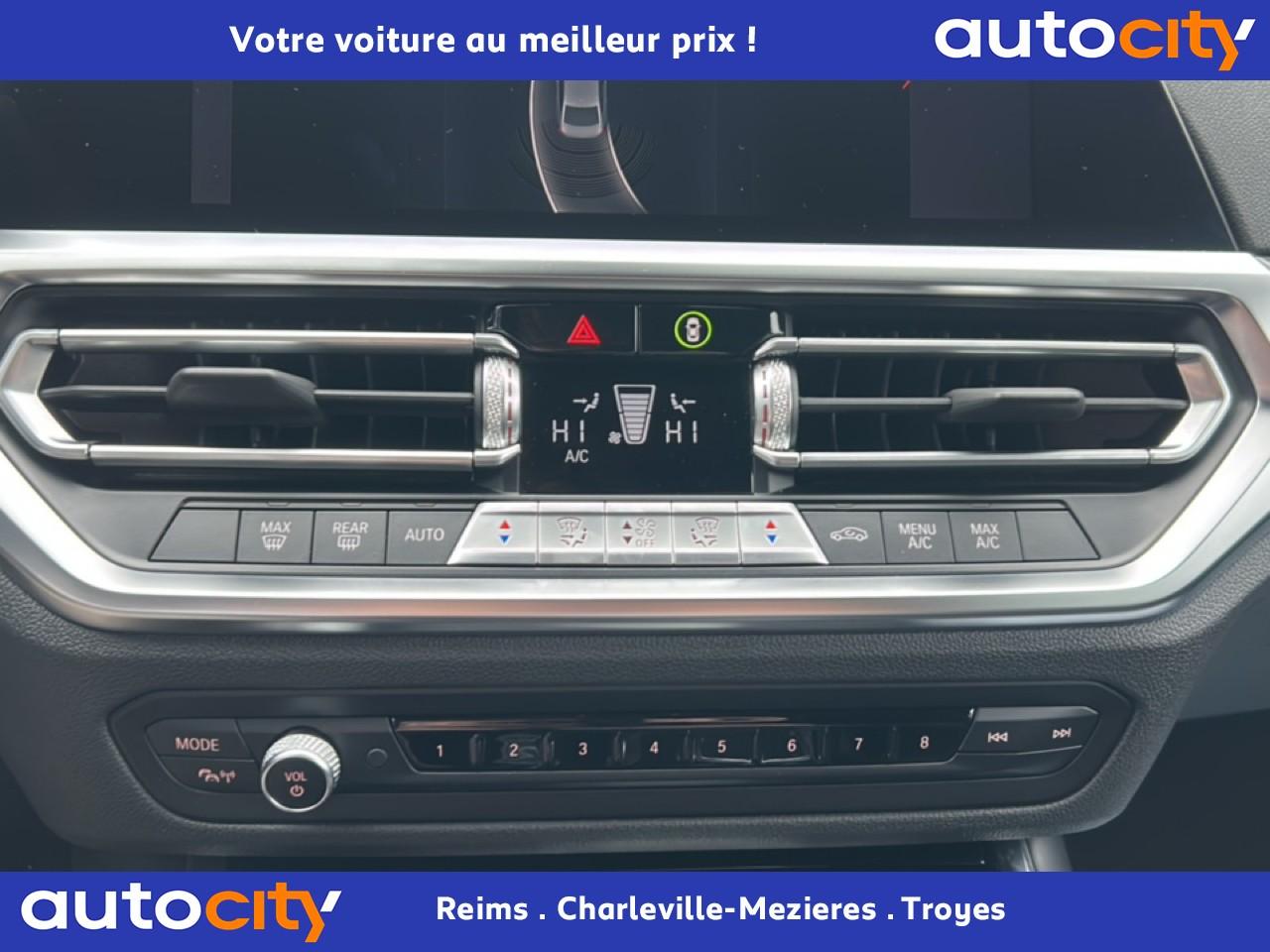 2 appuie-têtes arrière latéraux réglables en hauteurAide au démarrage en côte, pré-charge du circuit de freinage au lever de pied, séchage des disques de freins et compensation du fadingAirbag passager déconnectableAirbags de tête avant et arrière avec voile de protection contre les débris de verreAirbags frontaux AVAirbags latéraux avantAllumage automatique des projecteursAluminium Line satiné BMW IndividualAntenne de toit « aileron de requin »Anti-démarrage électroniqueAppuie-tête à l'avant, réglables en hauteurAttention Assist : système de détection de somnolenceAvertisseur de risque de collisionBaguettes de seuil de portes sigléesBanquette arrière 3 places avec dossiers rabattables en trois parties (40/20/40)BMW Live Cockpit Navigation ProBoîte de vitesses automatique à 8 rapportsCarnet d'entretien électronique embarqué "BMW Service History"Ceintures de sécurité à 3 points (tous les sièges) avec prétensionneur pyrotechnique et limiteur de tension (à l'avant)Clés radiocommandées à mémorisation automatique des réglages "Personal Profile"Clignotants avant et arrières à LEDClimatisation automatique 3 zones avec filtre microporeux et fonction de recyclage d'airConnectivité avancéeContrôle de freinage en courbe CBCContrôle de la transmission pour favoriser une inscription dynamique dans le virageContrôle Dynamique de la Stabilité DSC+ avec fonctionnalités étenduesContrôle Dynamique de la Traction DTCDémarrage sans clé via le bouton de démarrage Start/Stop avec contour chroméDétecteur de pluie ajustant automatiquement la fréquence de balayage des essuie-glaceDifférentiel à blocage électronique pour optimiser la motricitéDirection Servotronic à assistance variable en fonction de la vitesseEclairage d'accompagnement "Follow me Home"Ecrous antivolFeux arrière antibrouillard à LEDFeux de jour à LEDFeux de route et feux de croisement à technologie bi-LEDFeux de stop dynamiquesFixations ISOFIX aux places latérales arrières pour sièges enfantFrein de parking électromécaniqueFreins à disques ventilés à l'avantGrilles de calandre cerclées de chrome avec 9 barreaux verticaux noirsHotspot Wi-FiIndicateur de maintenance CBS tenant compte des conditions de conduiteInserts décoratifs"Quartz Silver" mat grainéJantes 17" style 775 rayons en V bicoloresKit de mobilité BMWKit rangementMesure individuelle de pression des pneumatiquesMesures BMW EfficientDynamicsMontant central extérieur noir brillantNotice d'utilisation intégréeOrdinateur de bord avec Check-Control et indicateur de température extérieurePack Connected ProPare-soleil avec miroirs de courtoisie conducteur et passagerPark AssistPoignées de portes couleur carrosseriePortes arrière avec sécurité enfantProtection contre les erreurs de ravitaillementRadars de stationnement avant et arrière PDCRégulateur de vitesse avec fonction freinage et limiteur de vitesseRétroviseur intérieur anti-éblouissementRétroviseurs extérieurs avec rappels de clignotants intégrésRétroviseurs extérieurs couleur carrosserieRétroviseurs extérieurs dégivrantsRétroviseurs extérieurs rabattables électriquement et électrochromatique du côté conducteurSélecteur de mode de conduite - 3 modes : "ECO PRO", "Confort" et "Sport"Sellerie Tissu "Hevelius"Sièges conducteur et passager réglables en hauteur et inclinaison du dossierSortie d'échappement simple, ronde et chromée de 80mm de chaque côtéSystème anti-blocage des roues ABSSystème anti-collision à basse vitesseSystème audio à 6 haut-parleursSystème de haut-parleurs Hi-FiTapis de sol en veloursTeinte de carrosserie métalliséeTouches multifonctions sur le volantTriangle de présignalisation avec kit de premiers secoursVerrouillage centralisé avec télécommandeVitrage teinté pour réduire l'échauffement dû à l'ensoleillementVitres avant et arrière électriques à impulsion avec système ant-ipincementVolant réglable en hauteur et en profondeurVolant sport 3 branches gainé de cuir
