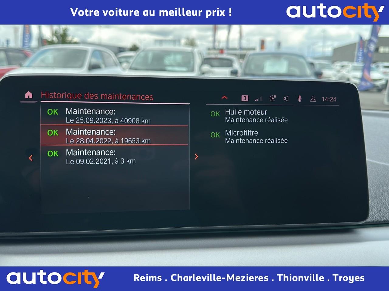 ABS (Antiblocage de roues)Accoudoir central arrière avec deux porte-gobeletsAirbags frontaux et latéraux AV + airbags de tête AV & ARAllumage automatique des projecteursBanquette arrière rabattable 40/20/40Boîte de vitesses automatique à 8 rapportsCaméra de reculClés radiocommandées à mémorisation automatique des réglages "Personal Profile"Climatisation automatique 2 zones à fonctionnalités étenduesCommande automatique du coffreConnectivité avancée sans fil avec HotSpot Wi-fi et recharge sans fil par inductionContrôle de pression des pneus ( TPMS )Contrôle Dynamique de la Traction (DTC)Contrôle Dynamique de stabilité (DSC)Désactivation de l'airbag du passager avantDétecteur de fatigue du conducteurEssuie-glace à déclenchement automatiqueFeux de stop dynamiques à technologie LEDFixations ISOFIX pour sièges enfant à l'arrièreFrein de parking électrique avec fonction "Automatic Hold"Hotspot Wi-FiInserts décoratifs Oxidsilber foncé mat avec baguette chrome Brillant perléJantes alliage 18" style 844Kit de mobilité BMWKit de réparation de pneusPack Connected ProPack InnovationPeinture Metallisée AlvitgrauProjecteurs LED, inclut quatre anneaux lumineux pour fonction d’éclairage diurne et réglage de la portée des projecteursRadars de stationnement PDC avant et arrièreRégulateur de vitesse avec fonction freinageRétroviseurs extérieurs rabattables électriquement et électrochromatique du côté conducteurSellerie Cuir Dakota Schwarz finition exclusive/ Passepoil contrastéSystème d'alarme antivolTapis de sol en veloursTeinte de carrosserie "Schwarz" unieTuner DABVolant Sport gainé cuir