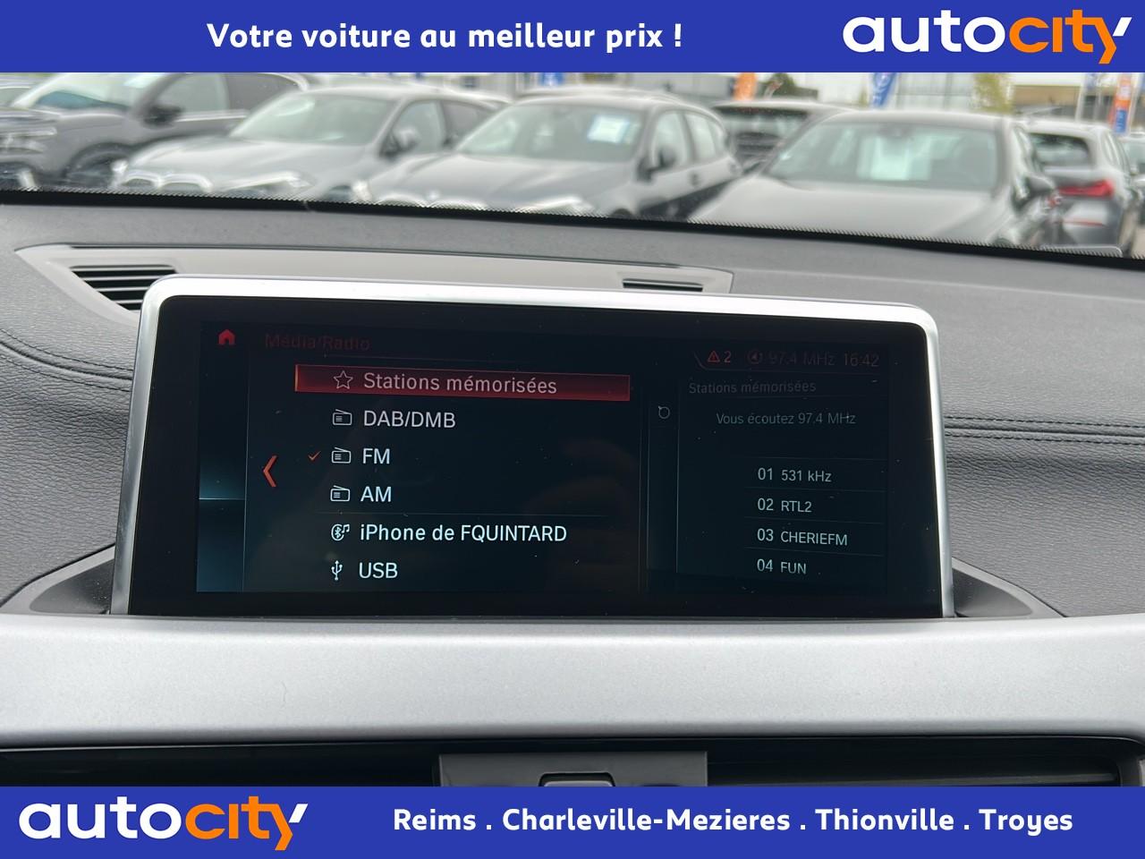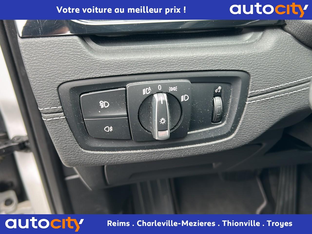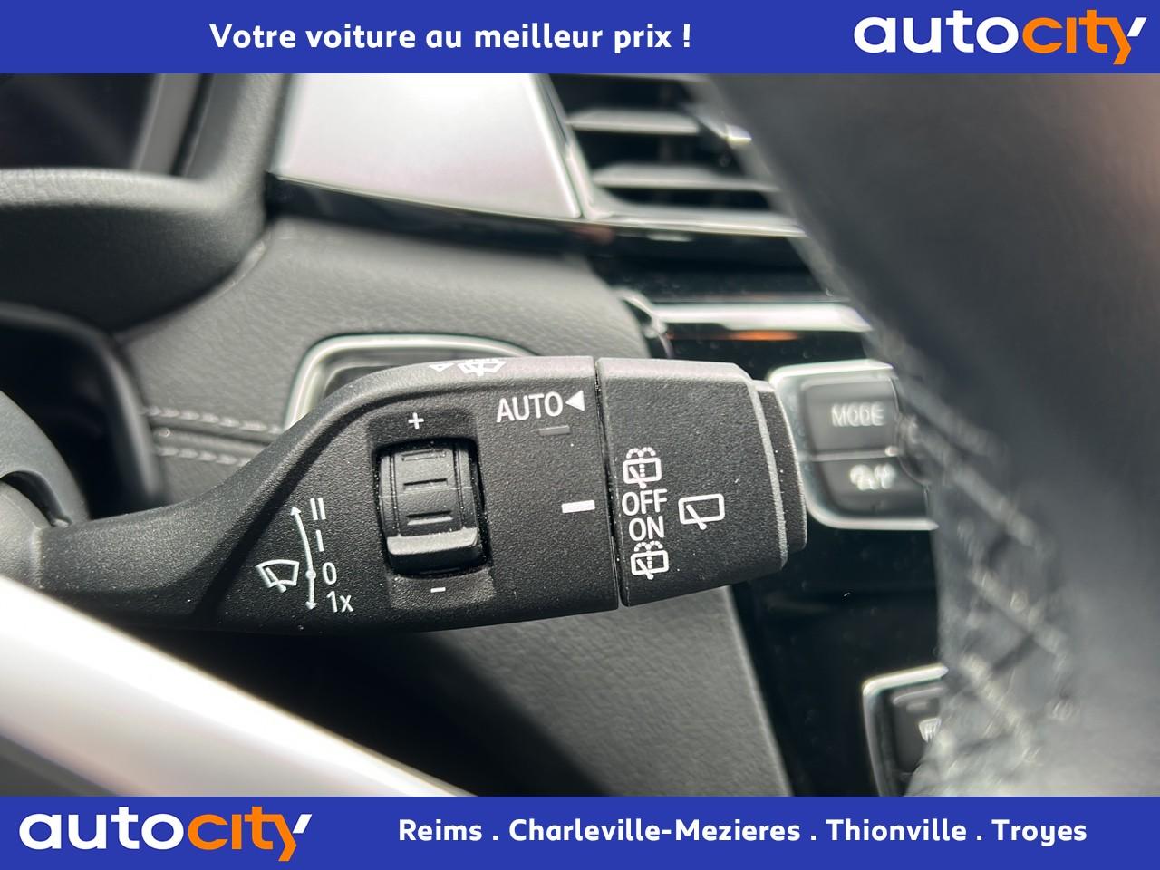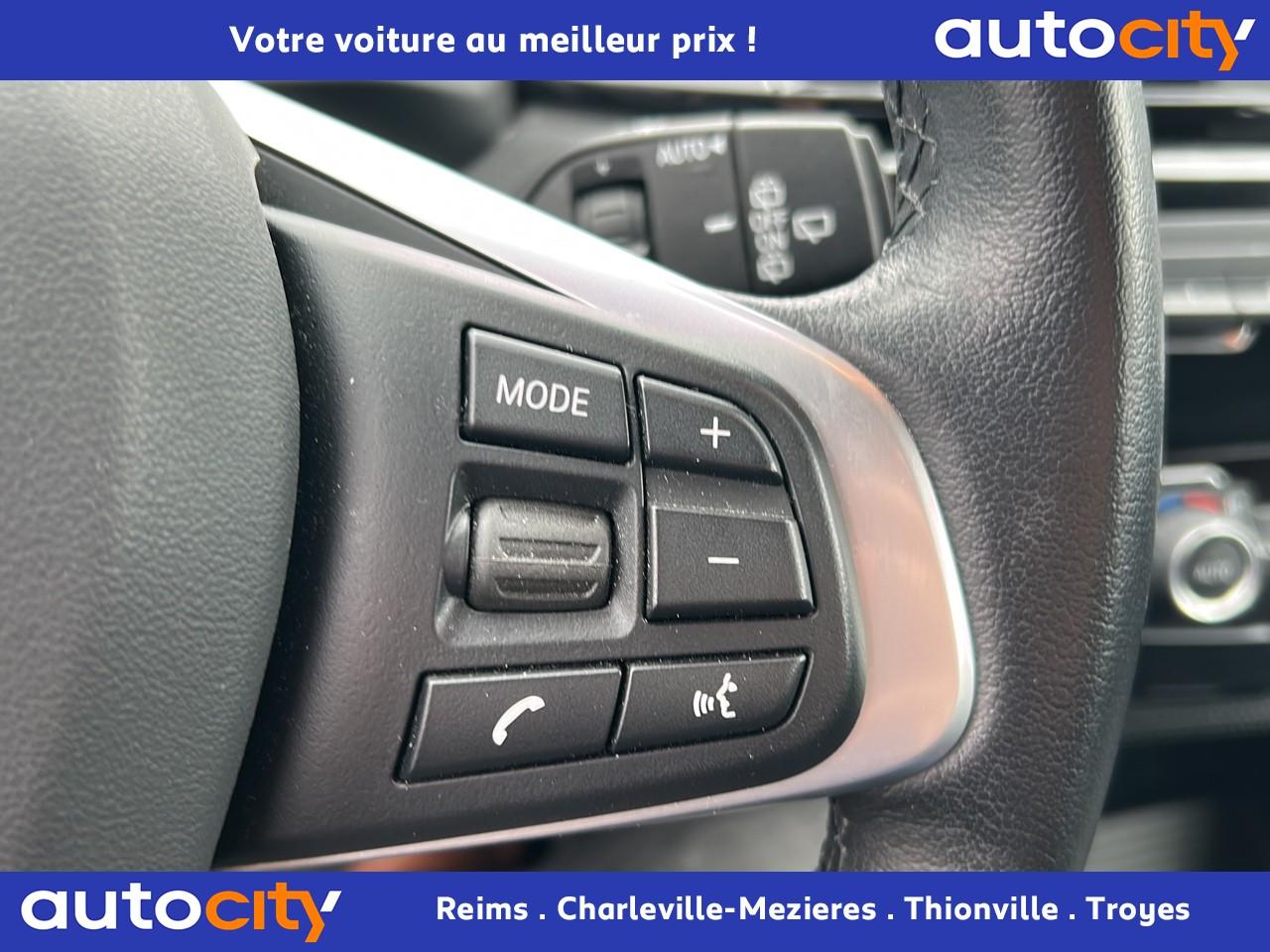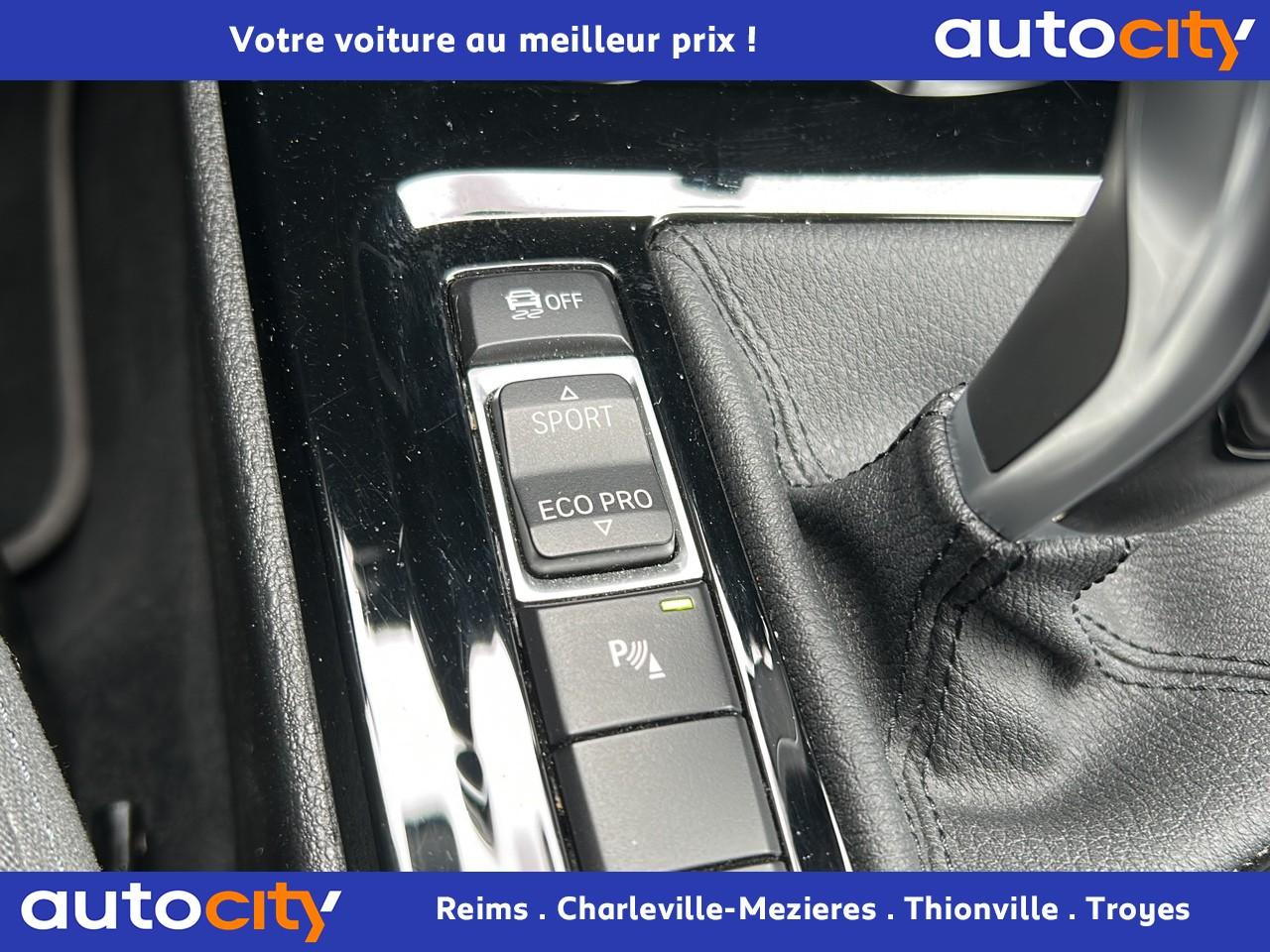 ABS avec aide au freinage d'urgenceAccoudoir central avantAirbag passager avant déconnectableAirbags conducteur et passager avantAirbags de tête ajustable avant et arrièreAirbags latéraux conducteur et passager avantAntenne de toit « aileron de requin »Appel d'Urgence Intelligent (durée de vie de la voiture)Attention Assist : système de détection de somnolenceAutoradio BMW Professional, 8 touches de favoris programmables, "Controller" iDrive avec touches de raccourci, 6 haut-parleurs, Ecran 6,5", Bluetooth avec streamingAvertisseur de risque de collisionBaguettes de seuils de portes avant avec l'inscription "BMW"Banquette arrière rabattable 40/20/40BMW AppsBMW ConnectedBoîte de vitesses automatique à double embrayage à 7 rapportsBouton de démarrage Start/Stop sans manipulation de la cléBuses de lave-glace chauffantesClés radiocommandées à mémorisation automatique des réglages "Personal Profile"Climatisation automatique bi-zoneColonne de direction réglable en hauteur/profondeurCommande électrique du hayonContrôle de la TransmissionContrôle Dynamique de la Stabilité DSC avec DTC (Dynamic Traction Control)Détecteur de pluie et allumage automatique des projecteursDéverrouillage électrique du hayon via la poignée ou la clé radiocommandéeDiffuseur aérodynamique avant "Air Curtain"Direction à assistance électrique servotronicEcrous antivolExtérieur Line Aluminium satinéFeux arrière 3D à LEDFeux de stop dynamiques clignotants avec technologie LEDFixations Isofix aux places latérales arrièreFonction d'arrêt et de redémarrage automatique du moteurFonctions "Ma BMW à distance"Frein de parking électromécaniqueIndicateur de limitation de vitesseInformation Trafic en Temps Réel RTTIInserts décoratifs Dark Oxidsilber mat soulignés de noir brillantJantes en alliage léger 18’’ (46 cm) style 579 à rayons en Y, bicolores 7,5 J x 18 / pneus 225/50 R 18Kit de mobilité BMWKit rangementLève-vitres électriques avant et arrière, avec commande à impulsionLimiteur et régulateur de vitesse avec maintien de la vitesse en descenteLogo BMW sur le capot moteur, le hayon et les montants de custode (gauche et droite)Mesure individuelle de pression des pneumatiquesNavigation multimédia BusinessPark AssistPoignées de portes couleur carrosseriePortail BMW Online (3 ans)Prise 12VProjecteurs antibrouillard à LEDProjecteurs avant LEDRappels de clignotants intégrés aux rétroviseurs extérieursRétroviseurs extérieurs à réglages électriques et dégivrants, avec miroir asphérique côté conducteurRétroviseurs extérieurs couleur carrosserieRétroviseurs extérieurs rabattables électriquementSécurité enfants sur les vitres ARSélecteur de mode de conduite - 3 modes : "ECO PRO", "Confort" et "Sport"Sellerie Tissu "Grid" AnthraciteServices Après-Vente connectés BMW TeleServices (durée de vie de la voiture)Services ConnectedDrive (3ans)Seuil de chargement en acier inoxydableSiège passager avant réglable en hauteurSortie d’échappement simple à gauche, ronde et chromée, Ø 90 mmSystème de récupération de l'énergie au freinageTapis de sol en veloursTechnologie BMW TwinPower Turbo avec injection directeTeinte de carrosserie métalliséeTouches multifonctions sur le volantTriangle de présignalisation avec kit de premiers secoursTuner DABVolant sport 3 branches gainé de cuir