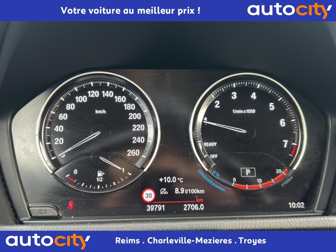 ABS avec aide au freinage d'urgenceAccoudoir central avantAirbag passager avant déconnectableAirbags conducteur et passager avantAirbags de tête ajustable avant et arrièreAirbags latéraux conducteur et passager avantAntenne de toit « aileron de requin »Appel d'Urgence Intelligent (durée de vie de la voiture)Appui lombaire ajustableAttention Assist : système de détection de somnolenceAutoradio BMW Professional, 8 touches de favoris programmables, "Controller" iDrive avec touches de raccourci, 6 haut-parleurs, Ecran 6,5", Bluetooth avec streamingAvertisseur de risque de collisionBaguettes de seuils de portes avant avec l'inscription "BMW"Banquette arrière rabattable 40/20/40BMW AppsBMW ConnectedBoîte de vitesses automatique à double embrayage à 7 rapportsBouton de démarrage Start/Stop sans manipulation de la cléBuses de lave-glace chauffantesClés radiocommandées à mémorisation automatique des réglages "Personal Profile"Climatisation automatique bi-zoneColonne de direction réglable en hauteur/profondeurCommande électrique du hayonContrôle de la TransmissionContrôle Dynamique de la Stabilité DSC avec DTC (Dynamic Traction Control)Détecteur de pluie et allumage automatique des projecteursDéverrouillage électrique du hayon via la poignée ou la clé radiocommandéeDiffuseur aérodynamique avant "Air Curtain"Direction à assistance électrique servotronicEcrous antivolFeux arrière 3D à LEDFeux de stop dynamiques clignotants avec technologie LEDFixations Isofix aux places latérales arrièreFonction d'arrêt et de redémarrage automatique du moteurFonctions "Ma BMW à distance"Frein de parking électromécaniqueIndicateur de limitation de vitesseInserts décoratifs Dark Oxidsilber mat soulignés de noir brillantJantes en alliage léger 18’’ (46 cm) style 579 à rayons en Y, bicolores 7,5 J x 18 / pneus 225/50 R 18Kit EclairageKit rangementLève-vitres électriques avant et arrière, avec commande à impulsionLimiteur et régulateur de vitesse avec maintien de la vitesse en descenteLogo BMW sur le capot moteur, le hayon et les montants de custode (gauche et droite)Mesure individuelle de pression des pneumatiquesNavigation multimédia BusinessPark AssistPoignées de portes couleur carrosseriePortail BMW Online (3 ans)Prise 12VProjecteurs antibrouillard avant/arrièreProjecteurs avant LEDRappels de clignotants intégrés aux rétroviseurs extérieursRétroviseurs extérieurs à réglages électriques et dégivrants, avec miroir asphérique côté conducteurRétroviseurs extérieurs couleur carrosserieRétroviseurs extérieurs rabattables électriquementSécurité enfants sur les vitres ARSélecteur de mode de conduite - 3 modes : "ECO PRO", "Confort" et "Sport"Sellerie Tissu "Race"Services Après-Vente connectés BMW TeleServices (durée de vie de la voiture)Services ConnectedDrive (3ans)Seuil de chargement en acier inoxydableShadow Line M brillantSiège passager avant réglable en hauteurSièges Advanced pour conducteur et passager avantSortie d’échappement simple à gauche, ronde et chromée, Ø 90 mmSystème de récupération de l'énergie au freinageTapis de sol en veloursTechnologie BMW TwinPower Turbo avec injection directeTeinte de carrosserie "Schwarz" unieTouches multifonctions sur le volantTriangle de présignalisation avec kit de premiers secoursTuner DABVolant sport 3 branches gainé de cuir