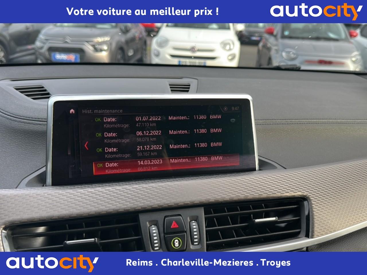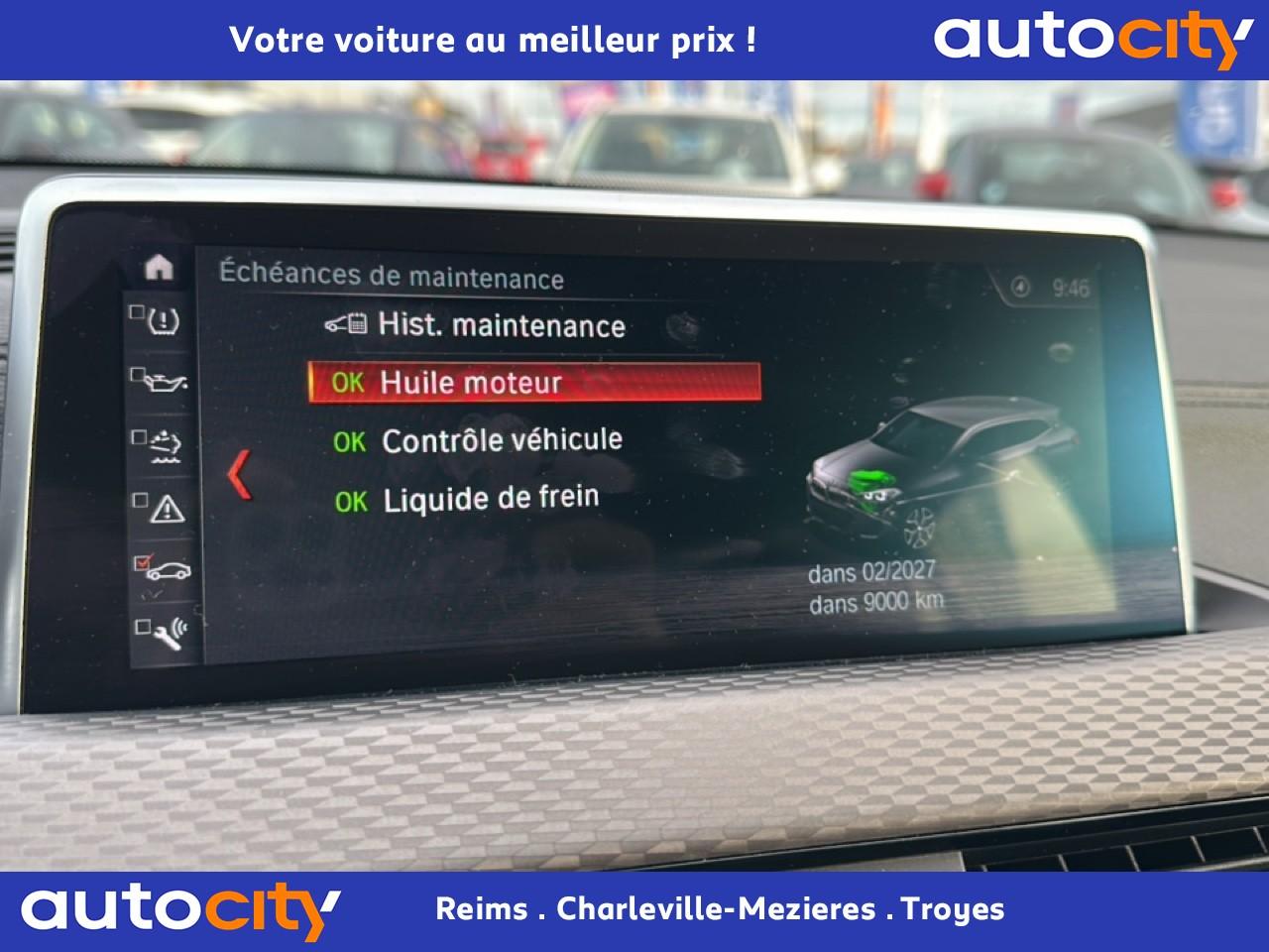 ABS avec aide au freinage d'urgenceAccoudoir central avantAirbag passager avant déconnectableAirbags conducteur et passager avantAirbags de tête avant/arrièreAirbags latéraux conducteur et passager avantAntenne de toit « aileron de requin »Appel d'Urgence Intelligent (durée de vie de la voiture)Autoradio BMW Professional, 8 touches de favoris programmables, "Controller" iDrive avec touches de raccourci, 6 haut-parleurs, Ecran 6,5", Bluetooth avec streamingAvertisseur de risque de collisionBadges latéraux MBaguettes de seuils de portes avant avec l'inscription "BMW"Banquette arrière rabattable 40/20/40BMW AppsBMW Connected+Boîte de vitesses automatique à 8 rapportsBouton de démarrage Start/Stop sans manipulation de la cléBuses de lave-glace chauffantesCiel de pavillon anthraciteClé avec logo M exclusifClés radiocommandées à mémorisation automatique des réglages "Personal Profile"Climatisation automatique bi-zoneColonne de direction réglable en hauteur/profondeurCommande électrique du hayonContrôle de la TransmissionContrôle Dynamique de la Stabilité DSC avec DTC (Dynamic Traction Control)Détecteur de pluie et allumage automatique des projecteursDétecteur préventif de somnolence Attention AssistDéverrouillage électrique du hayon via la poignée ou la clé radiocommandéeDiffuseur aérodynamique avant "Air Curtain"Direction à assistance électrique servotronicDirection M SportEcrous antivolFeux arrière 3D à LEDFeux de stop dynamiques clignotants avec technologie LEDFixations Isofix aux places latérales arrièreFonction d'arrêt et de redémarrage automatique du moteurFonctions "Ma BMW à distance"Frein de parking électromécaniqueIndicateur de limitation de vitesseInserts décoratifs en aluminium Hexagon "Anthrazit" soulignés de chrome perléJantes en alliage léger 19" style 722 M à rayons en Y avec pneumatiques RSC permettant le roulage à platKit EclairageKit rangementLève-vitres électriques avant et arrière, avec commande à impulsionLimiteur et régulateur de vitesse avec maintien de la vitesse en descenteLogo BMW sur le capot moteur, le hayon et les montants de custode (gauche et droite)Mesure individuelle de pression des pneumatiquesNavigation multimédia BusinessPack ConfortPack extérieur M Sport XPack SimpliCityPneumatiques RSC permettant le roulage à platPoignées de portes couleur carrosseriePortail BMW Online (3 ans)Prise 12VProjecteurs antibrouillard à LEDProjecteurs avant LEDRais de lumière à LED exclusifs intégrés dans les inserts décoratifs de porteRappels de clignotants intégrés aux rétroviseurs extérieursRétroviseur intérieur électrochromeRétroviseurs extérieurs à réglages électriques et dégivrants, avec miroir asphérique côté conducteurRétroviseurs extérieurs couleur carrosserieSécurité enfants sur les vitres ARSélecteur de mode de conduite - 3 modes : "ECO PRO", "Confort" et "Sport"Sellerie Tissu ‘Hexagon’ / Similicuir Sensatec Schwarz avec accentuation JauneServices Après-Vente connectés BMW TeleServices (durée de vie de la voiture)Services ConnectedDrive (3ans)Seuil de chargement en acier inoxydableSeuils de porte chromés M et repose-pied conducteur MShadow Line brillantSiège passager avant réglable en hauteurSièges Advanced pour conducteur et passager avantSortie d'échappement double (gauche et droite), chromée, 2 x 90 mmSuspension DirectDriveSystème de récupération de l'énergie au freinageTapis de sol en veloursTeinte de carrosserie "Alpinweiss" unieTouches multifonctions sur le volantTriangle de présignalisation avec kit de premiers secoursVolant M gainé cuir