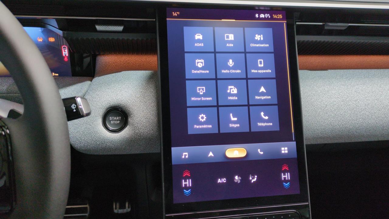 1 prise usb type-c rétroéclairées à l'av (charge)2 prises usb type-c rétroéclairées à l'ar console centrale (charge)3 prises 12v prises situées dans le rang 1 console centrale8 couleurs Éclairage d'ambiance étendu le long de la planche de bordAccès et démarrage mains libres proximity 2 télécommandes 3 boutons (verrouillageAccoudoir central av avec rangement fermé et réfrigéréAérateurs de climatisation centraux pour les passagers arAffichage tête haute etenduAide au stationnement arAide au stationnement av avec visiopark 360° comprend 4 caméras haute définition ainsi que 8 capteurs répartis autour du véhiculeAinsi que l'éclairage des miroirs de courtoisie.Airbags (frontauxAllumage adaptative des feux de croisementAmbiance hype grey : garnissage toile enduite premium avec perforations gris/tissu gris + appuie-tête avant à réglages intégrés + sellerie "sofa design" avec insert textile sofa gris sur la planche de bord et les panneaux de portes + sièges avant à réglage électrique (10 voies) + siège conducteur avApple carplay et android auto sans filBanquette ar avec dossier rabattable 40/20/40Banquette ar avec dossiers inclinables et accoudoir centralBluetooth (connexion simultanée 2 télephones)Boîte automatique 6 rapportsCalandre noir brillantClean cabin avec détecteur de qualité de l'air le système détecte les particules fines et active automatiquement le recyclage de l'air ambiant.Climatisation automatique bizone étendueCoffre et déverrouillage).Color clip gold satinCombiné numérique 10" personnalisableCoques de rétroviseurs extérieurs noir brillantDémarrage mains libresDes panneaux de porte av et sous l'écran cascadeDes tweetersDétection de sous-gonflageDirection assistéeEclairage d'ambiance étenduEclairage intérieur led comprend l'éclairage à led des plafonniers av et arEcran cascade avec navigation 3d connectée comprend le système de navigation tomtomEcran central vertical 13" tactileEquipements de sécurité abs avec répartiteur électronique de freinage (ref)Esp avec aide au démarrage en côteEssuie-vitres av automatique magic washFeux ar à led citroën light wingsFeux diurnes avec clignotants à ledFixations isofix et top tether sur les sièges latéraux arFrein de stationnement électriqueFreinage d'urgence automatique post-collision (afu)Garnissage toile enduite premium avec perforations gris/tissu grisHayon motorisé mains libresJantes alliage 19" zirconeKit de dépannage provisoire des pneumatiquesLa reconnaissance vocale. jusqu'à 8 profils.Latéraux av et rideaux)Lève-vitres électriques av/ar séquentiels anti-pincementOffrant une vision à 360° de l'environnement.Pack design - décors de pare-chocs av et ar noir brillant - lame av peinture satinéePack drive assist 2.0 - aide au positionnement dans la voie - alerte de trafic en marche ar (jusqu'à 40 mètres) - assistance semi-automatique au changement de voie - caméra d'alerte attention conducteur - préconisation anticipée des limitations de vitesse - système de surveillance d'angle mort longuPack hiver étendu : grip control + pare-brise chauffantPack safety - affichage de la limitation de vitesse - alerte active de franchissement involontaire de ligne - alerte attention conducteur - coffee break alert - reconnaissance étendue des panneaux de signalisation et recommandation de vitessePare-brise acoustiquePare-brise feuilletéPédalier et repose pieds aluminiumPlancher de coffre modulable à 2 positionsPoignées de maintien couleur chromePoignées de portes extérieures couleur caissePrédisposition attelageProjecteurs citroën matrix ledRang 2 ar console centrale et coffreRecharge sans fil pour smartphoneRétroviseur intérieur électrochrome framelessRétroviseurs extérieurs électriques dégivrantsRétroviseurs extérieurs rabattables électriquement avec éclairage d'accueil à ledSélecteur de mode de conduiteSellerie "sofa design" avec insert textile sofa gris sur la planche de bord et les panneaux de portes Sièges avant à réglage électrique (10 voies)Sièges avant et arrière chauffantsSuspension citroën advanced comfortSystème audio 6 hp (dab+)Teinte de caisse métallisée blanc okéniteVitres arVitres de custode et lunette ar surteintéesVolant chauffantVolant gainé multifonctions avec décor noir brillant