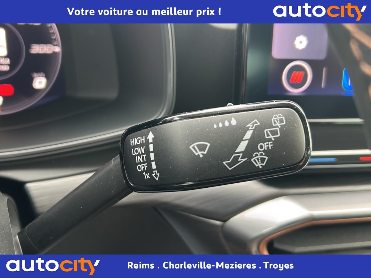2 prises USB-C éclairées à l'AV et 2 à l'ARAccès et démarrage mains-libresAccoudoir centralAide au stationnement arrièreAirbags frontaux , latéraux et rideauxAppel d'urgence - EcallBandeau arrière "Infinite Light" à LED avec clignotants à défilement et cérémonie de bienvenueCâble de recharge pour prise domestiqueCaméra de reculCiel de pavillon noirClimatisation automatique Climatronic tri-zoneConnectivity Box avec chargeur à inductionContre-portes en similicuir noir surpiquéCouleur contrastante Dark Alu (soubassements, élargisseurs d'ailes et coques de rétroviseurs)CUPRA BoxCupra connect Media & InternetDétecteur de pluie et allumage automatique des projecteursDigital Cockpit : combiné d’instruments digital haute résolution couleur de 10,25"Direction dynamiqueDossier AR rabattable 2/3 - 1/3Double-sortie d'échappement noire rectangulaireEclairage de bienvenue avec projection du logo CUPRA au solFeux de route intelligentsFixations Isofix et Toptether aux sièges arrièreFull Link avec CarPlay sans filJantes alliage 18'' « Performance »Lampes de lecture à l'avant et à l'arrièreMiroirs de courtoisie éclairés conducteur et passagerPack extérieur Cupra avec entourages de vitres Noir PianoPack intérieur Copper avec inserts Dark AluPeinture Blanc CandyProjecteurs antibrouillard avec Cornering Light et Coming HomeProjecteurs Full LEDRadio Numérique DABRails de toit Noir PianoRéglage en hauteur et lombaire des sièges avantRégulateur de vitesse adaptatif et prédictif 'ACC' jusqu’à l’arrêt completRétroviseur intérieur électrochromeSeuils de porte CUPRA rétro-éclairésSièges Sport en textile noirSign Assist (reconnaissance des panneaux de signalisation)Système audio 7 HP avec contrôle vocal "Hola Hola"Système de navigation 3D sur écran tactile HD 10"Tapis de sol spécifiques CUPRAVitres arrière surteintéesVolant sport multifonction chauffant en cuir avec palettes