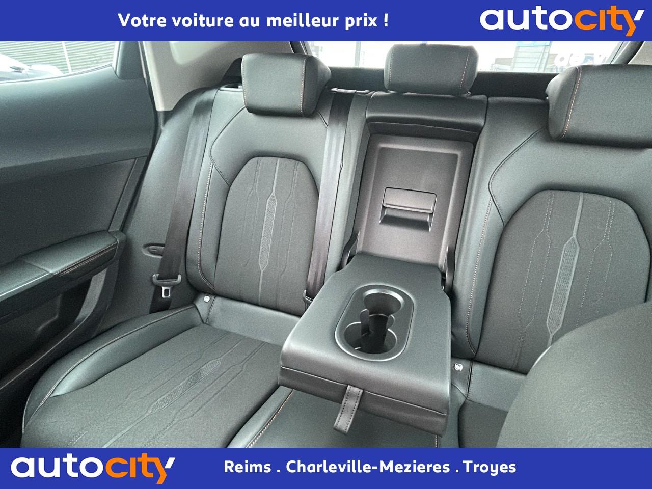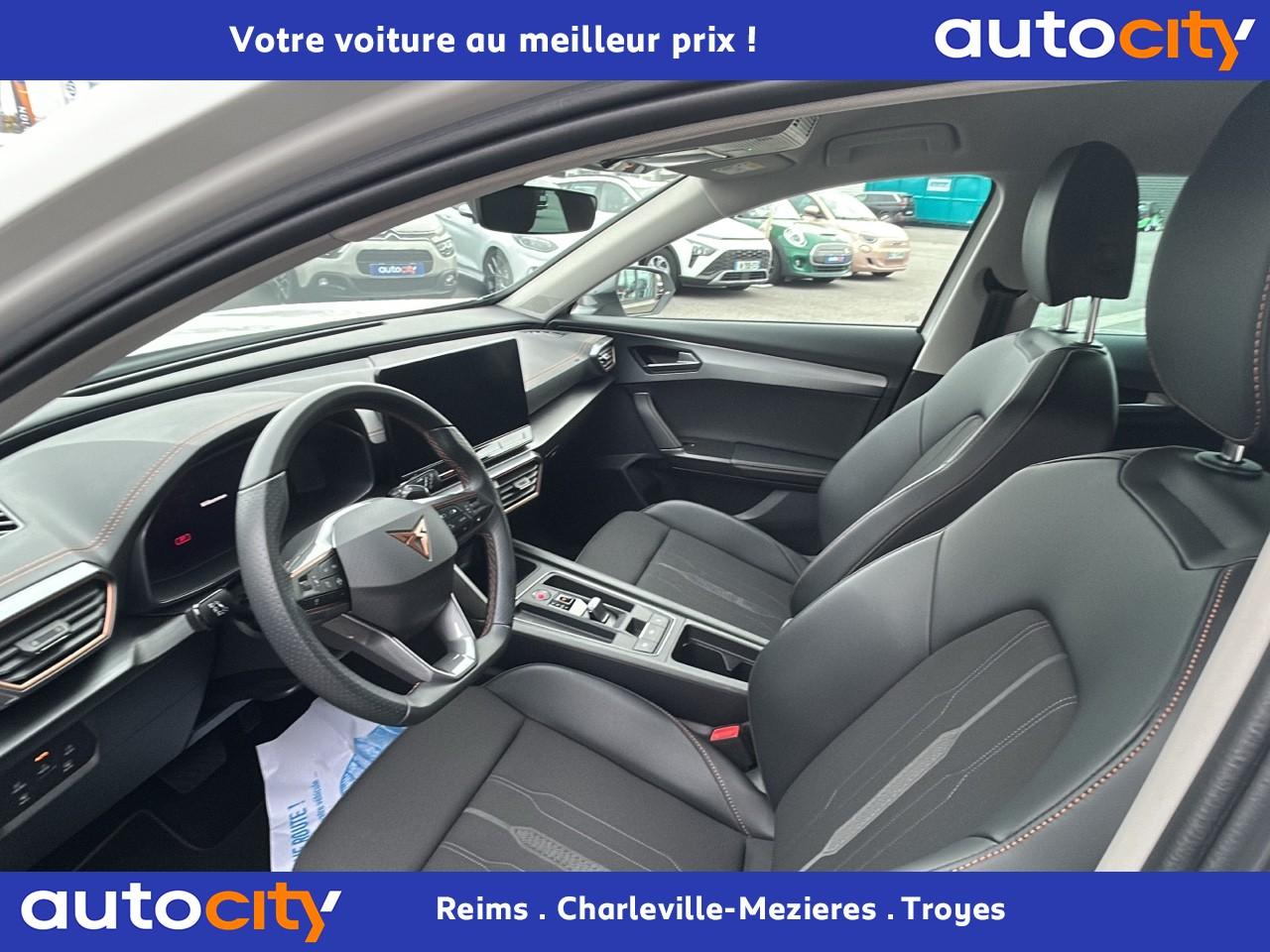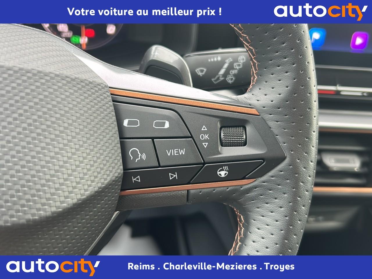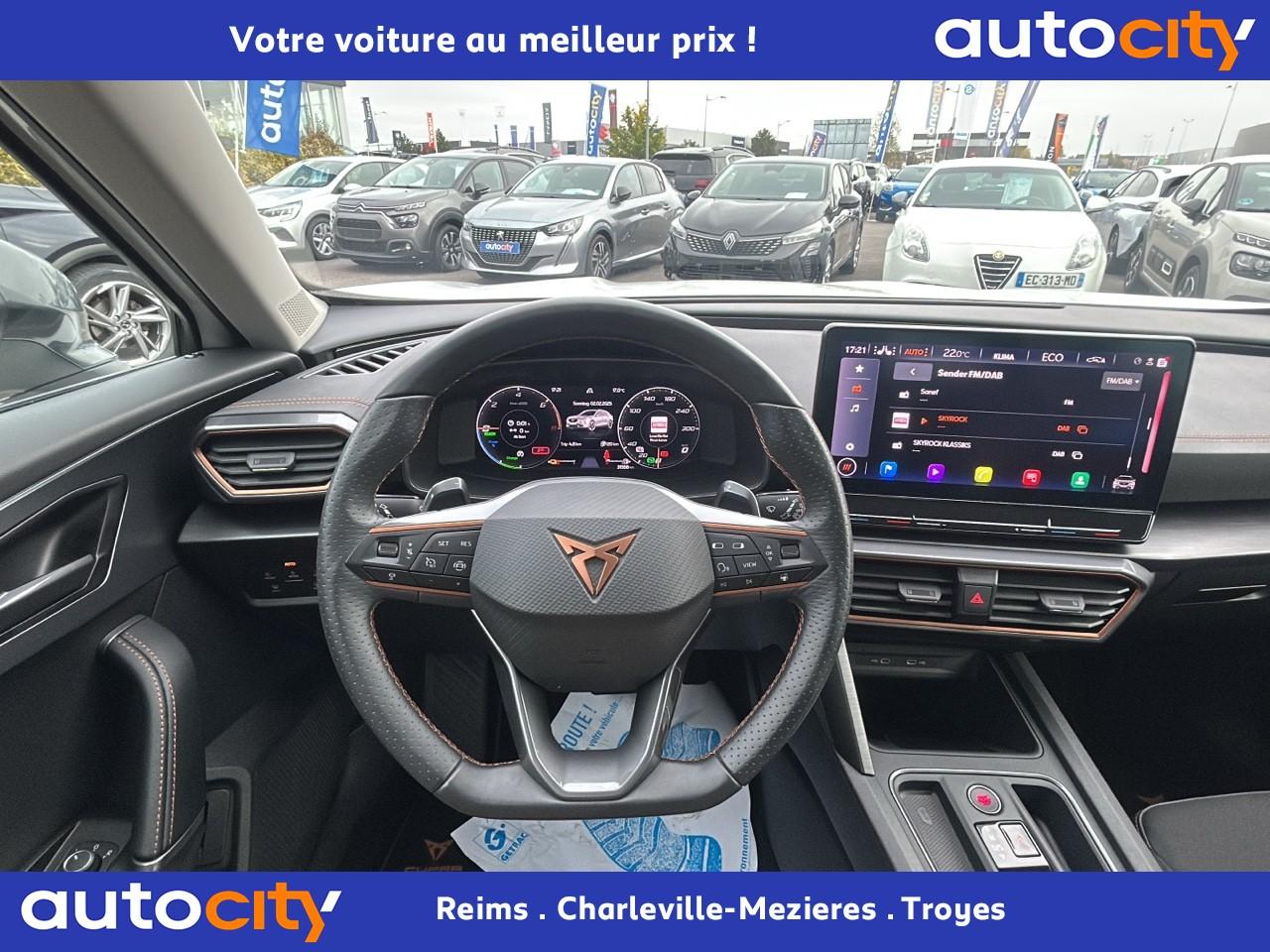 2 prises USB-C éclairées à l'AV et 2 à l'ARAccès et démarrage mains-libresAccoudoir centralAide au stationnement arrièreAirbags frontaux , latéraux et rideauxAppel d'urgence - EcallBandeau arrière "Infinite Light" à LED avec clignotants à défilement et cérémonie de bienvenueCâble de recharge pour prise domestiqueCaméra de reculCiel de pavillon noirClimatisation automatique Climatronic tri-zoneConnectivity Box avec chargeur à inductionContre-portes en similicuir noir surpiquéCouleur contrastante Dark Alu (soubassements, élargisseurs d'ailes et coques de rétroviseurs)CUPRA BoxCupra connect Media & InternetDétecteur de pluie et allumage automatique des projecteursDigital Cockpit : combiné d’instruments digital haute résolution couleur de 10,25"Direction dynamiqueDossier AR rabattable 2/3 - 1/3Double-sortie d'échappement noire rectangulaireEclairage de bienvenue avec projection du logo CUPRA au solFeux de route intelligentsFixations Isofix et Toptether aux sièges arrièreFull Link avec CarPlay sans filJantes alliage 18'' « Performance »Lampes de lecture à l'avant et à l'arrièreMiroirs de courtoisie éclairés conducteur et passagerPack extérieur Cupra avec entourages de vitres Noir PianoPack intérieur Copper avec inserts Dark AluPeinture Blanc CandyProjecteurs antibrouillard avec Cornering Light et Coming HomeProjecteurs Full LEDRadio Numérique DABRails de toit Noir PianoRéglage en hauteur et lombaire des sièges avantRégulateur de vitesse adaptatif et prédictif 'ACC' jusqu’à l’arrêt completRétroviseur intérieur électrochromeSeuils de porte CUPRA rétro-éclairésSièges Sport en textile noirSign Assist (reconnaissance des panneaux de signalisation)Système audio 7 HP avec contrôle vocal "Hola Hola"Système de navigation 3D sur écran tactile HD 10"Tapis de sol spécifiques CUPRAVitres arrière surteintéesVolant sport multifonction chauffant en cuir avec palettes