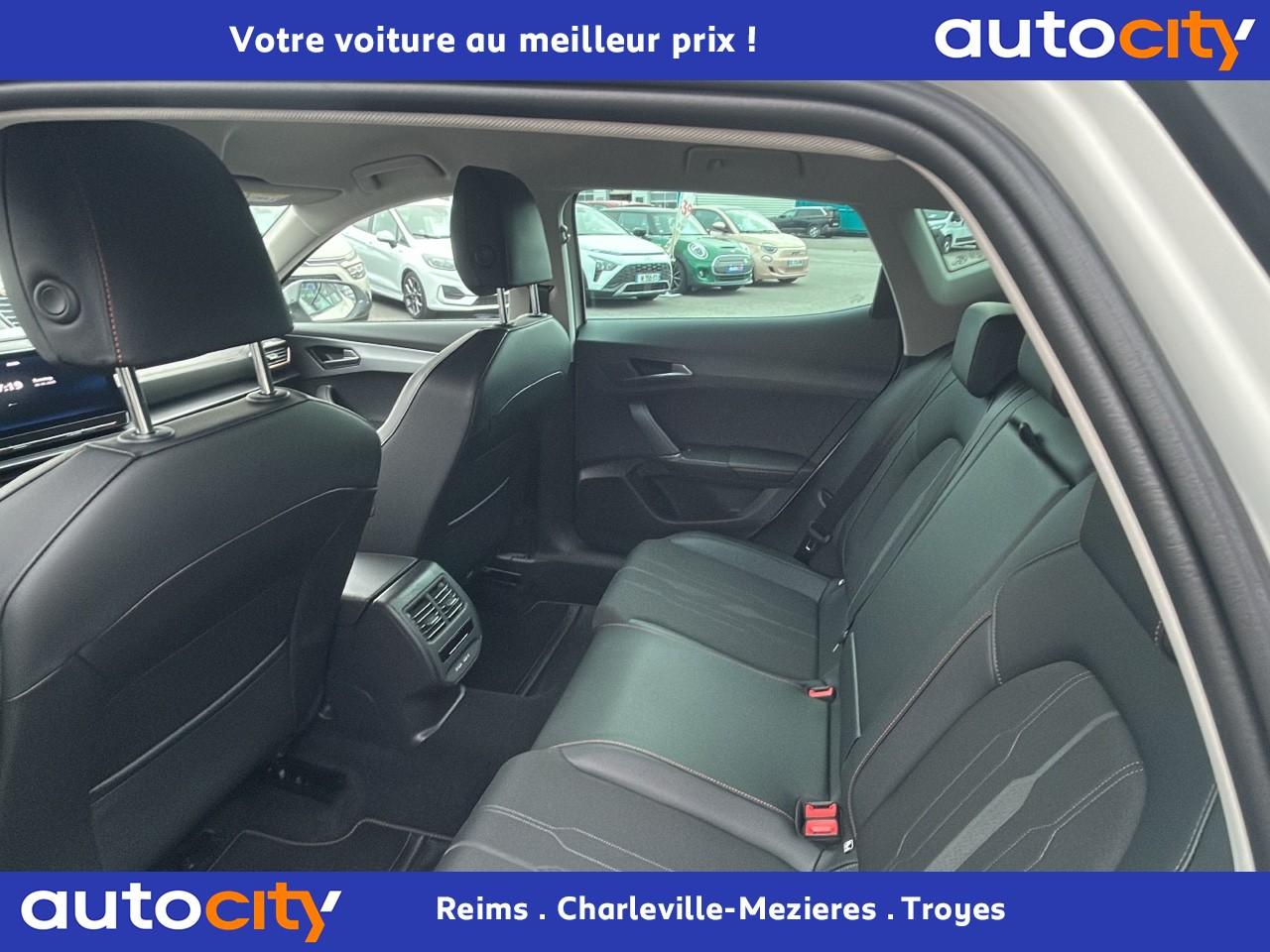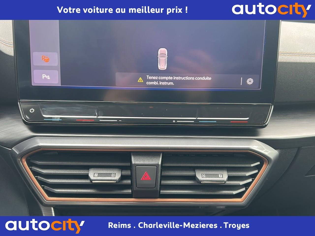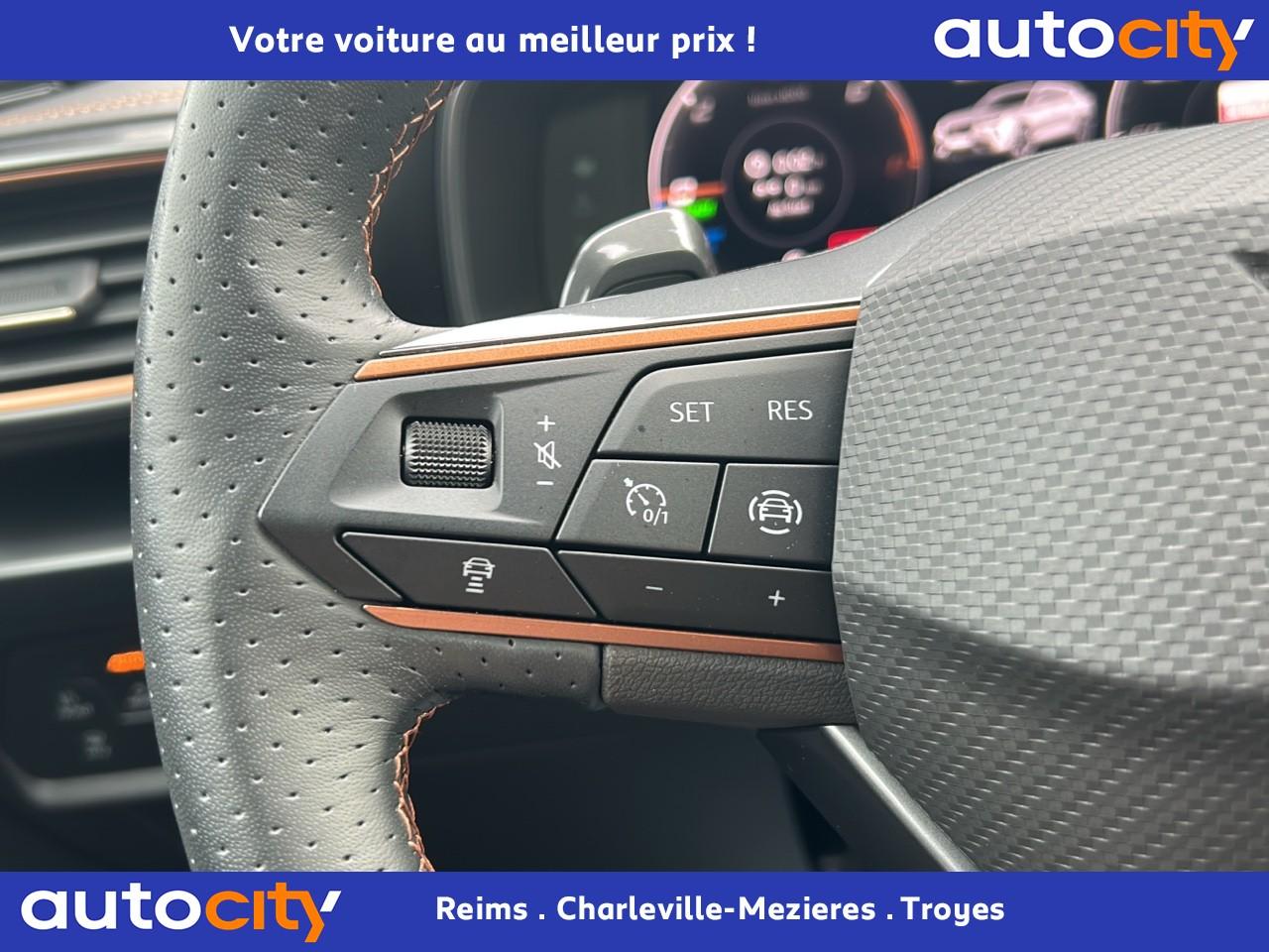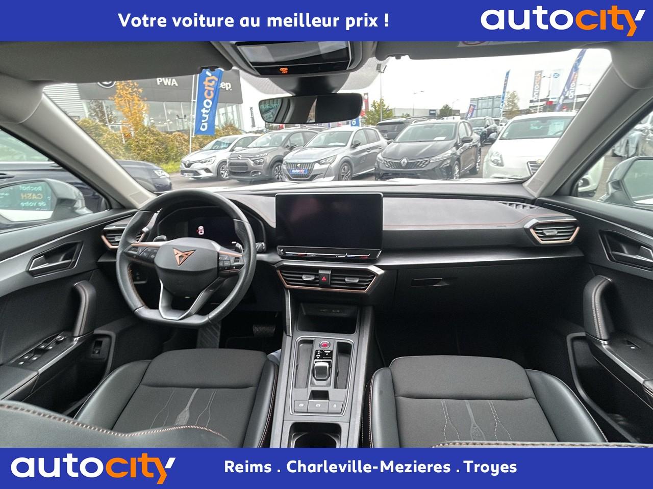 2 prises USB-C éclairées à l'AV et 2 à l'ARAccès et démarrage mains-libresAccoudoir centralAide au stationnement arrièreAirbags frontaux , latéraux et rideauxAppel d'urgence - EcallBandeau arrière "Infinite Light" à LED avec clignotants à défilement et cérémonie de bienvenueCâble de recharge pour prise domestiqueCaméra de reculCiel de pavillon noirClimatisation automatique Climatronic tri-zoneConnectivity Box avec chargeur à inductionContre-portes en similicuir noir surpiquéCouleur contrastante Dark Alu (soubassements, élargisseurs d'ailes et coques de rétroviseurs)CUPRA BoxCupra connect Media & InternetDétecteur de pluie et allumage automatique des projecteursDigital Cockpit : combiné d’instruments digital haute résolution couleur de 10,25"Direction dynamiqueDossier AR rabattable 2/3 - 1/3Double-sortie d'échappement noire rectangulaireEclairage de bienvenue avec projection du logo CUPRA au solFeux de route intelligentsFixations Isofix et Toptether aux sièges arrièreFull Link avec CarPlay sans filJantes alliage 18'' « Performance »Lampes de lecture à l'avant et à l'arrièreMiroirs de courtoisie éclairés conducteur et passagerPack extérieur Cupra avec entourages de vitres Noir PianoPack intérieur Copper avec inserts Dark AluPeinture Blanc CandyProjecteurs antibrouillard avec Cornering Light et Coming HomeProjecteurs Full LEDRadio Numérique DABRails de toit Noir PianoRéglage en hauteur et lombaire des sièges avantRégulateur de vitesse adaptatif et prédictif 'ACC' jusqu’à l’arrêt completRétroviseur intérieur électrochromeSeuils de porte CUPRA rétro-éclairésSièges Sport en textile noirSign Assist (reconnaissance des panneaux de signalisation)Système audio 7 HP avec contrôle vocal "Hola Hola"Système de navigation 3D sur écran tactile HD 10"Tapis de sol spécifiques CUPRAVitres arrière surteintéesVolant sport multifonction chauffant en cuir avec palettes