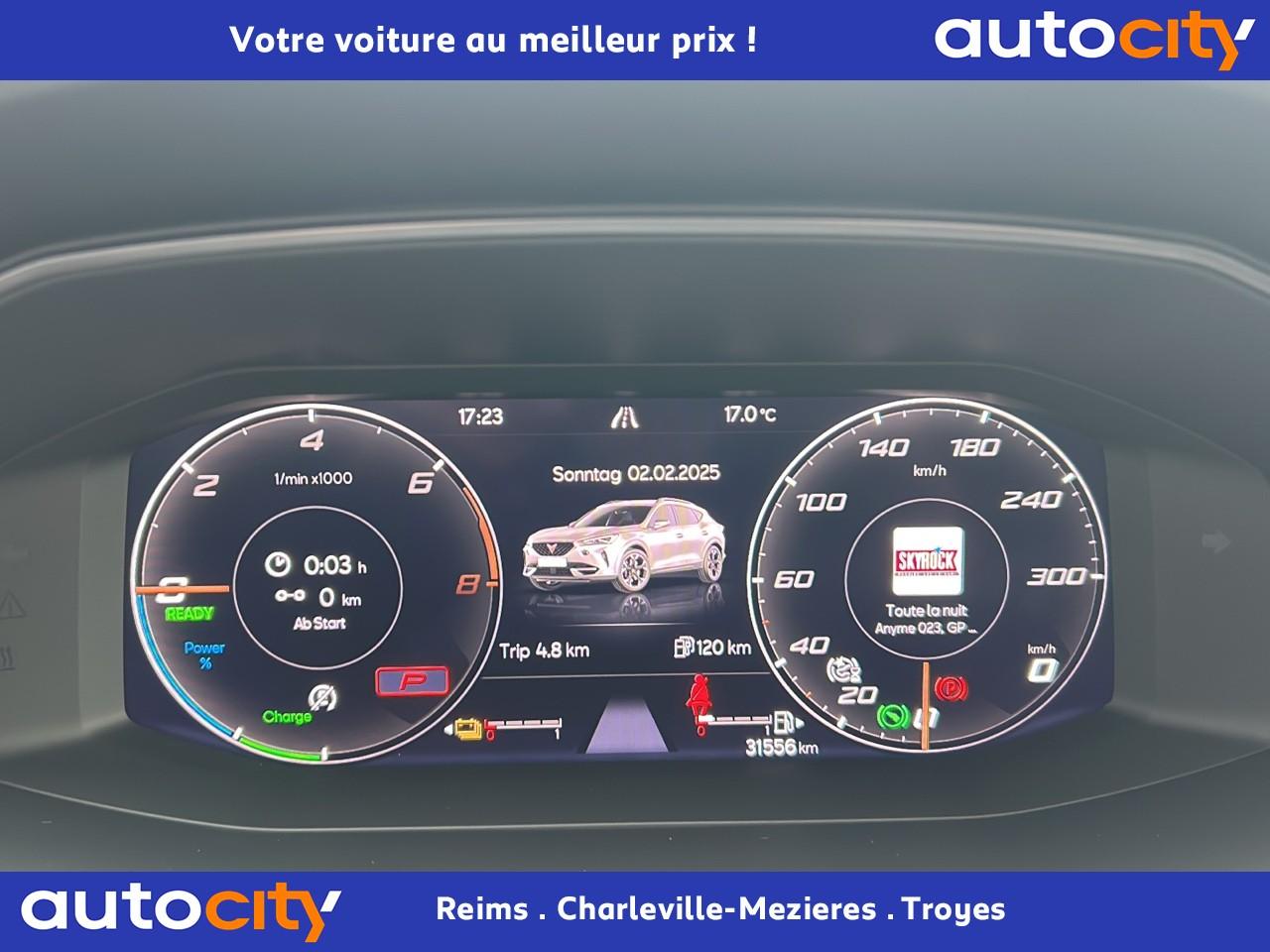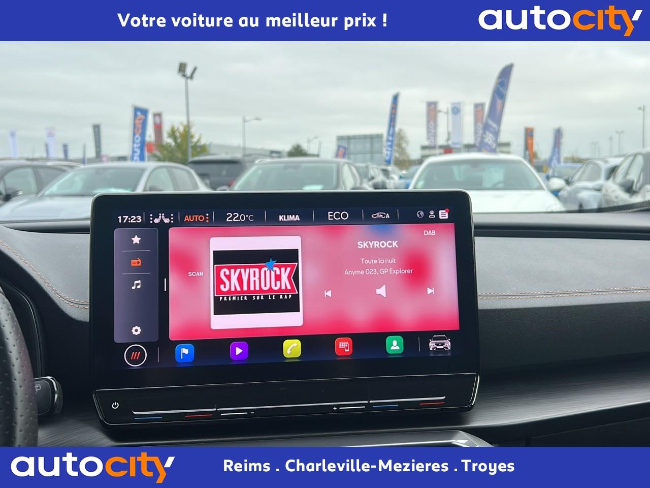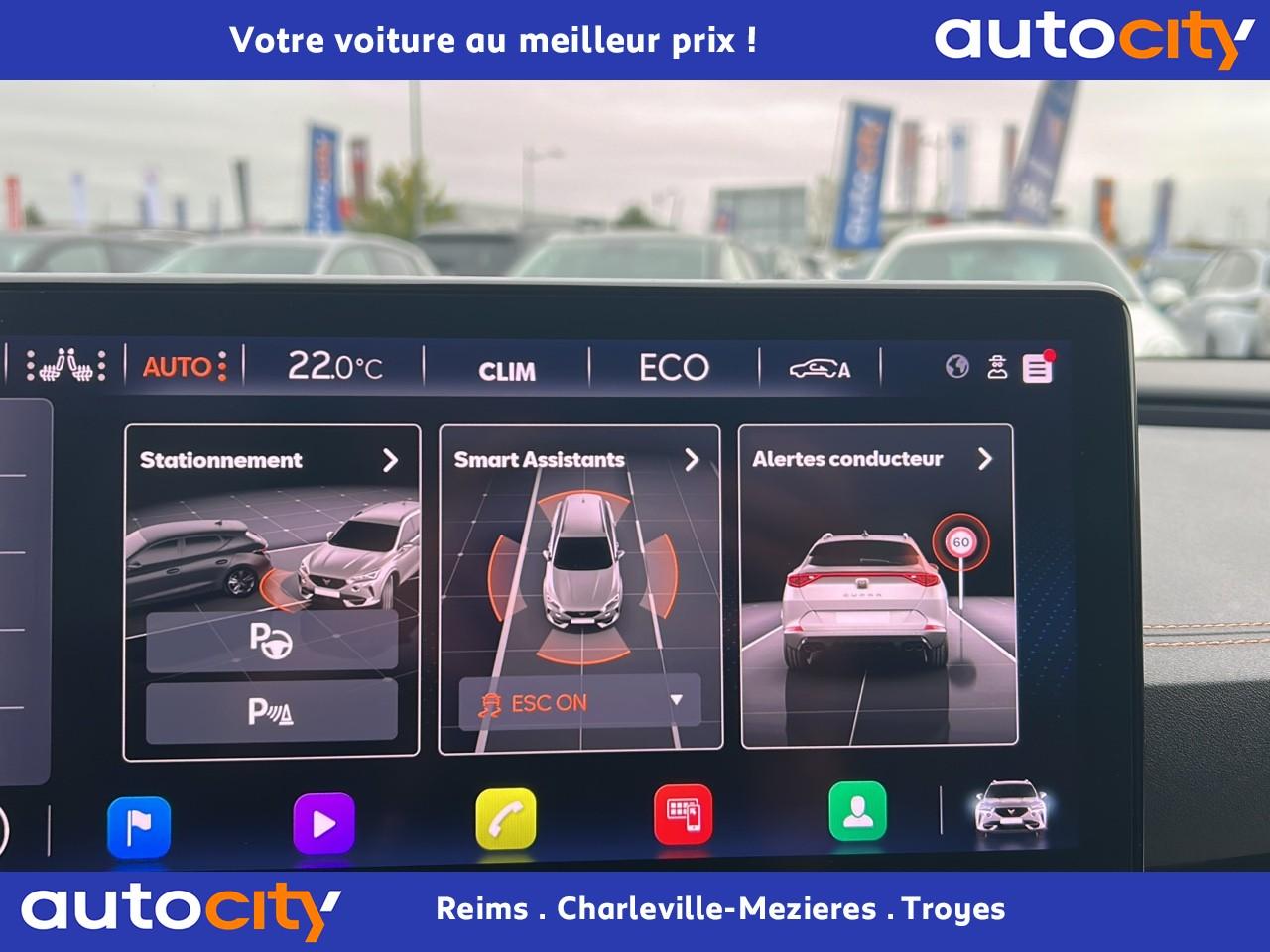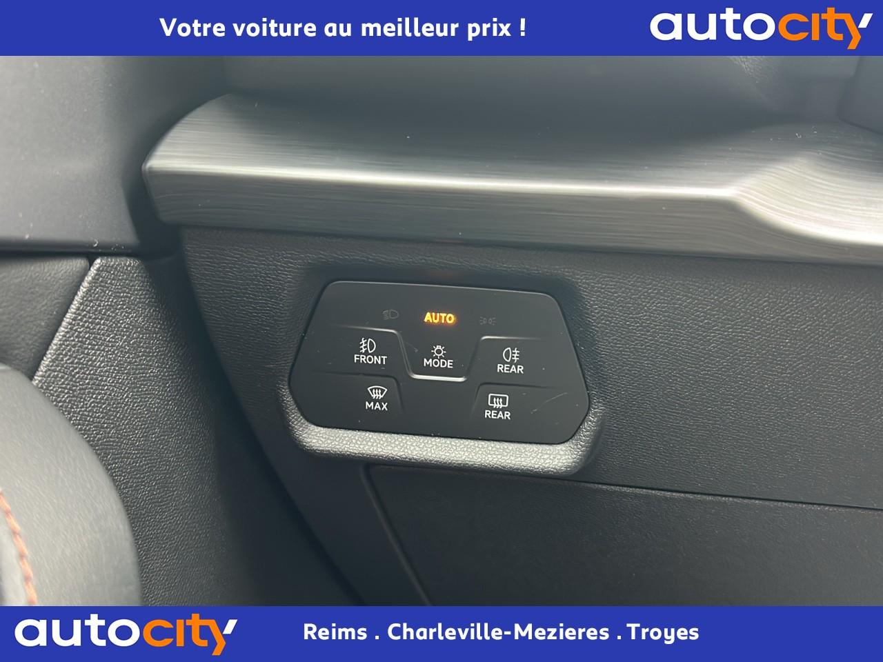 2 prises USB-C éclairées à l'AV et 2 à l'ARAccès et démarrage mains-libresAccoudoir centralAide au stationnement arrièreAirbags frontaux , latéraux et rideauxAppel d'urgence - EcallBandeau arrière "Infinite Light" à LED avec clignotants à défilement et cérémonie de bienvenueCâble de recharge pour prise domestiqueCaméra de reculCiel de pavillon noirClimatisation automatique Climatronic tri-zoneConnectivity Box avec chargeur à inductionContre-portes en similicuir noir surpiquéCouleur contrastante Dark Alu (soubassements, élargisseurs d'ailes et coques de rétroviseurs)CUPRA BoxCupra connect Media & InternetDétecteur de pluie et allumage automatique des projecteursDigital Cockpit : combiné d’instruments digital haute résolution couleur de 10,25"Direction dynamiqueDossier AR rabattable 2/3 - 1/3Double-sortie d'échappement noire rectangulaireEclairage de bienvenue avec projection du logo CUPRA au solFeux de route intelligentsFixations Isofix et Toptether aux sièges arrièreFull Link avec CarPlay sans filJantes alliage 18'' « Performance »Lampes de lecture à l'avant et à l'arrièreMiroirs de courtoisie éclairés conducteur et passagerPack extérieur Cupra avec entourages de vitres Noir PianoPack intérieur Copper avec inserts Dark AluPeinture Blanc CandyProjecteurs antibrouillard avec Cornering Light et Coming HomeProjecteurs Full LEDRadio Numérique DABRails de toit Noir PianoRéglage en hauteur et lombaire des sièges avantRégulateur de vitesse adaptatif et prédictif 'ACC' jusqu’à l’arrêt completRétroviseur intérieur électrochromeSeuils de porte CUPRA rétro-éclairésSièges Sport en textile noirSign Assist (reconnaissance des panneaux de signalisation)Système audio 7 HP avec contrôle vocal "Hola Hola"Système de navigation 3D sur écran tactile HD 10"Tapis de sol spécifiques CUPRAVitres arrière surteintéesVolant sport multifonction chauffant en cuir avec palettes