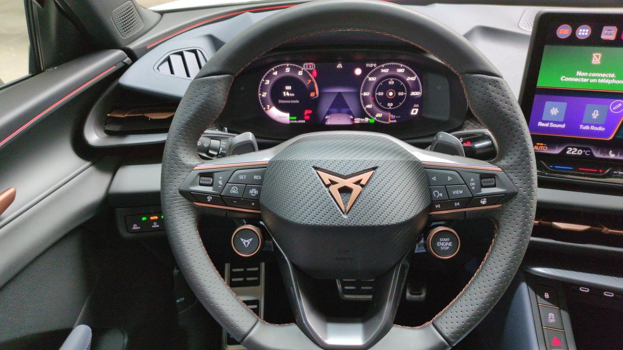 25" simple9" et touches de commandes tactiles rétro- éclairéesAbsAccès et démarrage mains-libresAccoudoir central avAide au maintien dans la voie (lane assist)Aide au stationnement av/arAirbags latérauxAlarme antivolAvec palettes de changement de rapportAvec signature lumineuse tri-led et cérémonie de bienvenueBandeau ar ''infinite light'' intégrant le logo cupra lumineuxBanquette ar coulissante 2/3 - 1/3Boîte de vitesse automate sequentiel à 7 vitessesCaméra de reculCapteur de pluie et de luminositéChauffantCiel de pavillon noirClimatisation automatique tri-zone "climatronic"Connectivité 4x usb-c et bluetoothConnectivity box avec chargeur à inductionContrôle de la traction (tcs)Design intérieur deep ocean (sièges baquets tep + textile bleu acier) - logos cupra estampés sur les appuie-têtes - planche de bord bleu acier texturée avec aérateurs cuivrés - contre-portes en tep noir texturé - ciel de pavillon noir - sièges conducteur et passager avec réglage manuel en hauteur etDétection de fatigue et somnolenceDigital cockpit 10Direction dynamiqueDossiers ar rabattables 2/3 - 1/3Eclairage de bienvenue avec projection du logo cupra au solEscFixations isofix avec top-tether à l'arFront assist avec détection des piétons et cyclistesFull link sans fil ( android auto + apple carplay)Garantie 1 an supplémentaire (2+1) ou 90 000 kmHayon électrique mains-libres ''virtual pedal''Jantes alliage 19" spectrum usinéesPeinture métallisée blanc nevadaPré-installation pour attelageProjecteurs anti-brouillard triangulaires avec éclairage d'intersection et éclairage d'accompagnementProjecteurs full led avec signature lumineusetri-ledRadio numérique dabRails de toit noirReconnaissance des panneaux de signalisation (sign assist)Régulateur de vitesse adaptatif accRétroviseur intérieur électrochromeRideaux et centralSeuils de porte cupra rétro-éclairésSièges av chauffantsSystème audio à 9 hp avec contrôle vocalSystème d'info-divertissement avec écran tactile hd 12Système de contrôle de la pression des pneusVitres ar surteintéesVitres électriques avVolant supersports cupra en cuir avec boutons satellites