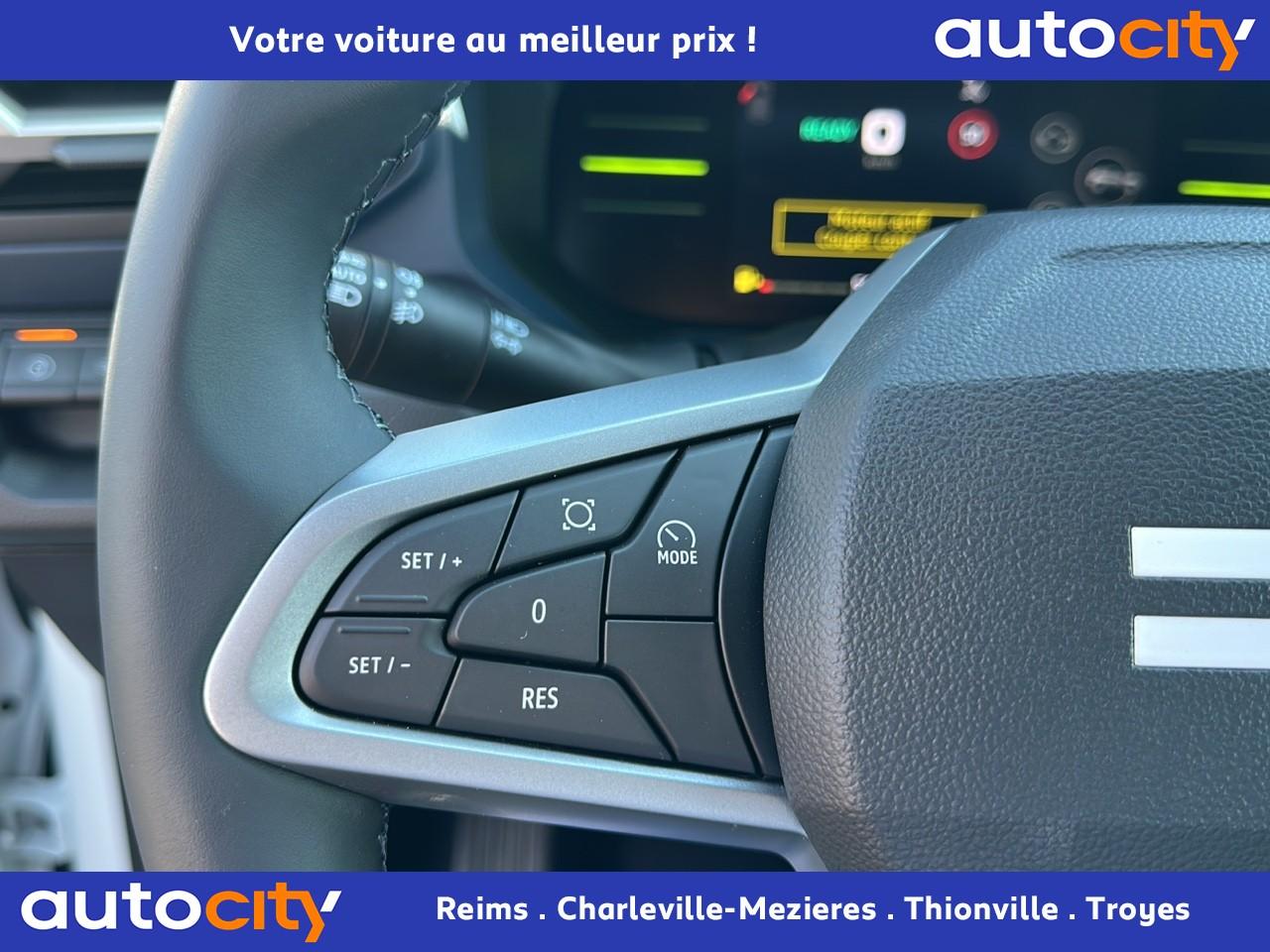 2 prises USB (type C) à l'arrière de la console centrale2 spots de lecture à l'avant3e ceinture arrière 3 points (enrouleur)6 points de fixation YouClipABS (Antiblocage de roues)Aérateurs noirsAide au démarrage en côte (HSA)Aide au maintien dans la file (LKA)Airbag frontal conducteurAirbags latéraux et rideauxAlerte attention conducteurAlerte de survitesse avec reconnaissance des panneaux de signalisationAlerte visuelle et sonore du non-bouclage ceinture avantAllumage automatique des projecteursAssistance au freinage d'urgenceAvertisseur de changement de file (LDWS)Banquette arrière rabattable et fractionnable 1/3-2/3Barres de toit longitudinales fixesBarres de toit longitudinales noiresBoucliers ton caisseBouton "My Safety "Bouton éco-modeCache-bagagesCaméra de reculCarte mains-libresCeintures de sécurité avant et arrière latérales avec enrouleurs pyrotechniquesChargeur à inductionClé pliableClignotants intégrés aux rétroviseurs extérieursClimatisation automatiqueCommandes au volantCondamnation centralisée des portes à distanceConsole centrale semi-haute avec accoudoir et rangementContours des aérateurs Gris AcierDétecteur de sous-pression des pneus (DDS)Direction assistée électrique à assistance variableEclairage coffreEnregistreur de données d’événements (accident)Essuie-glace à déclenchement automatiqueFeux de croisement avant Eco-LEDFixation Isofix aux places arrière extérieuresFOTA (Firmware Over-The-Air)Frein de stationnement électriqueIndicateur de changement de vitessesJantes alliage 18” TagasanJoncs de calandre BlancKit de gonflageLève vitres électriques avant et arrière impulsionnelsLunette arrière dégivrante / Essuie-vitre arrière temporiséMedia Nav LiveOrdinateur de bord 13 fonctions (écran TFT)Peinture Blanc GlacierPoignées de portes extérieures ton caissePoignées de portes intérieures Gris AcierPoignées de tirage portes avant Denim BleuPrédisposition EthylotestPrédisposition véhicule pour assurance auto connectée « Pay as you drive » et / ou « Pay how you drive » sans besoin de boîtier additionnelPrise 12V avant et arrièreProjecteurs antibrouillardQR Code « Rescue Code » avant / arrièreRadars de reculRégulateur et limiteur de vitesseRétroviseurs extérieurs électriques et dégivrantsRétroviseurs extérieurs Gris MégalitheRétroviseurs rabattables automatiquementSellerie spécifique Denim avec logo Dacia réfléchissantSiège conducteur réglable en hauteurSignature lumineuse à LEDSkis avant / arrière Gris MégalitheSpot de lecture passagers arrièreStop & StartSystème antipatinage (ASR)Système d'appel d'urgenceSystème de commutation automatique feux de route/feux de croisementSystème de contrôle de trajectoire (ESC)Système de désactivation de l'airbag passagerSystème de sécurité précollision avec détection des véhicules, piétons, des cyclistes et motocyclistesSystème de signalisation de freinage d'urgence (EBSS)Tableau de bord digital 7” configurableVitres surteintéesVolant réglable en hauteur et en profondeurVolant soft feelYouClip (support smartphone)