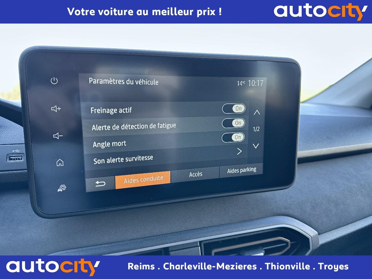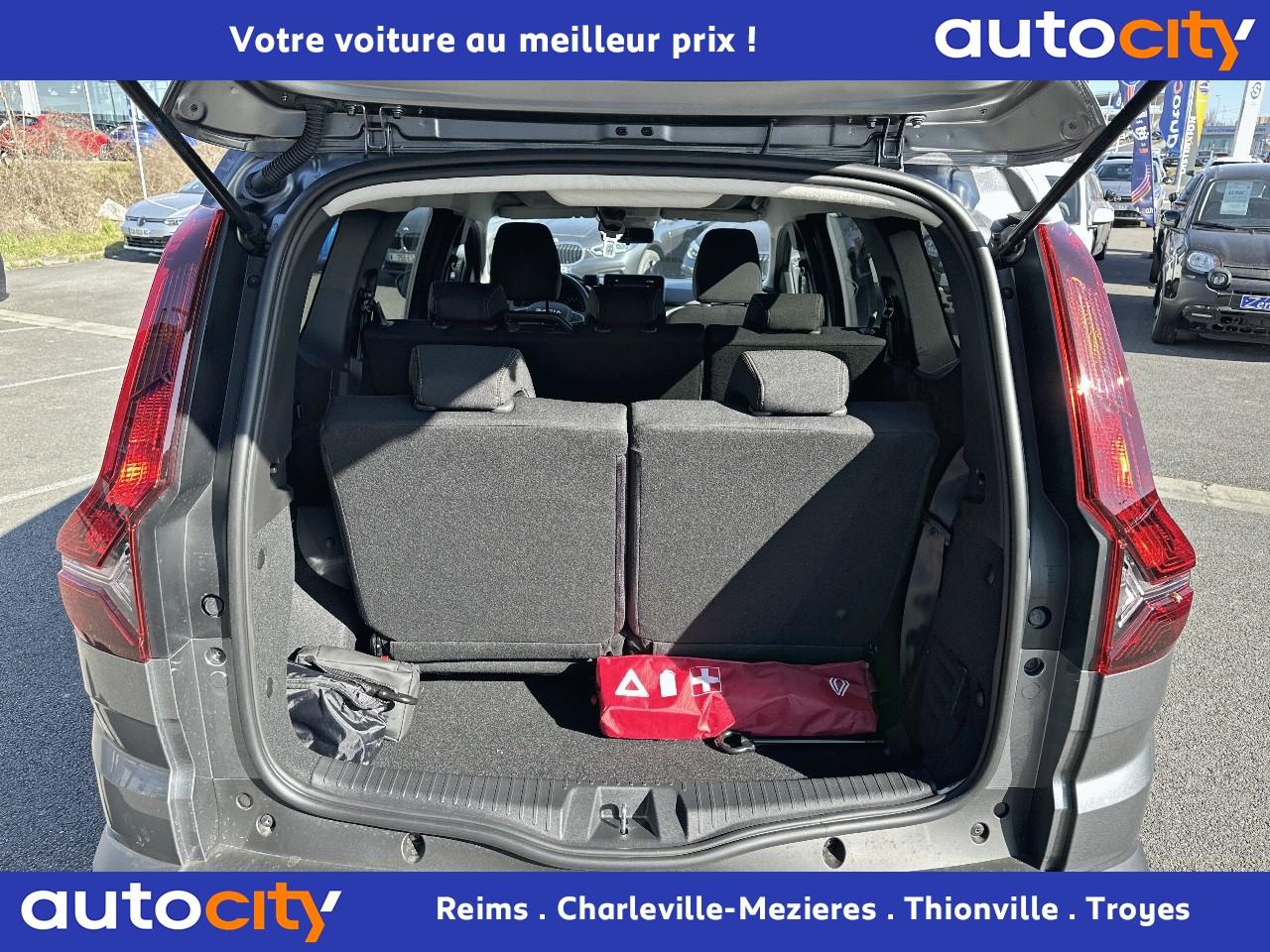 2 sièges rang 3 rabattables et amovibles de manière indépendanteAccoudoir sur siège conducteurAide au maintien dans la voieAide au stationnement arrièreAirbag frontal conducteurAirbag frontal passager déconnectableAirbags latéraux thorax conducteur et passager + Airbags rideaux de tête avant et arrièreAlerte de survitesse avec reconnaissance des panneaux de signalisationAllumage automatique des essuie-glacesAllumage/extinction automatique des feuxAntenne de type requin couleur noir brillantAppel d'urgence - EcallBanquette arrière rabattable 1/3 - 2/3 (assise et dossier)Barres de toit longitudinales modulairesBoucliers avant et arrière ton carrosserieBouton "My Safety "Cache-bagagesCalandre noire logo Dacia BlancCaméra de reculCarte mains-libresCeintures de sécurité AV et latérales AR à prétensionneurs et limiteurs d'effortCentre des aérateurs Brun CuivréClimatisation automatiqueCondamnation des portes électriques, condamnation automatique en roulant incluseContour des aérateurs Fog GreyContrôle de pression des pneus ( TPMS )Contrôle dynamique de trajectoire (ESP) avec aide au démarrage en côteDesign outdoor spécifique avec strippings latérauxDirection assistée électriqueEco modeEnjoliveur Brun Cuivré sur les panneaux des portes avantEnregistreur de données d’événements (accident)Extended GripFeux de jour automatiques à LEDFreinage actif d’urgence (AEBS Interurbain)Jantes en aluminium 16” Mahalia noires avec logo Dacia Brun CuivréKit de gonflageLettrage Dacia arrière Brun CuivréLève-vitre impulsionnel conducteur (avec fonction antipincement)Lève-vitres arrière électriquesLève-vitres avant électriques conducteur et passagerLimiteur de vitesseMedia DisplayOrdinateur de bord : distance parcourue, vitesse moyenne, autonomie, consommation moyennePeinture Blanc GlacierPoignées de portes couleur carrosseriePoignées de portes intérieures Gris AcierPrédisposition EthylotestProjecteurs antibrouillardQR Code « Rescue Code » avant / arrièreRégulateur de vitesseRétroviseurs extérieurs à réglage électriqueRétroviseurs extérieurs Brun CuivréRevêtement en TEP Micro Cloud sur la planche de bord et les accoudoirs des portes avantSellerie Mixte TEP Micro Cloud avec surpiqûres Brun Cuivré et embossage avec l'emblème DaciaSiège conducteur réglable en hauteurSignature lumineuse à LEDSkis avant / arrière Gris MégalitheSticker type snorkelStop & StartSupport smartphone amovibleSurtapis caoutchouc marquage Dacia et seuil de porte avantSystème antiblocage des roues (ABS) & Assistance au freinage d'urgence (AFU)Système d'alerte de changement de voieSystème de fixation Isofix pour siège enfant aux places latérales du rang 2Système de surveillance de la vigilance du conducteurTablettes aviation au dos des sièges de la 1ère rangéeVitres de custode entrebaîllantesVolant réglable en hauteur et en profondeurVolant soft feel et pièce déco gris acier