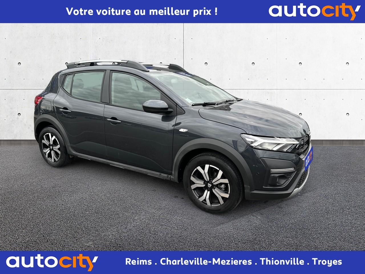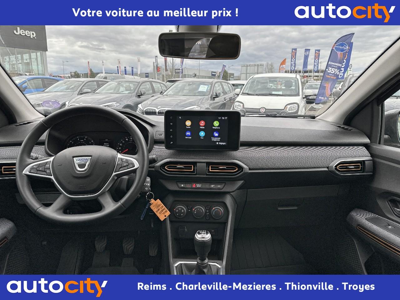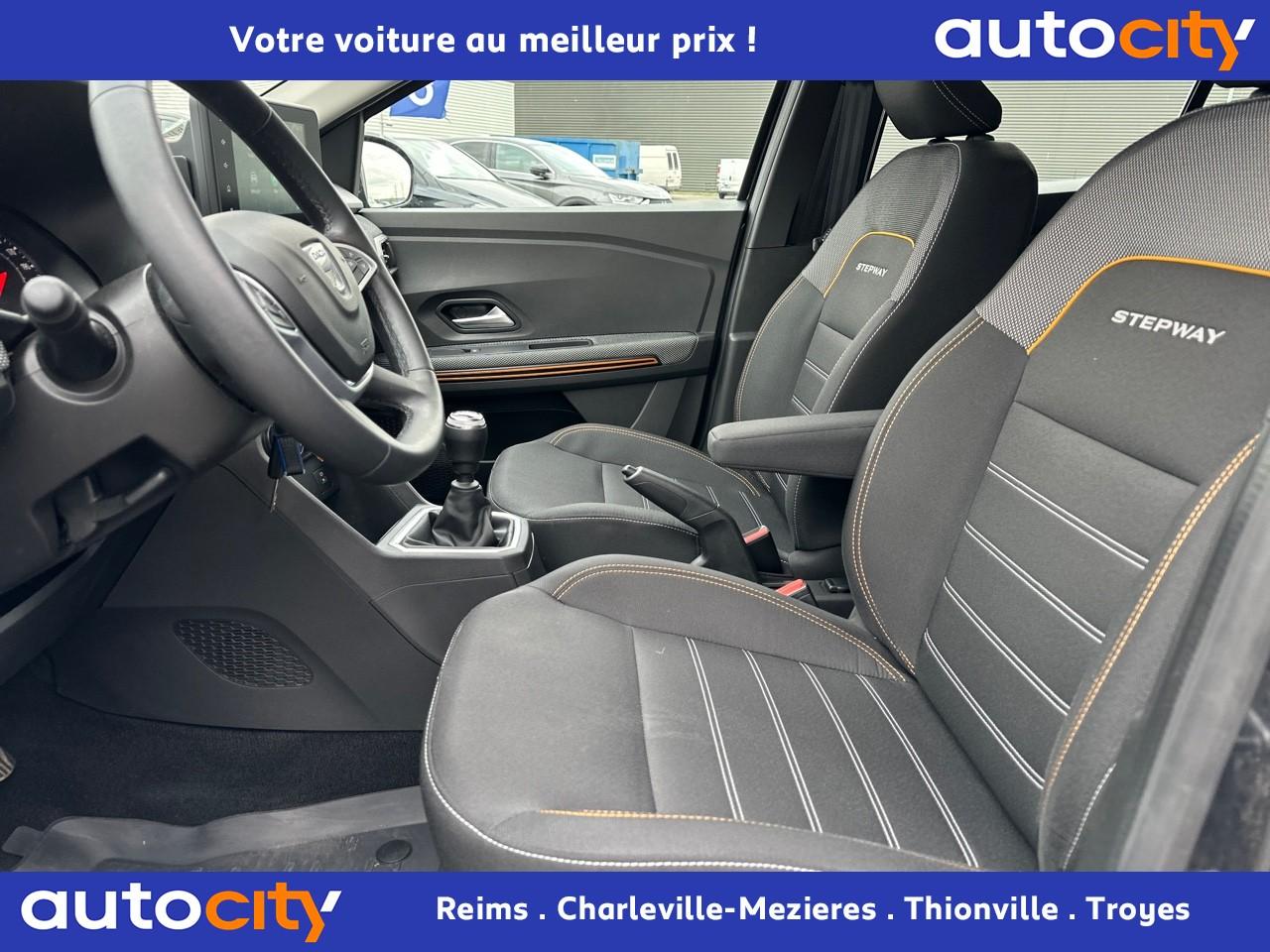 ABS avec aide au freinage d'urgenceAccoudoir central avantAide au démarrage en côteAide au stationnement arrièreAirbags conducteur et passagerAirbags latéraux thorax + rideaux avant et arrièreAppel d'urgence - EcallBanquette arrière rabattable 1/3-2/3Banquette arrière rabattable et fractionnable 1/3-2/3Barres de toit longitudinales modulaires (gris quartz)Boucliers avant et arrière ton carrosserieBoutons de commandes volant pour ordinateur de bordCalandre avec inscription "Stepway" chroméeCalandre chroméeClimatisation manuelleCondamnation automatique des portes en roulantCondamnation des portes électrique avec télécommande à radiofréquencesContours des aérateurs chrome satin et orange cuivreContrôle de pression des pneus ( TPMS )Direction assistée électriqueEclairage automatique des pharesEclairage du coffreEnjoliveur Orange sur les accoudoirs des portes avantEnjoliveurs Flexwheel 16” Saria - gris foncé avec logo Dacia chroméEPS : Contröle électronique de stabilitéEssuie-glace à déclenchement automatiqueFeux de brouillard avant avec enjoliveur chroméFeux de jour automatiques à LEDFreinage actif d’urgence (AEBS Interurbain)Kit de gonflageLève-vitres arrière électriquesLève-vitres impulsionnel anti-pincement conducteur et électrique passager avantLimiteur de vitesse avec avertisseur sonoreMedia Display 8” : Radio DAB + smartphone replication via câble USB, connexion Bluetooth, 4 haut-parleurs, écran tactile 8” + support téléphone amovibleMiroir de courtoisie côté conducteur et passagerOrdinateur de bord : distance parcourue, vitesse moyenne, autonomie, consommation moyennePeinture Blanc GlacierPlancher de coffre modulable à deux niveauxPoignées de maintien avant (côté passager) et arrièrePoignées de porte extérieures ton carrosserie de type réfrigérateurPoignées de portes intérieures finition chrome satinéPommeau de levier de vitesse avec insert chroméPrise 12V à l'avantPrise USB avantProgramme Eco-modeProjecteurs antibrouillardProtection de passages de roue et bas de marche noirsRégulateur de vitesseRétroviseurs extérieurs couleur carrosserieRétroviseurs extérieurs réglables électriquementRevêtement tissu sur la planche de bord et accoudoirs portes avantSellerie Stepway à insertions et surpiqures orangeSiège conducteur réglable en hauteurSignature lumineuse à LEDSkis avant/arrière chromésSystème de contrôle de trajectoire (ESC) avec fonction antipatinage (ASR)Système de fixation Isofix pour siège enfant aux places latérales arrièreSystème Stop & StartVitres teintéesVolant réglable en hauteurVolant réglable en profondeurVolant Softfeel