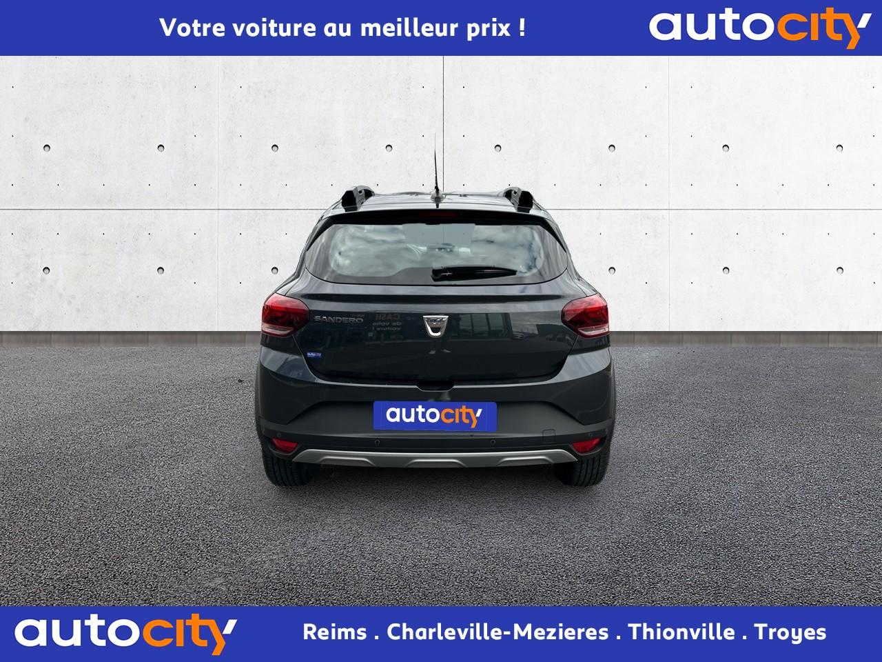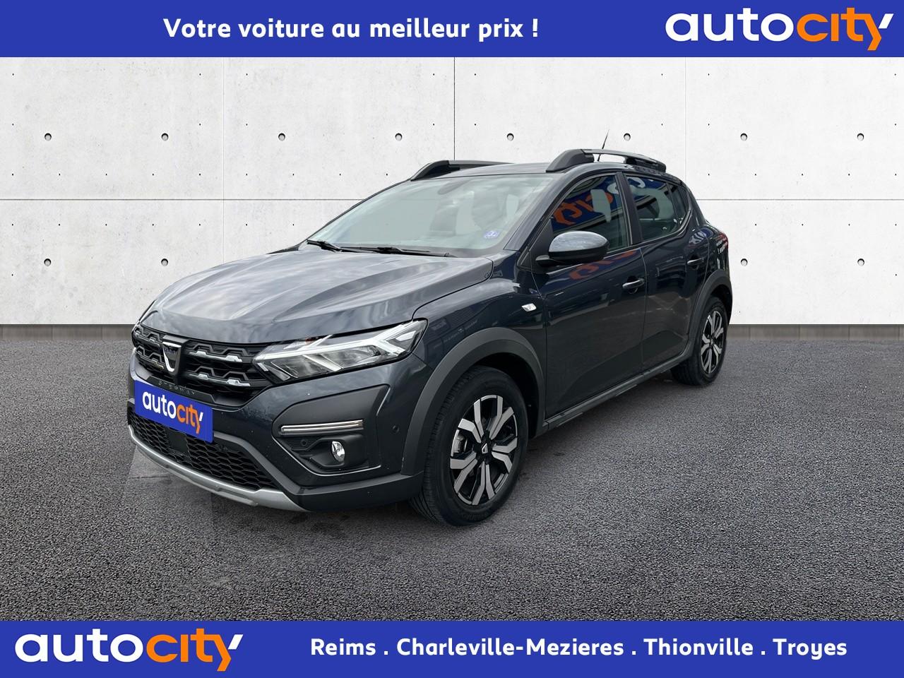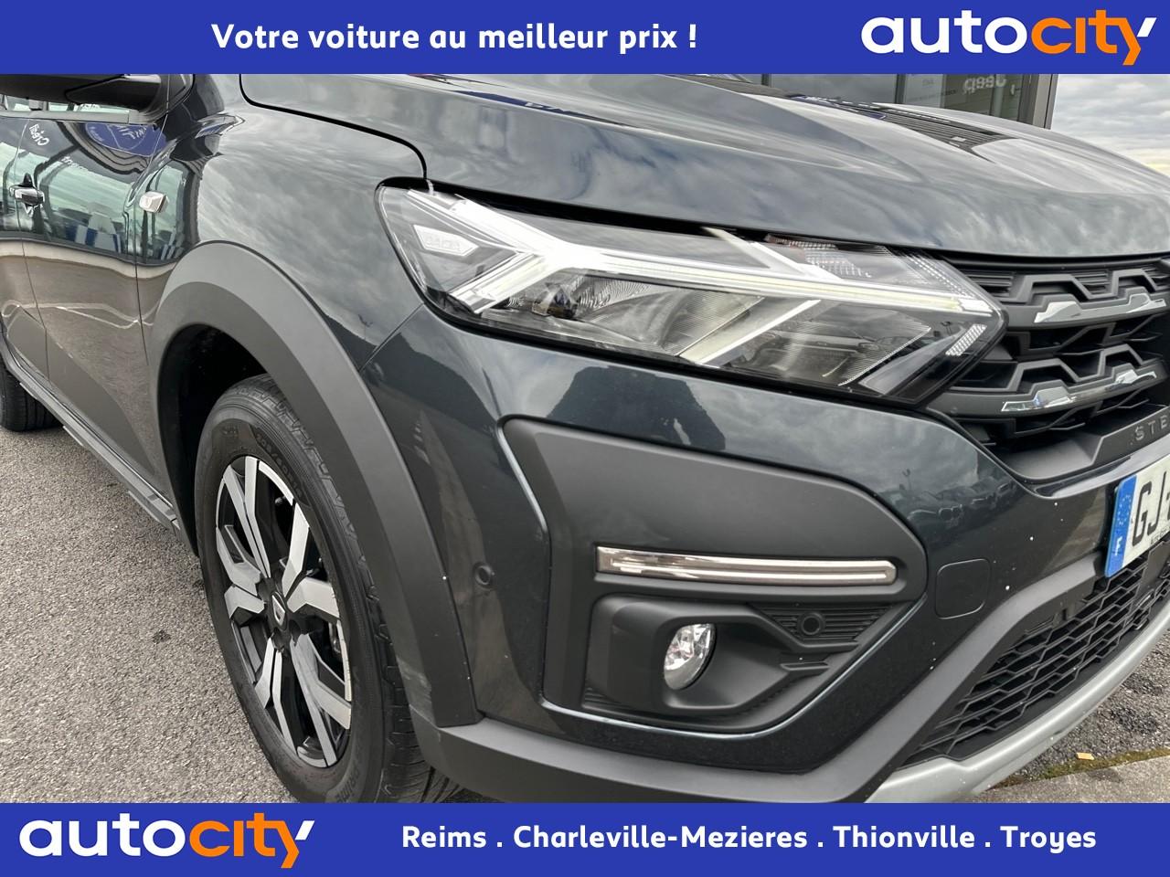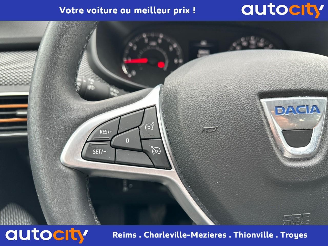 ABS avec aide au freinage d'urgenceAccoudoir central avantAide au démarrage en côteAide au stationnement arrièreAirbags conducteur et passagerAirbags latéraux thorax + rideaux avant et arrièreAppel d'urgence - EcallBanquette arrière rabattable 1/3-2/3Banquette arrière rabattable et fractionnable 1/3-2/3Barres de toit longitudinales modulaires (gris quartz)Boucliers avant et arrière ton carrosserieBoutons de commandes volant pour ordinateur de bordCalandre avec inscription "Stepway" chroméeCalandre chroméeClimatisation manuelleCondamnation automatique des portes en roulantCondamnation des portes électrique avec télécommande à radiofréquencesContours des aérateurs chrome satin et orange cuivreContrôle de pression des pneus ( TPMS )Direction assistée électriqueEclairage automatique des pharesEclairage du coffreEnjoliveur Orange sur les accoudoirs des portes avantEnjoliveurs Flexwheel 16” Saria - gris foncé avec logo Dacia chroméEPS : Contröle électronique de stabilitéEssuie-glace à déclenchement automatiqueFeux de brouillard avant avec enjoliveur chroméFeux de jour automatiques à LEDFreinage actif d’urgence (AEBS Interurbain)Kit de gonflageLève-vitres arrière électriquesLève-vitres impulsionnel anti-pincement conducteur et électrique passager avantLimiteur de vitesse avec avertisseur sonoreMedia Display 8” : Radio DAB + smartphone replication via câble USB, connexion Bluetooth, 4 haut-parleurs, écran tactile 8” + support téléphone amovibleMiroir de courtoisie côté conducteur et passagerOrdinateur de bord : distance parcourue, vitesse moyenne, autonomie, consommation moyennePeinture Blanc GlacierPlancher de coffre modulable à deux niveauxPoignées de maintien avant (côté passager) et arrièrePoignées de porte extérieures ton carrosserie de type réfrigérateurPoignées de portes intérieures finition chrome satinéPommeau de levier de vitesse avec insert chroméPrise 12V à l'avantPrise USB avantProgramme Eco-modeProjecteurs antibrouillardProtection de passages de roue et bas de marche noirsRégulateur de vitesseRétroviseurs extérieurs couleur carrosserieRétroviseurs extérieurs réglables électriquementRevêtement tissu sur la planche de bord et accoudoirs portes avantSellerie Stepway à insertions et surpiqures orangeSiège conducteur réglable en hauteurSignature lumineuse à LEDSkis avant/arrière chromésSystème de contrôle de trajectoire (ESC) avec fonction antipatinage (ASR)Système de fixation Isofix pour siège enfant aux places latérales arrièreSystème Stop & StartVitres teintéesVolant réglable en hauteurVolant réglable en profondeurVolant Softfeel