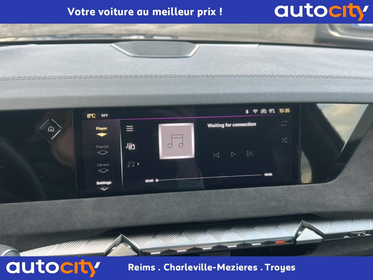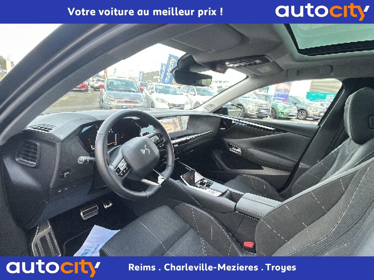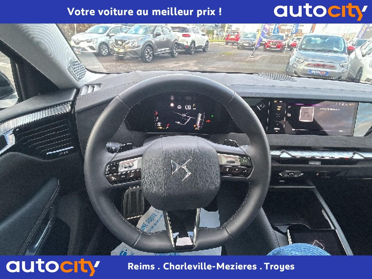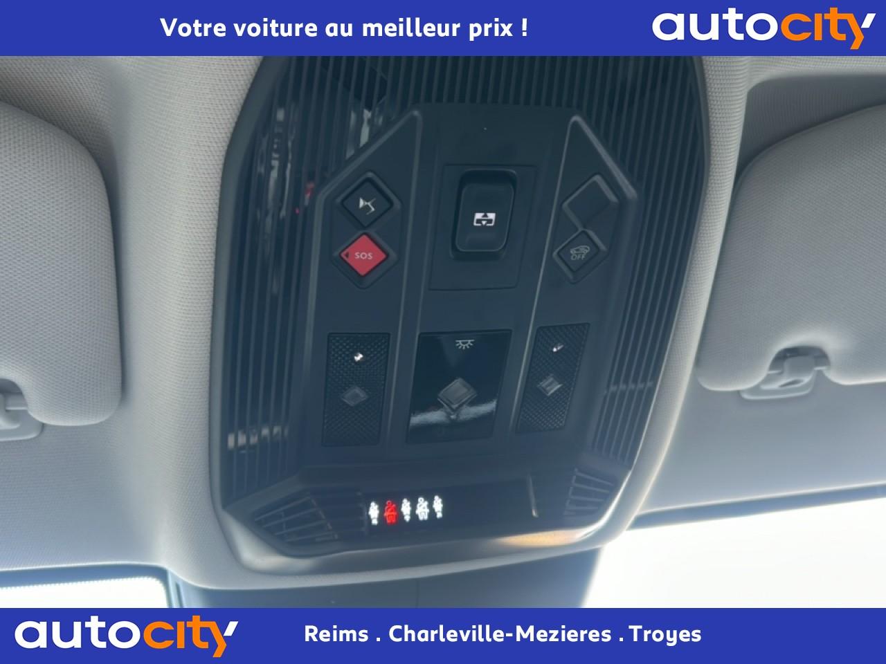 2 porte gobelets à l'avant2 Prises USB C à l'arrièreABS avec répartiteur électronique de freinage (REF) et aide au freinage d'urgence (AFU)Accès et démarrage mains libres ProximityAccoudoir central arrière intégrant deux portes gobelets + trappe à skiAccoudoir central avant avec compartiment réfrigéréAccoudoir central avant éclairéAdaptive Cruise Control Stop & GoAide au démarrage en côteAide au stationnement avant et arrière + caméra de reculAirbag central entre les sièges avantAirbags frontaux conducteur et passager (déconnectable côté passager)Airbags latéraux de type «thorax» aux places avantAirbags rideaux aux places avant et arrièreAlerte attention conducteurAlerte de franchissement Involontaire de ligneAllumage automatique des projecteursAnneaux d'arrimage dans le coffre (x4)Antenne de toit « aileron de requin »Avertisseur de risque de collisionBanquette arrière 2/3 - 1/3 et 3 appuie-têtesBoîte à gants floquéeBoitiers de rétroviseurs extérieurs noir brillantCabochons de roue noir brillantCalandre DS Wings Noir brillantCapot avant actifCentre de roue NoirClean Cabin avec "Air Quality System"Climatisation automatique bi-zoneClimatisation automatique bi-zone, avec fonction REST, 3 modes de débit d'airCombiné instrumentation numérique 7"Condamnation automatique des portes et du coffre en roulantConnection USB type C (dans l'accoudoir central avant)Console centrale avec compartiment de rangement ferméContrôle de stabilité de l'attelageContrôle dynamique de stabilité (ESP) avec antipatinage des roues (ASR)Détection de sous-gonflage des pneumatiquesDiffuseur arrière Noir BrillantDS AIRDS E-TOGGLEDS EXTENDED HEAD UP DISPLAYDS MATRIX LED VISIONEclairage à LED au niveau des piedsEclairage à LED dans l'accoudoir centralEclairage d'accueil sur rétroviseurs extérieursEclairage d'ambiance à LED personnalisableEclairage de la boîte à gant LEDEclairage du coffre à LEDEcran tactile capacitif 10'' HDEnjoliveurs de custode Noir BrillantEntourage supérieur de vitres latérales chroméEssuie-glace à déclenchement automatiqueEssuie-vitre arrièreFeux arrière Full LED effet 3D avec traitement écaillesFixations ISOFIX Top Tether pour les places latérales arrièreFrein de stationnement électrique automatiqueFrein multi-collisionFreinage d'urgence automatique piloté par caméra et radarGrille de calandre Noir brillant avec pampilles chroméesIntérieur Alcantara NoirJantes alliage 19'' SEVILLAJonc sur volet chroméKit de dépannage provisoire des pneumatiquesLécheurs de vitres latérales noir brillantLève-vitres électriques avant et arrière, séquentiels et antipincementLimiteur de vitesseLunette arrière chauffanteMirror Screen sans fil via WifiMonogramme DS chromé sur l'enjoliveur de custode latéralMonogramme extérieur Etoile sur le capotMonogrammes avant et arrière ChromésPack Connect PLUS pour 3 ansPack Détection Trafic ArrièrePack DS IRIS SYSTEMPack Sièges ElectriquesPalettes au volantPare-brise teinté et acoustiquePare-soleil avec miroirs de courtoisie occultables éclairés à LEDPédalier en aluminiumPeinture Noir Perla NeraPlafonnier avant et liseuses arrière i DOME tactilesPlafonnier I-DOMEPlaques de seuil de portes avantPoignées de portes affleurantes ChroméesPrédisposition pour roue de secoursPrise 12V à l'avant et dans le coffrePrise USB type C dans le rangement de la console centraleProtections inférieures de portes noires avec insert chroméRadio Numérique DABReconnaissance étendue des panneaux de circulationRégulateur de vitesse adaptatifRégulateur de vitesse adaptatif et Pack Détection Trafic ArrièreRétroviseur intérieur électrochrome sans contourRétroviseurs extérieurs électriques, dégivrants et rabattables électriquementSécurité enfant manuelleSièges avant avec mousse haute densitéSOS & ASSISTANCESurtapis aux places avant et arrièreVérins d'ouverture et de maintien du capot moteurVitrage latéral feuilleté acoustiqueVitres arrière et lunette arrière surteintéesVolant réglable en hauteur et en profondeurZone de dépose pour smartphone