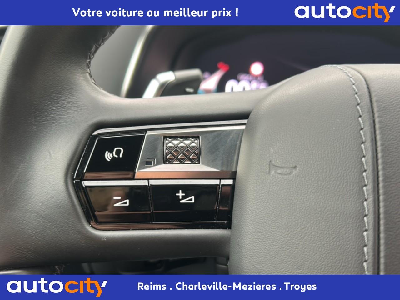 ABS avec répartiteur électronique de freinage (REF)Accès et démarrage mains-libresAccoudoir central arrièreAccoudoir central Toile DS avec rangementAide au démarrage en côteAide au stationnement avant et arrière + caméra de reculAirbags frontaux conducteur et passager (déconnectable côté passager)Airbags latéraux avantAirbags rideaux aux places avant et arrièreAlerte attention conducteurAlerte de franchissement Involontaire de ligneAllumage automatique des projecteursAssistance au freinage d'urgenceBadge DS chromé sur le capotBanquette AR 1/3 2/3Barres de toit longitudinales en aluminiumBoîte à gants réfrigéréeBoitiers de rétroviseurs extérieurs noir brillantCalandre DS Wings chroméeCentre de roue en noir brillantCiel de pavillon sombreCombiné d’instrumentation numérique de 12,30” en haute définitionCommutation automatique des feux de routeContrôle de stabilité de l'attelageContrôle dynamique de stabilité (ESP) avec antipatinage des roues (ASR)Détecteur de sous-gonflageDeux prises USB type A pour les passagers arrièreDouble antennesDS Drive AssistDS IRIS System avec Navigation 3D ConnectéeDS LIGHT VEILDS PIXEL LED VISION 3.0Eclairage à LED au niveau des piedsEclairage d'accompagnement "Follow me Home"Eclairage d'accueilEclairage PolyambientEcran tactile capacitif 12,3’’ HDEntourage des vitres latérales chroméEssuie-glace à déclenchement automatiqueFeux arrière 3D (traitement écailles) avec indicateur défilant à LEDFixation Isofix aux places arrièreFrein de stationnement électrique automatiqueFreinage d'urgence automatique piloté par caméraGrille de calandre Noir brillant avec pampilles chroméesHayon motorisé avec Accès Bras ChargéIntérieur DS Cuir Nappa Noir BasalteJantes alliage 19'' EDINBURGHJonc chromé sur bouclier arrièreJonc supérieur de volet Noir brillant avec lettrage 'DS Automobiles' chroméKit de dépannageLève-vitres électriques avant et arrière, séquentiels et antipincementLunette arrière chauffanteMirror Screen sans fil via WifiMonogrammes arrière chroméMontre B.R.M. R180Navigation 3D connectée en temps réel avec reconnaissance vocalePalettes au volantPare-brise chauffantPare-brise teinté et acoustiquePédalier et repose-pied en aluminiumPieds de rétroviseurs extérieurs couleur carrosseriePoignées de portes extérieures de couleur carrosserie avec inserts type chromePrédisposition Plancher modulable à 2 positionsPrise USB type C dans le rangement de la console centralePrises 12V (console centrale avant et coffre)Radio Numérique DABReconnaissance étendue des panneaux de circulationRégulateur et limiteur de vitesseRétroviseur extérieur passager indexé au passage de la marche arrièreRétroviseur intérieur électrochrome sans contourRétroviseurs extérieurs électriques et dégivrantsRétroviseurs extérieurs électrochrome côté conducteurRétroviseurs extérieurs rabattables électriquement avec projection au sol du logo DSSabot avant ChromésSélecteur de mode de conduiteSeuil de coffre chroméSeuil de portes Trame DSSièges avant chauffantsSièges avant électriquesSOS & ASSISTANCESurtapis aux places avant et arrièreSurveillance d'angles mortsTeinte extérieure Bleu Saphir métalliséToit ouvrant panoramique électrique avec occulteur motorisé associéVérins de capot moteurVitrage latéral feuilleté acoustiqueVitres arrière et lunette arrière surteintéesVolant réglable en hauteur et en profondeur