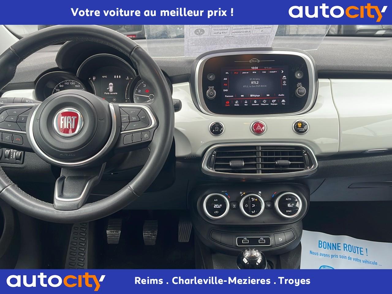 ABS – antiblocage des roues avec répartiteur de freinage EBDAirbags fiat conducteur et passagerAirbags latéraux + rideauxBanquette arrière rabattable 40/60Climatisation automatique bi-zoneCommandes de l'autoradio au volantCondamnation centralisée à distanceContrôle électronique de stabilité (ESC)Contrôle de pression des pneus ( TPMS )Détecteur de pluie et allumage automatique des projecteursFonction Start/StopFrein de stationnement électriqueHill Holder - aide au démarrage en côteJantes alliage 17" SilverKit de réparation "Fix et Go"Lève-vitres électriques avant et arrièreLimiteur de vitesse intelligentOuverture et démarrage sans clé “Smart Key”Pack ConfortPhares avant antibrouillard avec fonction ''Corner-light''Prise 12VProjecteurs avec DRL à LEDRégulateur de vitesseRétroviseurs extérieurs électriques et dégivrantsRétroviseurs extérieurs couleur carrosserieRadar de reculRadars de parking avantReconnaissance des panneaux de signalisationSiège conducteur réglable en hauteurSiège passager avant rabattableSystème d'avertissement de franchissement de ligne avec correctionSystème Link : intégration Apple CarPlay et compatibilité Android AutoSystème Uconnect 7” HD LIVE (radio Bluetooth, USB)Volant gaîné en techno-cuirVolant réglable en hauteur et en profondeur