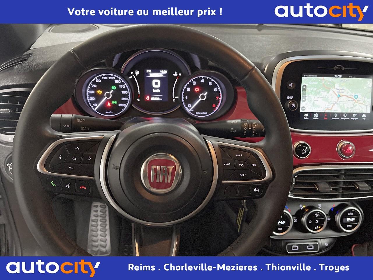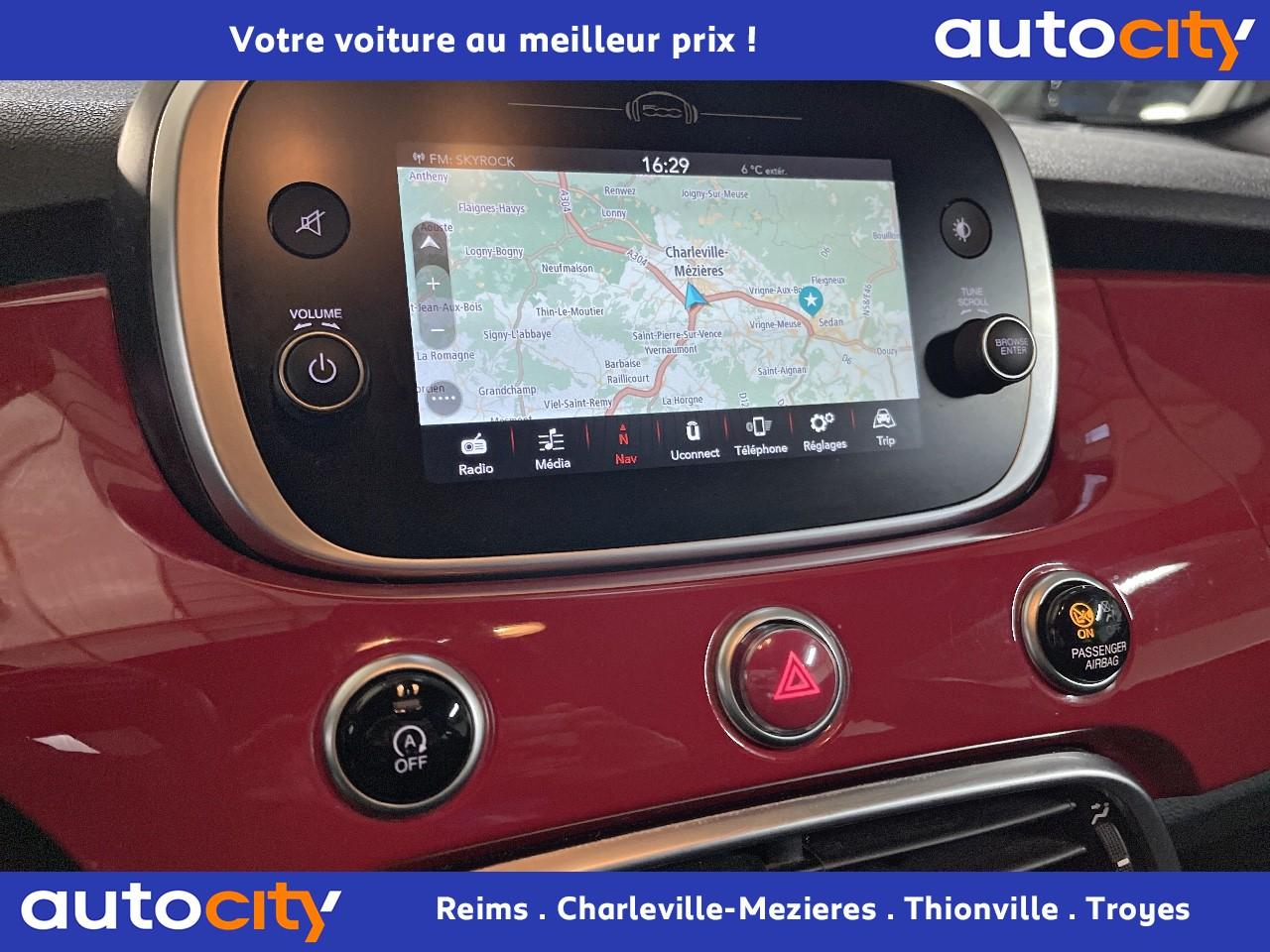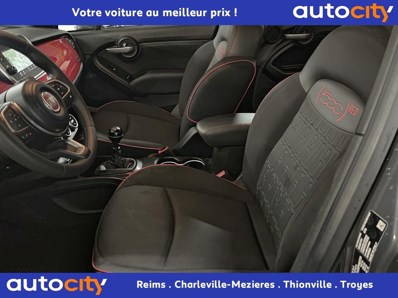 ABS – antiblocage des roues avec répartiteur de freinage EBDAccoudoir central avantAirbags conducteur et passagerAirbags latéraux et rideauxBanquette arrière rabattable 40/60Barres de toit longitudinalesBoucliers avant et arrière spécifiques look « Cross »Centres de roues rougeClimatisation automatique bi-zoneCommandes de l'autoradio au volantCondamnation centralisée à distanceContrôle électronique de stabilité (ESC)Coques de rétroviseurs extérieurs rougesDétecteur de luminositéFeux de jour halogènesFrein de stationnement électriqueHill Holder - aide au démarrage en côteJantes alliage 17” Black MachinedLimiteur de vitesse intelligentLogo ''Red'' montant centralPeinture métalliséePrise 12VProjecteurs antibrouillardReconnaissance des panneaux de signalisationRégulateur de vitesseRétroviseurs extérieurs électriques et dégivrantsSellerie tissu avec passepoil rouge et insert logo 500 REDSiège conducteur réglable en hauteurSiège passager avant rabattableSièges (RED) en fibre SEAQUAL monogramme FIAT et surpiqûres rougesSystème ‘Start/Stop' automatiqueSystème d'avertissement de franchissement de ligne avec correctionSystème de surveillance de pression des pneusSystème Uconnect 7", bluetooth, Aplle Carplay/Android AutoTapis de sol avant et arrièreTapis de sol avec liseré rougeVitres électriques avant et arrièreVolant réglable en hauteur et en profondeurVolant Soft-Touch