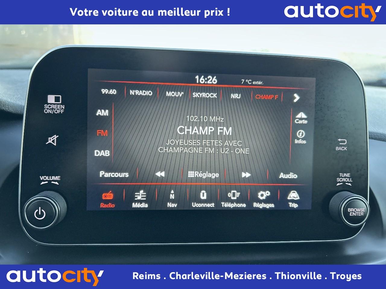 3 appuie-tête arrière réglables en hauteurABS avec aide au freinage d'urgenceAccoudoir central avant coulissant avec zone de rangementAirbags conducteur et passagerAirbags Fiat latéraux avantAirbags Fiat rideaux avant et arrièreAllumage automatique des projecteursBanquette arrière rabattable et fractionnable 60/40 Fix&FoldBoucliers couleur carrosserieCapteur de pluieCapteur de température extérieureCartographie EuropeCeintures de sécurité avant 3 points réglables en hauteurClimatisation automatiqueCondamnation centralisée des portes avec télécommandeDirection assistée avec fonction « City »ESC avec aide au démarrage en côte HSAGrille de calandre avec inserts chromésIndicateur de changement de vitessesJantes alliage 17'' bicoloresKit de réparation "Fix et Go"Lunette arrière dégivranteOrdinateur de bord TFT 3,5''Pack ChromePack SécuritéPack TechPack Tech TipoPare-soleil passager avec miroir de courtoisiePeinture Pastel Blanc GelatoPhares avant antibrouillard avec fonction ''Corner-light''Poignées de portes chroméesPrise 12V à l'avantProjecteurs avec DRL à LEDRadar de reculRétroviseur intérieur électrochromeRétroviseurs extérieurs couleur carrosserieRétroviseurs extérieurs électriques et dégivrantsSellerie tissu Terralight et inserts CastiglioServices UConnect LiveSiège conducteur réglable en hauteur avec accoudoirSystème de contrôle de la pression des pneusSystème de fixation ISOFIX 3 points pour siège enfant aux places arrièreSystème de téléphonie mains libres BluetoothSystème multimédia Uconnect à écran HD tactile 7’’Tableau de bord avec intégration de tablette 7’’Vitres arrière électriquesVitres avant électriquesVitres latérales et lunette arrière surteintéesVolant réglable en hauteur et en profondeur
