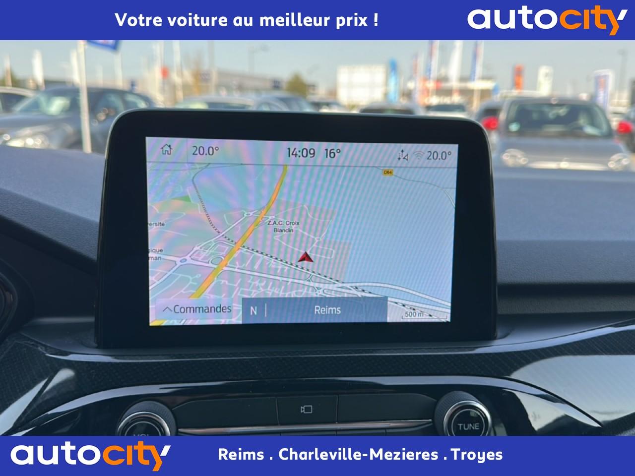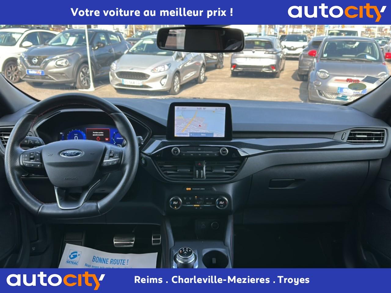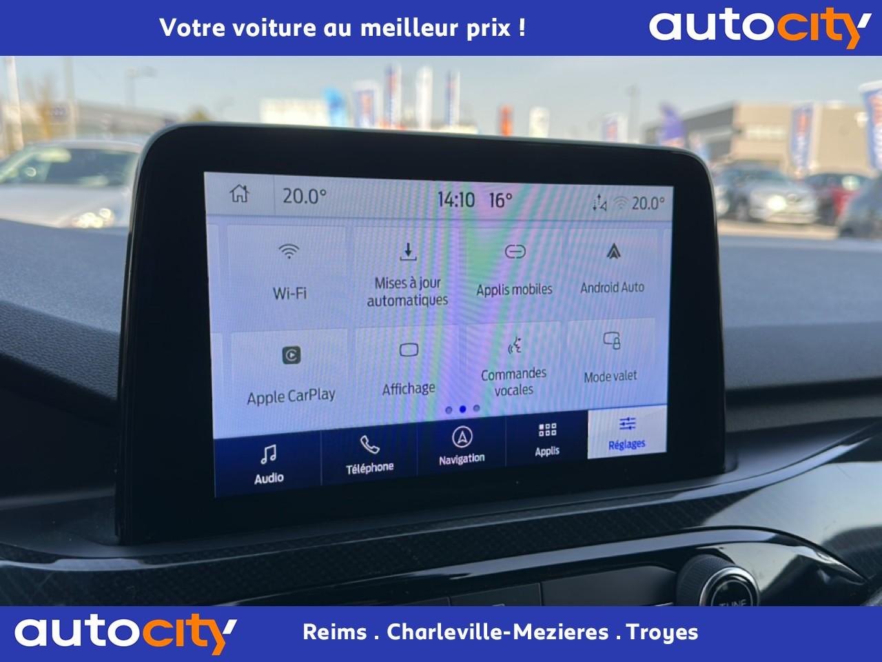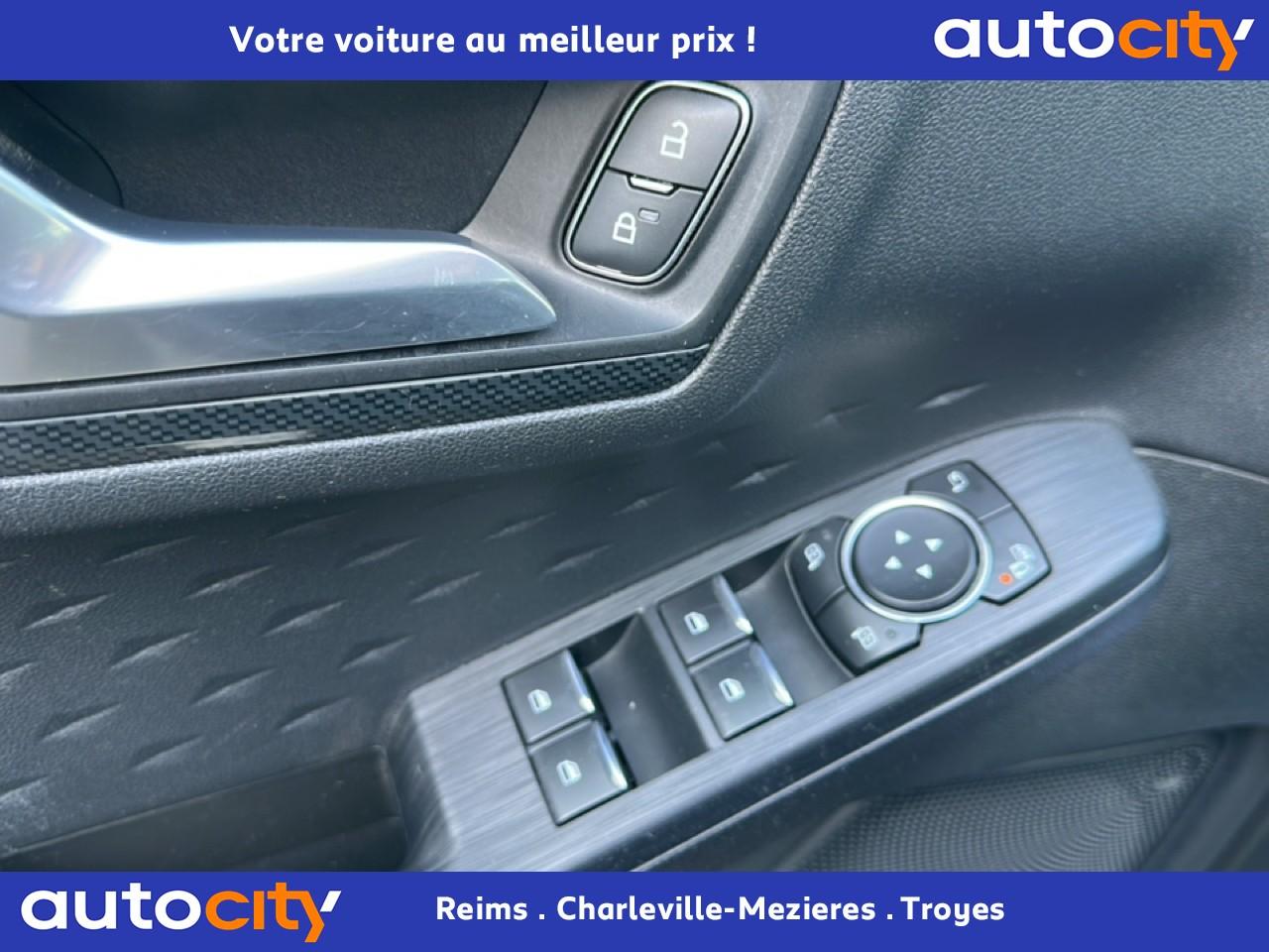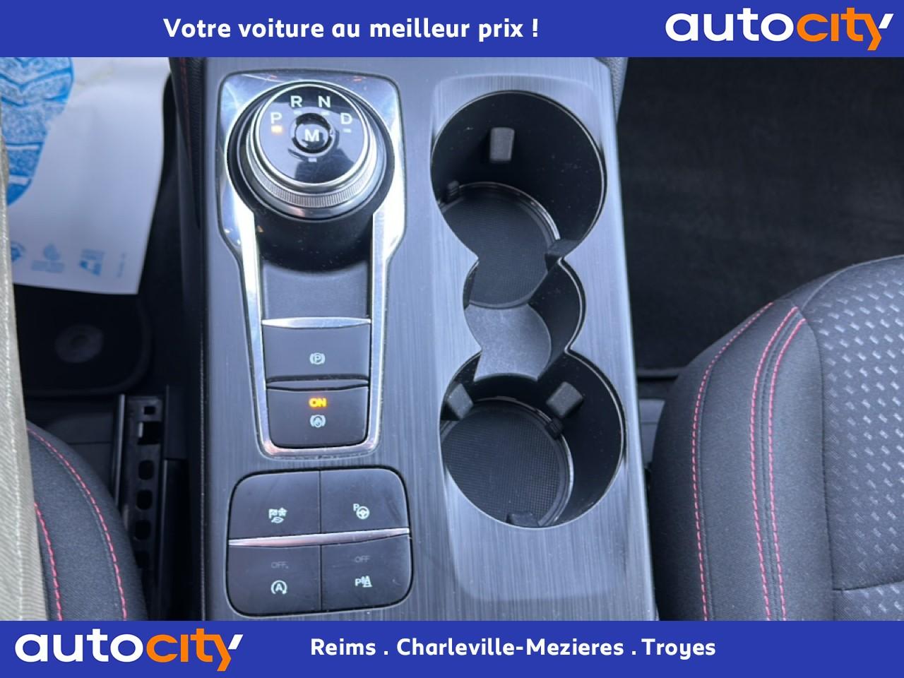 2 Fixations Isofix à l'arrière2 ports de charge USB situés dans la console centrale3 appuie-tête arrière3 Modes d'alimentation sélectionnables (Auto, Now, Later)3ème feu stop arrière5 ceintures de sécurité 3 pointsAide au démarrage en côteAide au stationnement avant/arrièreAir conditionné à régulation automatique 2 zonesAirbags frontaux, latéraux (thorax) et rideauxAlerte de franchissement de ligne avec maintien de voieAllumage automatique des essuie-glacesAllumage automatique des projecteursAnneaux d'arrimage dans le coffreAntiblocage ABSAntipatinageAssistance au freinage d'urgenceAube de calandre de radiateur KysorBadges ST-LineBanquette arrière coulissante et rabattable 60/40Barres de toit noiresBecquet arrière couleur carrosserieBouton de démarrage Ford Power - démarrage du moteur sans cléCache-bagages amovibleChargeur de smartphone par inductionCombiné d'instrumentation numérique 12,3" avec EcomodeConsole centrale avec accoudoirContrôle de stabilité anti-retournement - RSCContrôle du roulis de la remorque (TSC)Correcteur électronique de trajectoire ESPDésactivation de l'airbag du passager avantDirection assistée électriqueDisques de frein arrièreDouble sortie d'échappement ST-LineE-Shifter - Sélecteur de vitesse rotatifEclairage d'ambiance intérieurEclairage d'approche dans rétroviseurs extérieursEclairage dans le coffreEclairage de la boîte à gantsEntourage de vitres noirEtriers de frein rougesFeux antibrouillard à LED avec éclairage d'angleFeux arrière à LEDFeux de jour à LEDFordPass Connect avec modem embarqué 4 et fonction eCallFrein de stationnement électriqueGrille de calandre ST-LineJantes alliage 18" 5x2 branches finition ST-Line avec pneus Summer BSW 225/60 R18Kit carrosserie ST-LineLimiteur de vitesse intelligentMoulure de cadre de porte inférieure noireMoulure de cadre de porte supérieure chroméOrdinateur de bordOuverture du Hayon Motorisé avec commande à distancePack AssistancePalettes au volantPare-brise acoustiquePare-brise en verre laminéPare-chocs couleur carrosseriePare-soleil avant avec miroir de courtoisie éclairéPédalier en aluminiumPeinture non-métallisée Bleu AbyssePhares halogènesPlancher de coffre ajustablePlaques de seuils de portes avant ST-LinePoignées de portes couleur carrosseriePoignées de portes intérieures chroméesPrise 12V à l'avantPrise 12V dans le coffrePrise 12V sur la console centraleRétroviseur intérieur électrochromeRétroviseurs extérieurs couleur carrosserieRétroviseurs extérieurs rabattables électriquement et dégivrantsRoue de secours galette 17" avec pneus 165/70 R17Sécurité enfant avec verrouillage électrique des portes arrièreSellerie tissuSiège conducteur réglable en hauteur avec soutien lombaire (8 positions)Siège passager réglable en hauteur avec soutien lombaire (8 positions)Sièges avant sportStop & StartSuspensions sportSystème audio bi-tuner AM/FM Ford SYNC 3, avec écran tactile 8" DAB, commandes vocales, 2 ports USB, compatible AppLink, Apple CarPlay et Android auto, 6 haut-parleursSystème de Navigation Europe et points d'intérêt MichelinSystème de rappel du port des ceinturesSystème de surveillance de pression des pneusSystème Keyfree (ouverture et démarrage mains libres)Système MyKey (seconde clé programmable)Tapis de coffre moquetteTapis de sol avant et arrière ST-Line avec surpiqûres rougesTrappe à carburant Ford EasyFuelVerrouillage centralisé à distanceVitres avant et arrière électriquesVolant à méplat 3 branches Sensico ST-Line avec surpiqûres rougesVolant réglable en hauteur et en profondeur