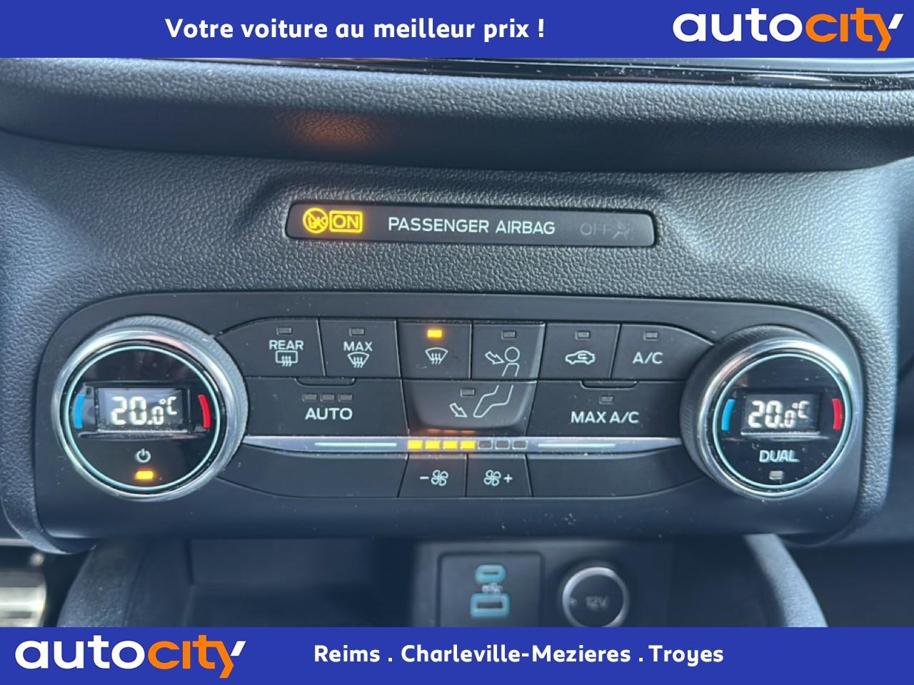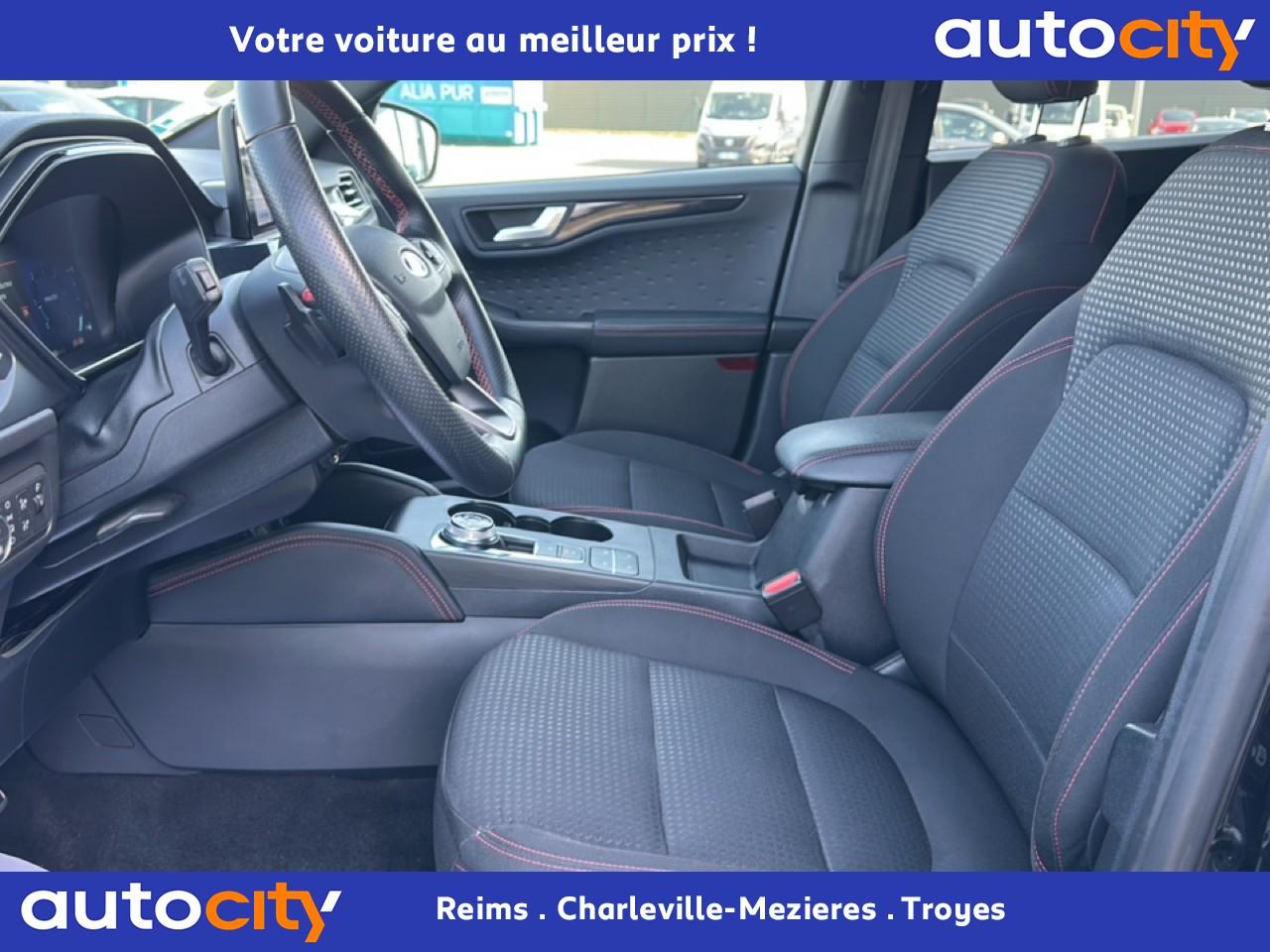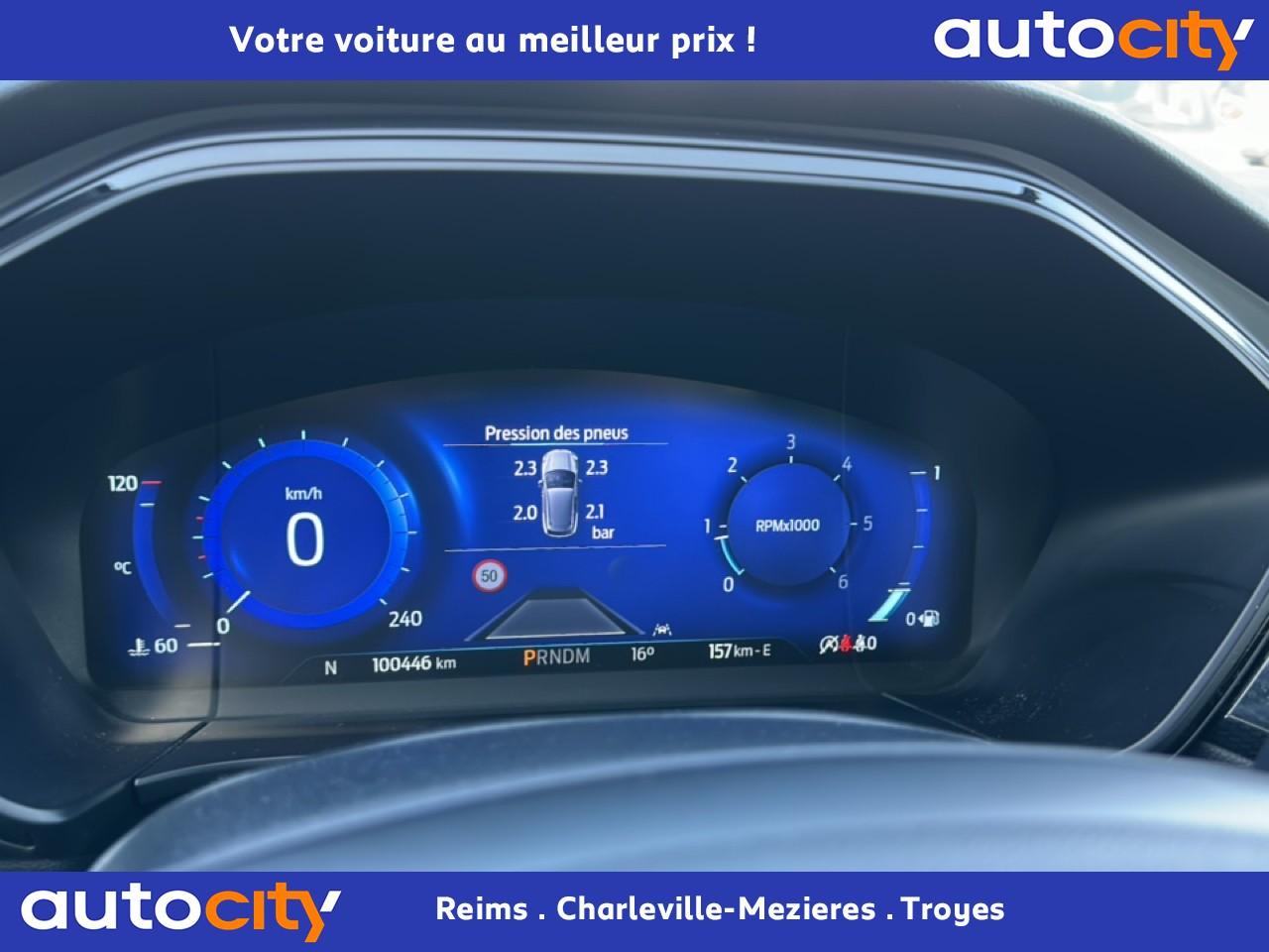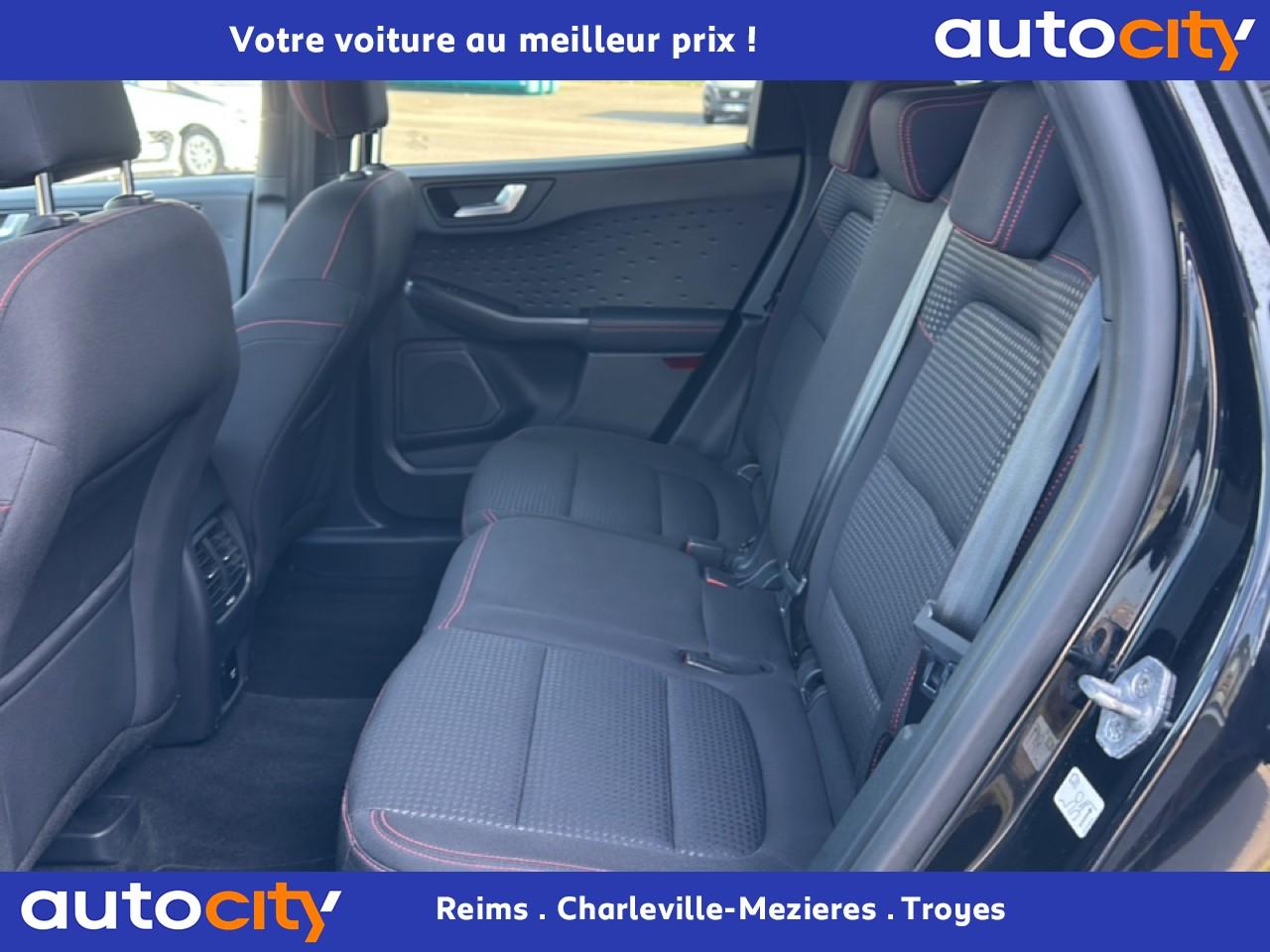 2 Fixations Isofix à l'arrière2 ports de charge USB situés dans la console centrale3 appuie-tête arrière3 Modes d'alimentation sélectionnables (Auto, Now, Later)3ème feu stop arrière5 ceintures de sécurité 3 pointsAide au démarrage en côteAide au stationnement avant/arrièreAir conditionné à régulation automatique 2 zonesAirbags frontaux, latéraux (thorax) et rideauxAlerte de franchissement de ligne avec maintien de voieAllumage automatique des essuie-glacesAllumage automatique des projecteursAnneaux d'arrimage dans le coffreAntiblocage ABSAntipatinageAssistance au freinage d'urgenceAube de calandre de radiateur KysorBadges ST-LineBanquette arrière coulissante et rabattable 60/40Barres de toit noiresBecquet arrière couleur carrosserieBouton de démarrage Ford Power - démarrage du moteur sans cléCache-bagages amovibleChargeur de smartphone par inductionCombiné d'instrumentation numérique 12,3" avec EcomodeConsole centrale avec accoudoirContrôle de stabilité anti-retournement - RSCContrôle du roulis de la remorque (TSC)Correcteur électronique de trajectoire ESPDésactivation de l'airbag du passager avantDirection assistée électriqueDisques de frein arrièreDouble sortie d'échappement ST-LineE-Shifter - Sélecteur de vitesse rotatifEclairage d'ambiance intérieurEclairage d'approche dans rétroviseurs extérieursEclairage dans le coffreEclairage de la boîte à gantsEntourage de vitres noirEtriers de frein rougesFeux antibrouillard à LED avec éclairage d'angleFeux arrière à LEDFeux de jour à LEDFordPass Connect avec modem embarqué 4 et fonction eCallFrein de stationnement électriqueGrille de calandre ST-LineJantes alliage 18" 5x2 branches finition ST-Line avec pneus Summer BSW 225/60 R18Kit carrosserie ST-LineLimiteur de vitesse intelligentMoulure de cadre de porte inférieure noireMoulure de cadre de porte supérieure chroméOrdinateur de bordOuverture du Hayon Motorisé avec commande à distancePack AssistancePalettes au volantPare-brise acoustiquePare-brise en verre laminéPare-chocs couleur carrosseriePare-soleil avant avec miroir de courtoisie éclairéPédalier en aluminiumPeinture non-métallisée Bleu AbyssePhares halogènesPlancher de coffre ajustablePlaques de seuils de portes avant ST-LinePoignées de portes couleur carrosseriePoignées de portes intérieures chroméesPrise 12V à l'avantPrise 12V dans le coffrePrise 12V sur la console centraleRétroviseur intérieur électrochromeRétroviseurs extérieurs couleur carrosserieRétroviseurs extérieurs rabattables électriquement et dégivrantsRoue de secours galette 17" avec pneus 165/70 R17Sécurité enfant avec verrouillage électrique des portes arrièreSellerie tissuSiège conducteur réglable en hauteur avec soutien lombaire (8 positions)Siège passager réglable en hauteur avec soutien lombaire (8 positions)Sièges avant sportStop & StartSuspensions sportSystème audio bi-tuner AM/FM Ford SYNC 3, avec écran tactile 8" DAB, commandes vocales, 2 ports USB, compatible AppLink, Apple CarPlay et Android auto, 6 haut-parleursSystème de Navigation Europe et points d'intérêt MichelinSystème de rappel du port des ceinturesSystème de surveillance de pression des pneusSystème Keyfree (ouverture et démarrage mains libres)Système MyKey (seconde clé programmable)Tapis de coffre moquetteTapis de sol avant et arrière ST-Line avec surpiqûres rougesTrappe à carburant Ford EasyFuelVerrouillage centralisé à distanceVitres avant et arrière électriquesVolant à méplat 3 branches Sensico ST-Line avec surpiqûres rougesVolant réglable en hauteur et en profondeur