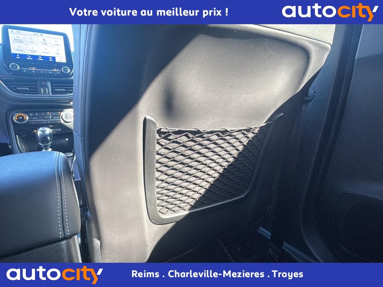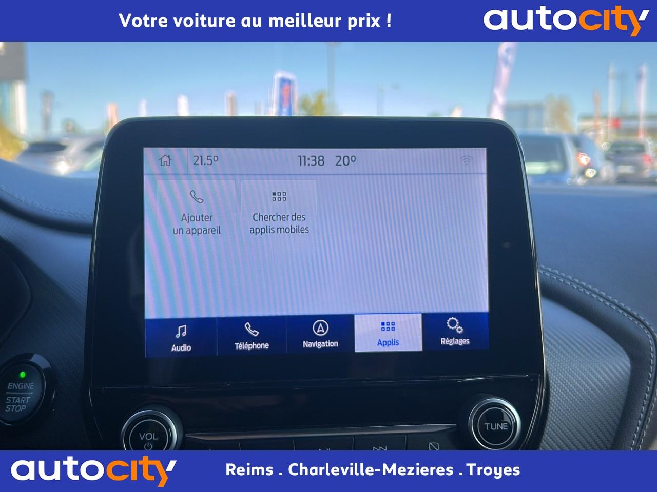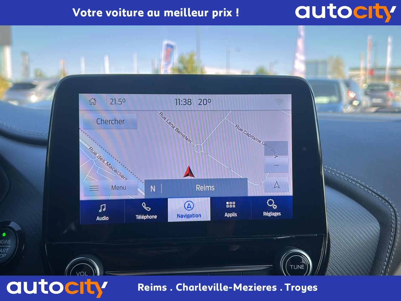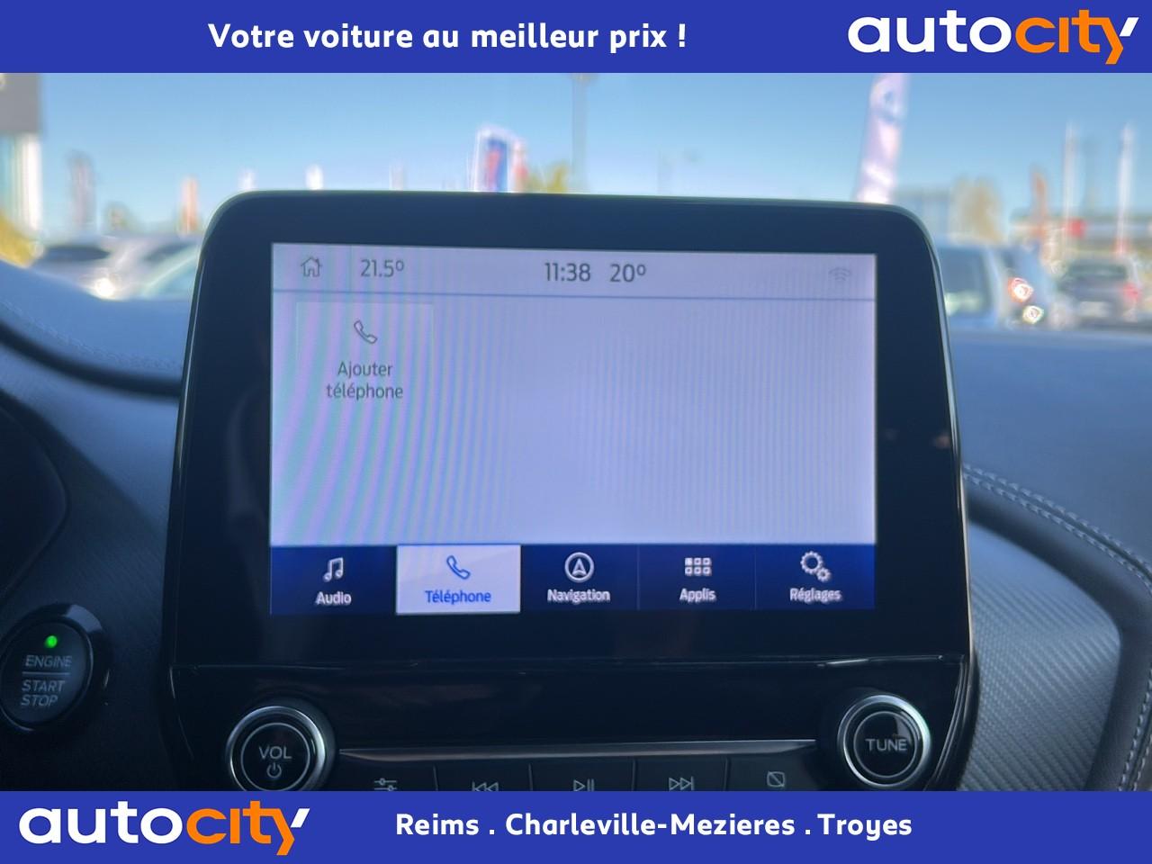 2 Fixations Isofix à l'arrière3 appuie-tête arrière5 ceintures de sécurité 3 points5 Modes de conduite sélectionnables (normal, eco, sport, faible adhérence, trail)Aide au démarrage en côteAide au maintien dans la voie avec détection des bas-côtésAide au stationnement arrièreAirbags frontaux, latéraux (thorax) et rideauxAlerte d'oubli de ceintures avant/arrièreAlerte de franchissement Involontaire de ligneAllumage automatique des projecteursAntipatinageAssistance au freinage d'urgenceBadges ST-LineBanquette arrière rabattable 40/60Bas de caisse couleur carrosserieBecquet arrière couleur carrosserieBouton de démarrage "Ford Power"Climatisation manuelleCombiné d'instrumentation numérique 12,3" avec EcomodeCombiné d'instrumentation TFT couleur 4,2" avec EcomodeConsole centrale avant avec deux porte-gobelets rétroéclairésConsole centrale avec accoudoir et rangementsContour des vitres latérales en noir finition brillanteCorrecteur électronique de trajectoire ESPDésactivation de l'airbag du passager avantDirection assistée électriqueEclairage d'ambiance intérieurFeux arrière à LEDFeux de jour à LEDFeux de route intelligents (passage feux de croisement/route automatique)FordPass Connect avec modem embarqué et fonction eCallFrein à disques à l'avantGrille de calandre ST-LineJantes alliage 17" 5x2 branches finition Black MachinedKit carrosserie ST-LineKit de réparation pneumatiqueLevier de frein à main gainé de SensicoLevier de vitesses gainé de SensicoLimiteur de vitesse intelligentPare-chocs couleur carrosseriePeinture non-métallisée Bleu AbyssePhares avant antibrouillard avec fonction d'éclairage d'anglePlancher de coffre ajustablePrise 12 V sur console centrale avantRégulateur de vitesseRétroviseurs extérieurs électriques couleur carrosserie, dégivrant et rabattables avec rappels de clignotantsSellerie tissu noir CourtSiège conducteur réglable en hauteur avec soutien lombairesSortie d'échappement chroméeSuspensions sportSystème audio Ford SYNC 3 avec écran tactile 8", commandes vocales, 2 ports USB, alerte contresens, compatible AppLink, Apple CarPlay et Android auto, 6 hauts-parleursSystème de freinage antiblocage (ABS)Système de Navigation Europe et points d'intérêt MichelinSystème de prévention de collision avec freinage post-collision et détection piétonsSystème de surveillance de pression des pneusSystème MyKey (seconde clé programmable)Tapis de sol avant avec surpiquresTrappe à carburant Ford EasyFuelVitres électriques avant et arrière avec descente et remontée à impulsionVolant à méplat 3 branches ST-Line avec surpiqûres rouges