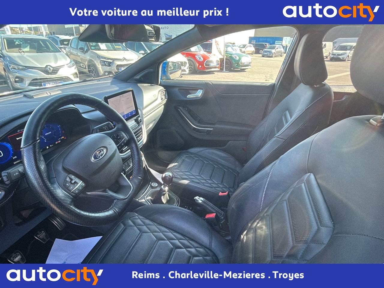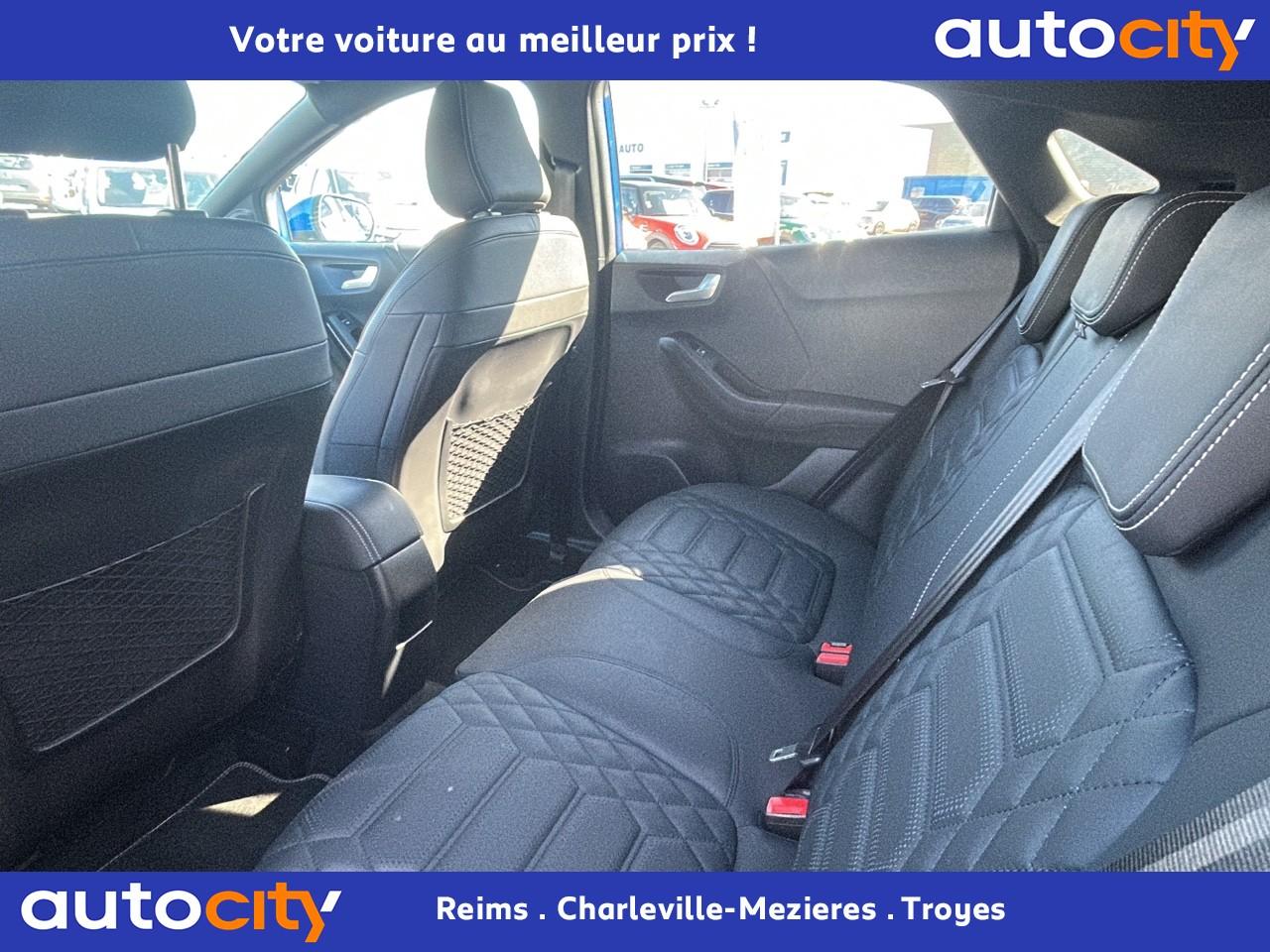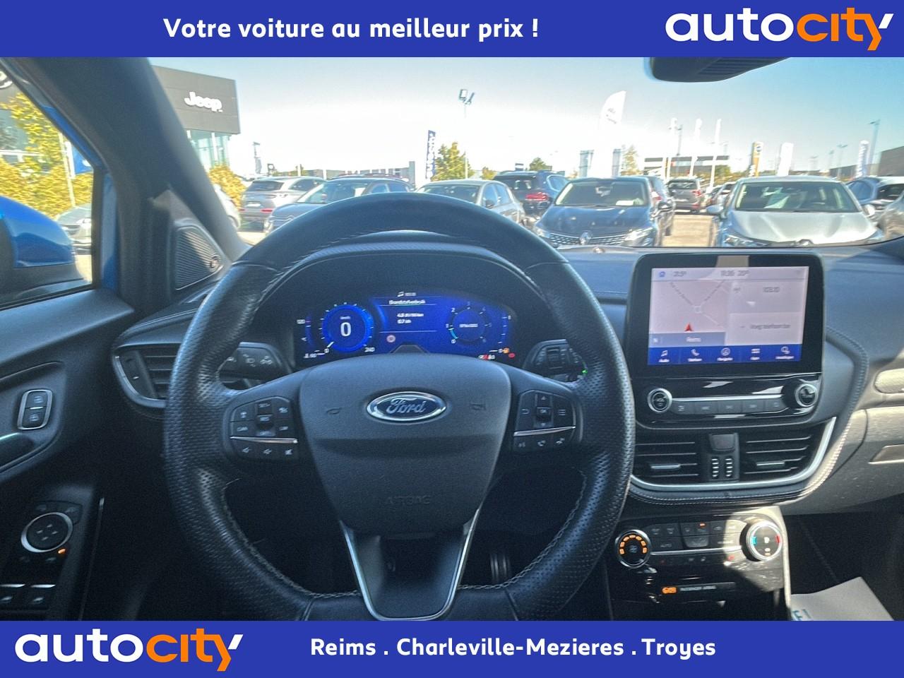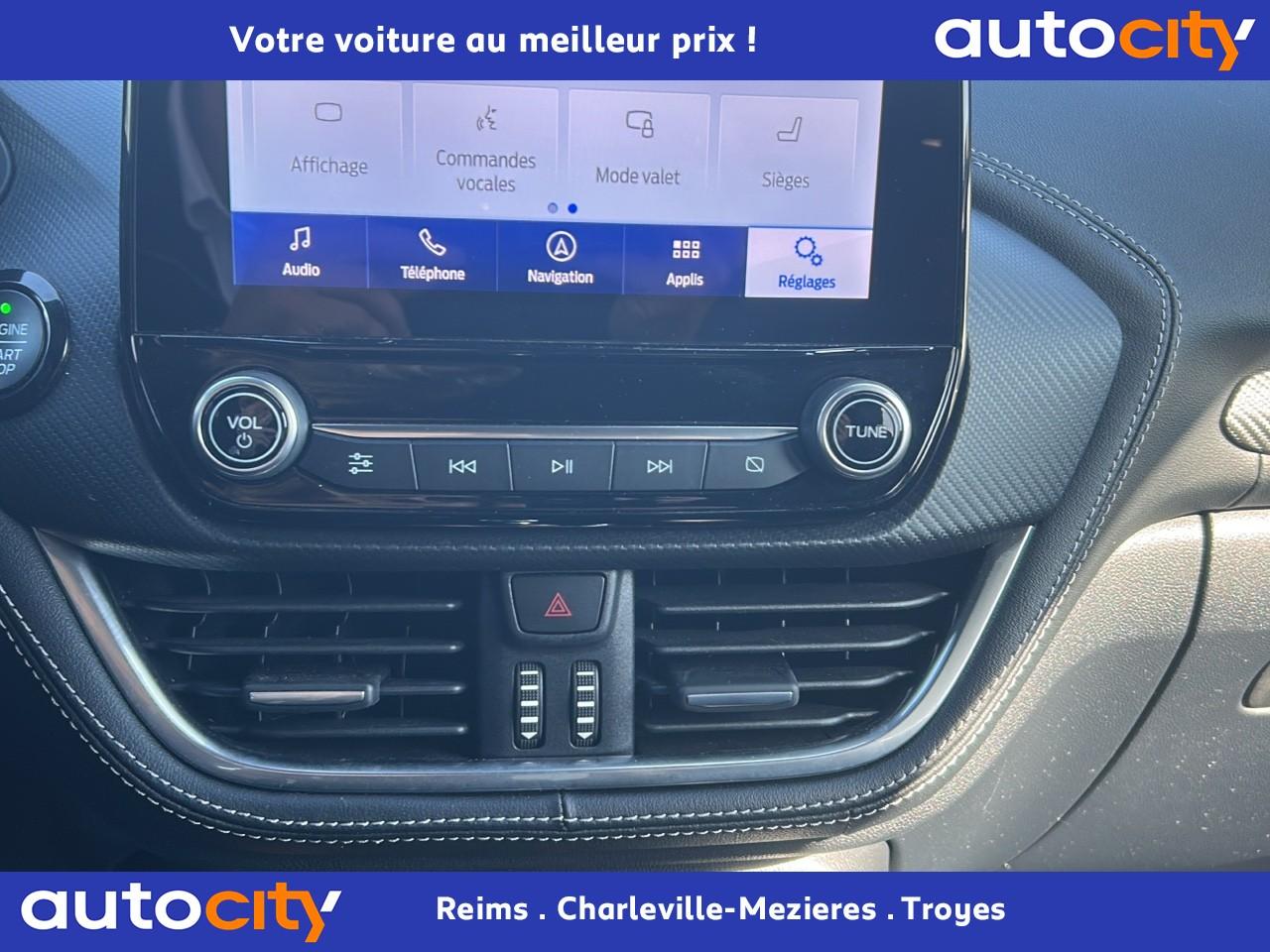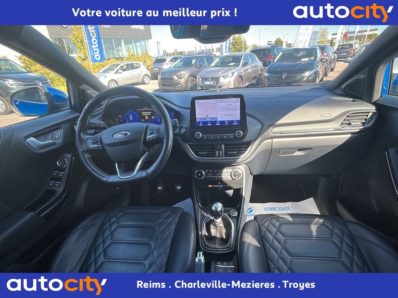 2 Fixations Isofix à l'arrière3 appuie-tête arrière5 ceintures de sécurité 3 points5 Modes de conduite sélectionnables (normal, eco, sport, faible adhérence, trail)Aide au démarrage en côteAide au maintien dans la voie avec détection des bas-côtésAide au stationnement arrièreAirbags frontaux, latéraux (thorax) et rideauxAlerte d'oubli de ceintures avant/arrièreAlerte de franchissement Involontaire de ligneAllumage automatique des projecteursAntipatinageAssistance au freinage d'urgenceBadges ST-LineBanquette arrière rabattable 40/60Bas de caisse couleur carrosserieBecquet arrière couleur carrosserieBouton de démarrage "Ford Power"Climatisation manuelleCombiné d'instrumentation numérique 12,3" avec EcomodeCombiné d'instrumentation TFT couleur 4,2" avec EcomodeConsole centrale avant avec deux porte-gobelets rétroéclairésConsole centrale avec accoudoir et rangementsContour des vitres latérales en noir finition brillanteCorrecteur électronique de trajectoire ESPDésactivation de l'airbag du passager avantDirection assistée électriqueEclairage d'ambiance intérieurFeux arrière à LEDFeux de jour à LEDFeux de route intelligents (passage feux de croisement/route automatique)FordPass Connect avec modem embarqué et fonction eCallFrein à disques à l'avantGrille de calandre ST-LineJantes alliage 17" 5x2 branches finition Black MachinedKit carrosserie ST-LineKit de réparation pneumatiqueLevier de frein à main gainé de SensicoLevier de vitesses gainé de SensicoLimiteur de vitesse intelligentPare-chocs couleur carrosseriePeinture non-métallisée Bleu AbyssePhares avant antibrouillard avec fonction d'éclairage d'anglePlancher de coffre ajustablePrise 12 V sur console centrale avantRégulateur de vitesseRétroviseurs extérieurs électriques couleur carrosserie, dégivrant et rabattables avec rappels de clignotantsSellerie tissu noir CourtSiège conducteur réglable en hauteur avec soutien lombairesSortie d'échappement chroméeSuspensions sportSystème audio Ford SYNC 3 avec écran tactile 8", commandes vocales, 2 ports USB, alerte contresens, compatible AppLink, Apple CarPlay et Android auto, 6 hauts-parleursSystème de freinage antiblocage (ABS)Système de Navigation Europe et points d'intérêt MichelinSystème de prévention de collision avec freinage post-collision et détection piétonsSystème de surveillance de pression des pneusSystème MyKey (seconde clé programmable)Tapis de sol avant avec surpiquresTrappe à carburant Ford EasyFuelVitres électriques avant et arrière avec descente et remontée à impulsionVolant à méplat 3 branches ST-Line avec surpiqûres rouges