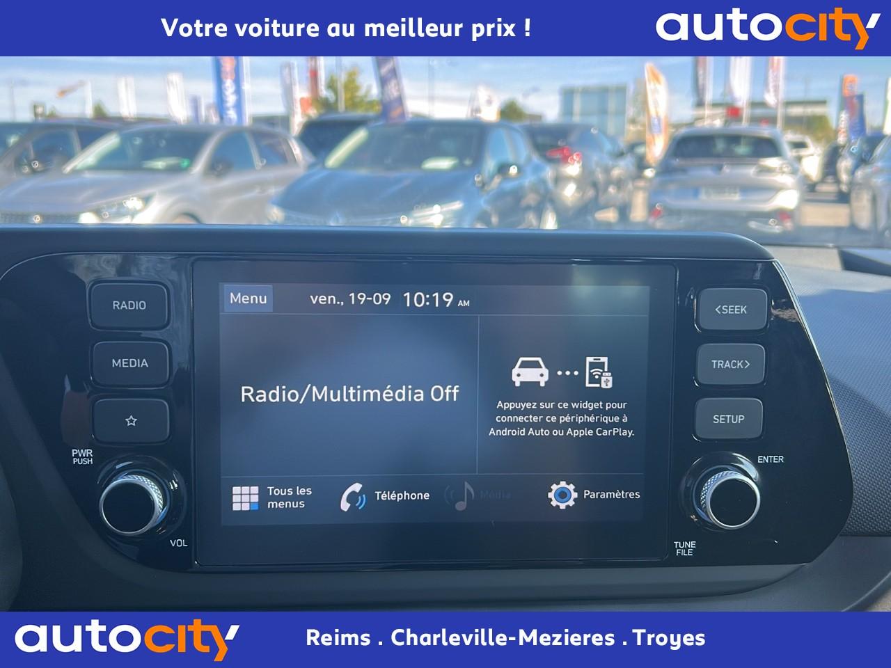 6 haut-parleursAccoudoir central avant coulissantAide au démarrage en côteAide au stationnement arrièreAirbag passager déconnectableAirbags conducteur et passagerAirbags latéraux avantAirbags rideaux avant/arrièreAlerte de non-bouclage de la ceinture de sécurité à toutes les placesAlerte de présence de passager arrièreAllumage automatique des projecteursAntidémarrageAppuie-tête avant et arrière règlables en hauteurAssistance active au maintien de voieAssistance active au suivi de voieBanquette arrière rabattable 40/60Caméra de reculClimatisation manuelleCommandes audio au volantCompatibilité Apple CarPlay et Android AutoCompteurs numériques 10,25''Connexion BluetoothConsole de rangement sous accoudoir central avantContrôle de pression des pneus ( TPMS )Contrôle de trajectoire électronique (ESP & VSM)Détecteur de fatigue du conducteureCall : appel d'urgence automatique aux services de secours avec géolocalisation du véhiculeEclairage d'accueil et d'accompagnementEclairage d'ambiance à LED personnalisableEcran couleur tactile 10,25''Feux « Seamless Horizon » avec bandeau LEDFeux avant bi-LED avec éclairage additionnel en virageFeux de jour et feux de position avant à LEDFeux de route intelligentsFreinage d'urgence autonome avec reconnaissance piétons et cyclistesIntérieur bi-ton noir et gris clairJantes alliage 16''Limiteur de vitesse intelligentMiroirs de courtoisie éclairésMiroirs de courtoisie pour conducteur et passagerModes de conduitePeinture Mangrove GreenPlancher de coffre modulablePoche aumônière au dos du siège passager avantPort USB de recharge à l'arrièrePort USB de recharge à l'avantPorte-gobelets avantRégulateur de vitesseRétroviseurs extérieurs électriques et dégivrantsRétroviseurs rabattables électriquementRadio Numérique DABReconnaissance des panneaux de limitation de vitesseSécurité enfants sur portes arrièreServices connectés BlueLink avec carte SIMSiège conducteur réglable en hauteurSystème antiblocage des roues ABSSystème audio RDS compatible MP3 avec connexion USB-ASystème de navigation Europe avec programme de mise à jour à distance et services Hyundai LiveSystème Isofix aux places latérales arrièreVerrouillage automatique des portes en roulantVerrouillage centralisé à distance avec clé rétractableVitres électriques AV/AR et séquentielle côté conducteurVitres arrière et lunette arrière surteintéesVolant et pommeau de levier de vitesses gainés cuirVolant réglable en hauteur et en profondeur