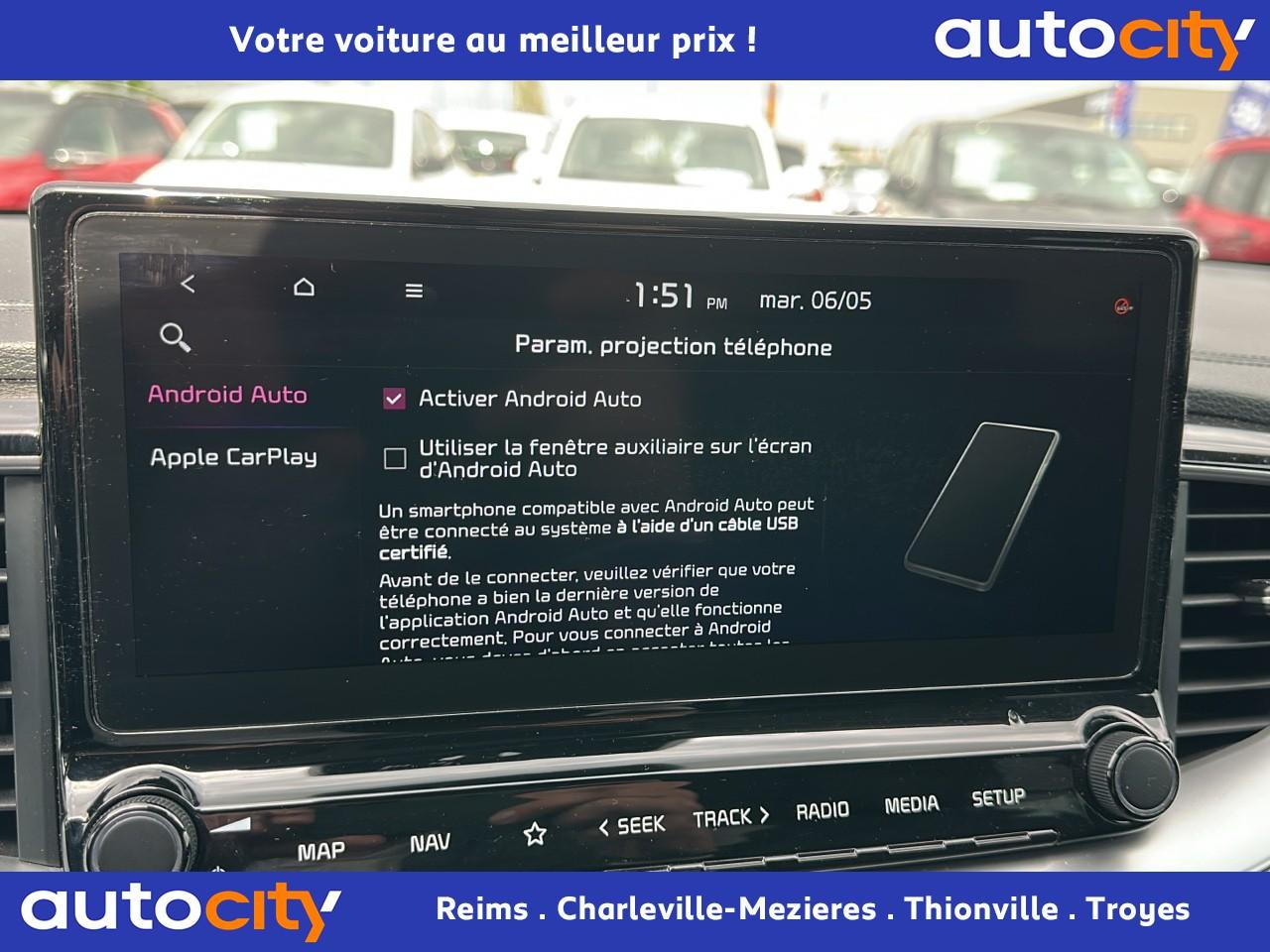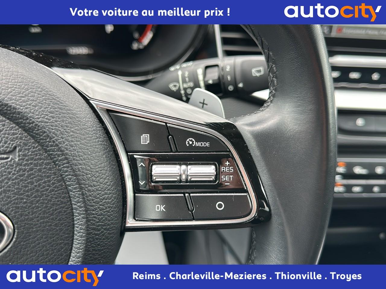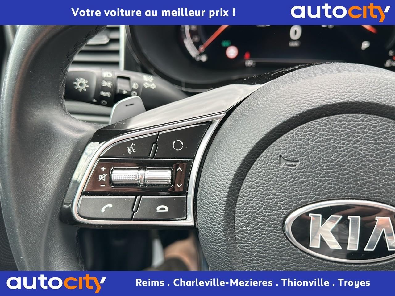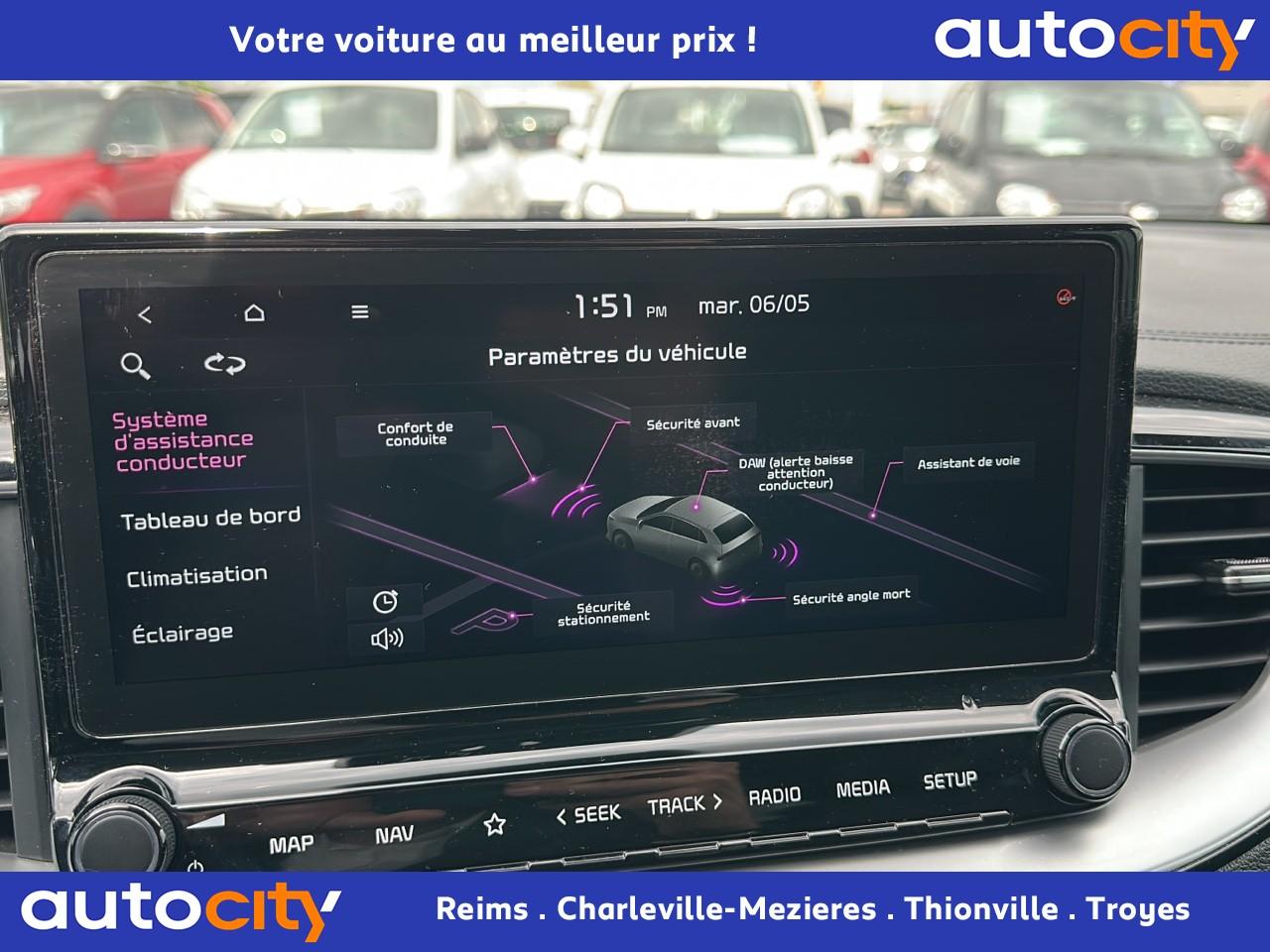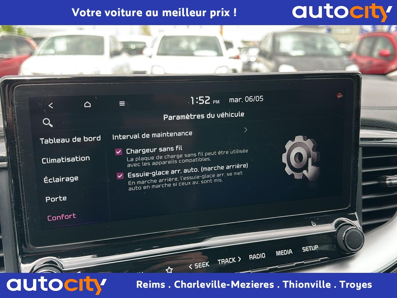 1 prise 12 volts dans le coffreABS avec répartiteur électronique de freinage (EBD)Accoudoir central arrière avec porte-gobelets intégrésAccoudoir central avant coulissant avec coffre de rangementAide au maintien dans la file (LKA)Airbags frontaux, latéraux et rideauxAlerte de franchissement Involontaire de ligneAllumage automatique des projecteursAppuie-tête arrière réglables en hauteurAppuie-têtes avant réglables en hauteur et en inclinaisonAssistance au démarrage en côteAssistance au freinage d'urgenceBacs de rangement dans les contre-portes avant et arrièreBanquette arrière rabattable 40/60Caméra de recul avec lignes de guidage activesCapteur de pluieClimatisation automatique bi-zoneCompartiment range-lunettesCompteur de tableau de bord rétro-éclairé “Supervision” avec écran couleur TFT LCD 4,2”Connexion audio USBContour de calandre aspect chrome et application noir chromé sur grille de calandreContrôle de pression des pneus ( TPMS )Contrôle électronique de la trajectoire (ESC)Désembuage automatique du pare-briseDirection à assistance électrique asservie à la vitesseEclairage dans le coffreEcran tactile couleur 10.25" avec compatibilité Android Auto et Apple CarPlayEntourage de vitres finition chrome satinéFeux arrière à LEDFeux de jour à LEDFrein de parking électriqueJantes alliage 18"Kit de dépannage en cas de crevaisonLève-vitres électriques avant et arrière, séquentiels et antipincementOrdinateur de bordOuverture et démarrage sans clé “Smart Key”Palettes de changement de rapports au volantPare-soleil avec miroir de courtoisie illuminé conducteur et passagerPédalier et repose-pied finition aluminiumPhares avant Full LEDPlancher de coffre à 2 niveauxPoches aumônières au dos des sièges avantPoignées de portes intérieures finition chromePrise 12 volts sur la console centrale avantPrise USB à charge accélérée sur la partie inférieure de la planche de bordProjecteurs antibrouillardRadars de stationnement arrièreRadio MP3, 6 haut-parleurs (dont 2 tweeters), avec commandes au volantRadio Numérique DABRails de toitRéglages lombaires électriques sur sièges AVRégulateur et limiteur de vitesseRétroviseur intérieur électrochromeRétroviseurs extérieurs couleur carrosserieRétroviseurs extérieurs électriques et dégivrantsRétroviseurs extérieurs rabattables électriquement avec répétiteur de clignotant LEDSélecteur de conduite DRIVE MODE (Normal ou Sport)Sellerie cuir de synthèse/tissu noirSiège conducteur réglable en hauteurSiège passager avant réglable en hauteurSpoiler arrière avec troisième feu stop à LEDSpots de lecture avant et arrièreSystème de chargement du smartphone par inductionSystème de freinage d’urgence autonome avec détection des voitures et des piétons (FCA)Système de gestion intelligente des feux de route (HBA)Système de navigation avec cartographie Europe et services connectés Kia Connect Live offerts pendant 7 ansSystème de surveillance de la vigilance du conducteurSystème de téléphonie mains-libres Bluetooth avec reconnaissance vocale et fonction streaming audio (selon compatibilité du téléphone)Système Isofix sur sièges arrière latérauxSystème Kia Connect - services télématiques offerts pendant 7 ansTémoin d'alerte pour niveau de liquide lave-glaceVerrouillage automatique des portes asservi à la vitesseVitres latérales et lunette arrière surteintéesVolant et pommeau de levier de vitesses gainés cuirVolant réglable en hauteur et en profondeur