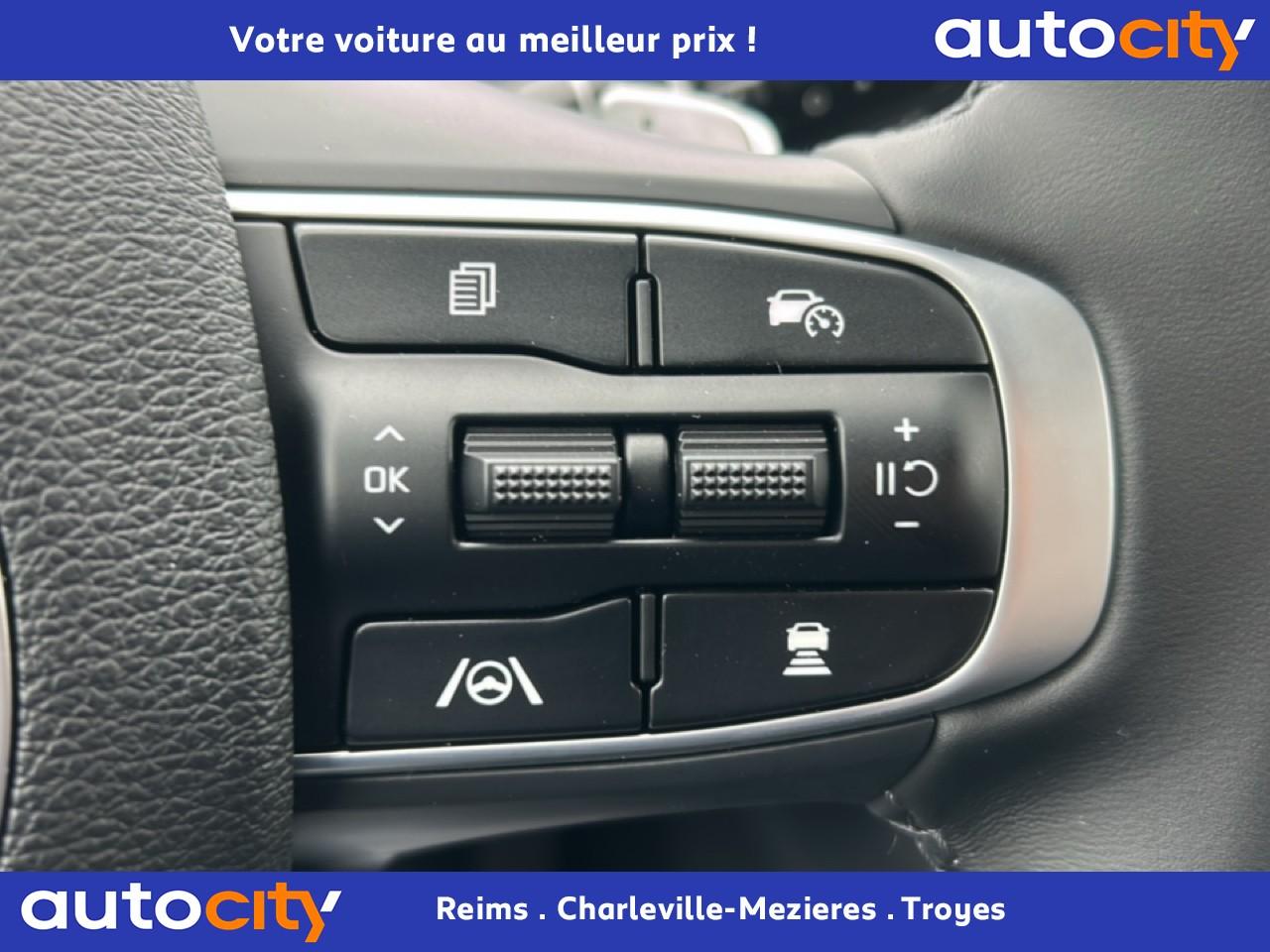 1 prise 12 volts dans le coffreABS avec répartiteur électronique de freinage (EBD)Accoudoir central arrière avec porte-gobelets intégrésAccoudoir central avant avec compartiment de rangementAffichage de la pression des pneumatiquesAide au maintien dans la file (LKA)Aide au stationnement avant/arrièreAirbag central entre les sièges avantAirbags frontaux, latéraux avant et rideauxAllumage automatique des projecteursAssistance active à la conduite dans les embouteillagesAssistance au démarrage en côteBanquette arrière rabattable 40/20/40 avec système de pliage à distance dans le coffreBouclier arrière noir laqué et protection du bouclier métalliséBouclier avant couleur carrosserie et protection du bouclier noirCaméra de recul avec lignes de guidage activesCapteur de mouvements antivol intérieurCapteur de pluieCintres intégrés au dos des sièges avantClimatisation automatique bi-zoneCombiné d’instrumentation avec écran « Supervision » 4,2’’Compartiments de rangement sous le plancher de coffreConnectique USB à charge accélérée au dos des sièges avantConsole avant avec porte-gobelets intégrésContrôle de la pression des pneumatiquesContrôle de vitesse en descenteContrôle électronique de la trajectoire (ESC)Crochets intégrés au dos des sièges avantDésembuage automatique du pare-briseDossier de sièges arrière inclinable avec poignée de réglage intégrée à l'assiseDrive ModeEcran tactile couleur 12.3", compatible Android Auto et Apple CarPlayEntourage des vitres chroméFeux arrière à LEDFeux de jour avant à LED aspect boomerangFrein de parking électrique avec fonction Auto-HoldGrille de calandre noir laquéInserts antibrouillard chrome satinéInserts métallisésJantes en alliage 17" AéroKit de dépannage en cas de crevaisonLève-vitres avant et arrière électriques, séquentiel et anti-pincement coté conducteurMoulures de bas de porte en noir laqué / chrome satinéPalettes de changement de rapports au volantPare-soleil avec miroir de courtoisie illuminé conducteur et passagerPoches aumônières au dos des sièges avantPoignées de portes couleur carrosseriePort USB avantPrise 12 volts sur la partie inférieure de la planche de bordPrise USB à charge accélérée sur la partie inférieure de la planche de bordProjecteurs antibrouillard avant à LEDProjecteurs avant LEDRadio Numérique DABRails de toitReconnaissance des panneaux de limitation avec régulation de vitesse (ISLA)Réglages lombaires électrique côté conducteurRégulateur et limiteur de vitesseRétroviseur intérieur électrochromeRétroviseurs extérieurs électriques et dégivrantsRétroviseurs extérieurs rabattables électriquement avec répétiteur de clignotant LEDSellerie Tissu noirSiège conducteur réglable en hauteurSurlignage des passages de roue en finition noir laquéSystème audio avec 6 haut-parleurs dont 2 tweetersSystème d'ouverture et de démarrage sans clé "Smart Key"Système de fixation ISOFIX aux places arrière latéralesSystème de freinage d'urgence autonome avec détection des voitures, piétons et cyclistes (FCA)Système de navigation avec cartographie Europe et services connectés Kia Live offerts pendant 7 ansSystème de surveillance de la vigilance du conducteurSystème de téléphonie mains-libres Bluetooth avec reconnaissance vocale, mode personnalisé et fonction streaming audioSystème Kia Connect - services télématiques offerts pendant 7 ansTémoin de niveau de lave-glaceTémoins de non-bouclage des ceintures avant et arrièreVerrouillage automatique des portes asservie à la vitesseVolant gainé cuirVolant réglable en hauteur et en profondeur