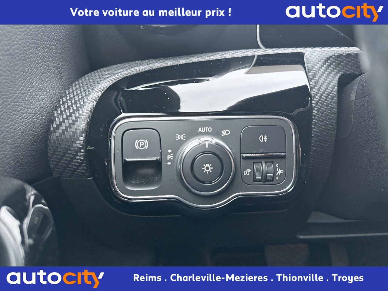 Adaptateur de vitesseAide au démarrage en côteAllumage automatique des projecteursAntiblocage ABSAvertisseur d'angles mortsAvertisseur de franchissement de ligne actifAvertisseur de perte de pression des pneusBaguette de ligne de ceinture chroméeCapteur de pluieCiel de pavillon en tissu noirClimatisation THERMATIC à réglage manuel de la température et de la distribution d'airDYNAMIC SELECT controller : 4 programmes de conduiteEssieu arrière à bras combinésFonctionnalités élargies MBUXFrein de stationnement électriqueFreinage d'urgence assisté actif : système d'avertissement des risques de collision et de pré-freinage incluant l'assistance au freinage adaptifGarnitures intérieures en tissu /similicuir ARTICOGrille de calandre diamant à une lamelleIndicateur de ceinture de sécuritéJantes alliage 40,6 cm (16") à 5 doubles branches argent vanadium avec pneus 205/60 R16Kit anti-crevaison TIREFITMBUX système multimédiaOrdinateur de bordPack AdvantagePack visibilitéPavé tactile TOUCHPAD avec sélecteurPeinture métalliséePré-équipement pour radio numériqueProjecteurs hautes performances à technologie LEDRégulateur et limiteur de vitesseRétroviseurs extérieurs électriques intégrant le rappel de clignotantSièges avant confortSystème d'Appel d'Urgence Mercedes-BenzSystème de commande vocale et assistant personnel activable grâce à "Hey Mercedes"Tapis de sol en veloursTrain de roulement confort avec châssis surbaisséVolant sport en cuir à 3 branches avec boutons tactiles Touch-Control