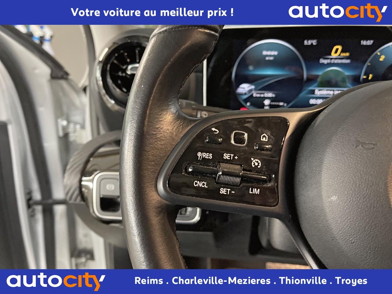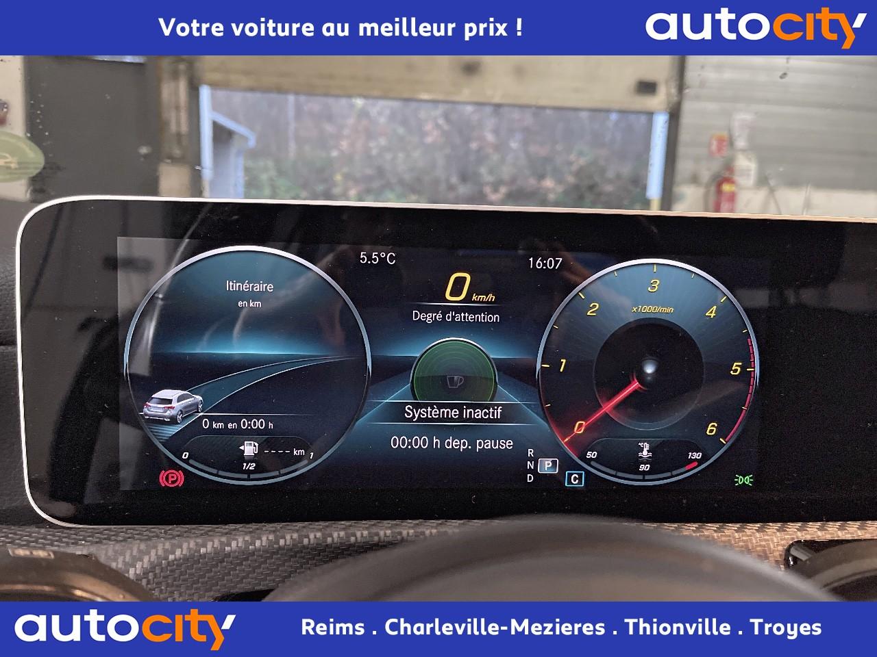 ABS (antiblocage de roues), ASR (antipatinage) et BAS (freinage d'urgence assisté)Accoudoir central avantADAPTIVE BRAKE avec fonction HOLD et aide au démarrage en côte, préremplissage et séchage des freins par freinage en cas de pluieAffichage du non bouclage des ceintures de sécurité aux places arrièreAirbag frontaux conducteur et passagerAirbag genoux conducteurAirbags latéraux (thorax / bassin) avantAirbags rideauxAttention Assist : système de détection de somnolenceAvertisseur d'angles mortsAvertisseur de franchissement de ligne actifBaguette de ligne de ceinture chroméeBaguettes de seuil avec monogramme "Mercedes-Benz"Bande colorée sur la planche de bord avec liseré dans le coloris contrastéBoîte à gants éclairéeBoîte de vitesses à double embrayage 7G-DCTBuses de ventilation noires avec cerclage chroméCalandre diamant avec pastilles noires et lamelle avec insert chroméCaméra de recul avec lignes de guidageCapot moteur actif pour la protection des piétonsCiel de pavillon en tissu noirClimatisation automatique THERMATIC à 1 zone avec filtre à charbons actifs contre la poussière, la suie et le pollenConnexion Bluetooth pour téléphone portableConsole centrale Noir brillantDésactivation automatique de l’airbag passager avantDossier AR rabattable 40/20/40Double porte-gobelet dans la console centraleDYNAMIC SELECT avec les programmes de conduite « ECO », « Confort », « Sport » et « Individual »Essieu arrière à bras combinésFeux de stop adaptatifsFilets à bagages au dossier des sièges AVFrein de stationnement électriqueFreinage d'urgence assisté actifGarnitures intérieures en tissu /similicuir ARTICOI-Size et Top Tether pour les sièges arrière extérieursInserts de couleur dans les buses de ventilationInserts décoratifs noirInstrumentation digitale avec écran central 7" avec technologie tactileInterface USB-C dans le vide-poches et dans la console centrale arrièreJantes alliage 43,2 cm (17'') à 5 doubles branches finition noir mat/argentKEYLESS-GO : système de démarrage sans cléKit anti-crevaison TIREFITModule de communication LTE pour l'utilisation des services Mercedes me connectPack AdvantagePack visibilitéPavé tactile TouchpadPeinture métalliséePré-équipement pour l'autopartage via l'application Mercedes me Car SharingPré-équipement pour Live Traffic Information (service gratuit pendant 3 ans après activation Mercedes me)Pré-équipement pour réglages et suivi du véhicule à distance (service gratuit pendant 3 ans après activation Mercedes me)Prise 12V dans le vide poche de la console centraleProjecteurs hautes performances à technologie LEDRainsensor (Capteur de pluie et de luminosité)Réception radio numérique (DAB)Reconnaissance des panneaux de limitation de vitesseSièges AV confortsSièges avant avec réglages de la hauteur et de l'approche du siège, de l'inclinaison du dossier, de l'inclinaison de l'assise, de la profondeur de l'assiseSystème d'Appel d'Urgence Mercedes-BenzSystème de commande vocale et assistant personnel activable grâce à "Hey Mercedes"Système de contrôle de la pression des pneusSystème de stabilisation en cas de vent latéralSystème multimédia MBUX avec fonctionnalités élargies (profils personnalisés, fonctions prédictives, borne Wifi, webradio)Tapis de sol en veloursTEMPOMAT (régulateur de vitesse) et SPEEDTRONIC (limiteur de vitesse)Train de roulement confort avec châssis surbaisséVolant sport multifonction en cuir avec boutons tactiles Touch-Control et surpiqûres noires