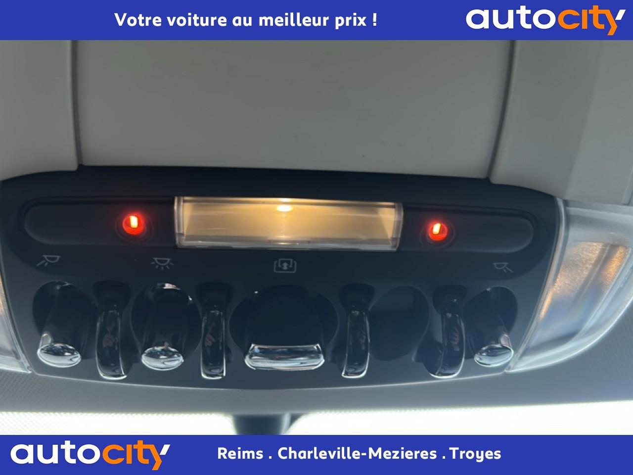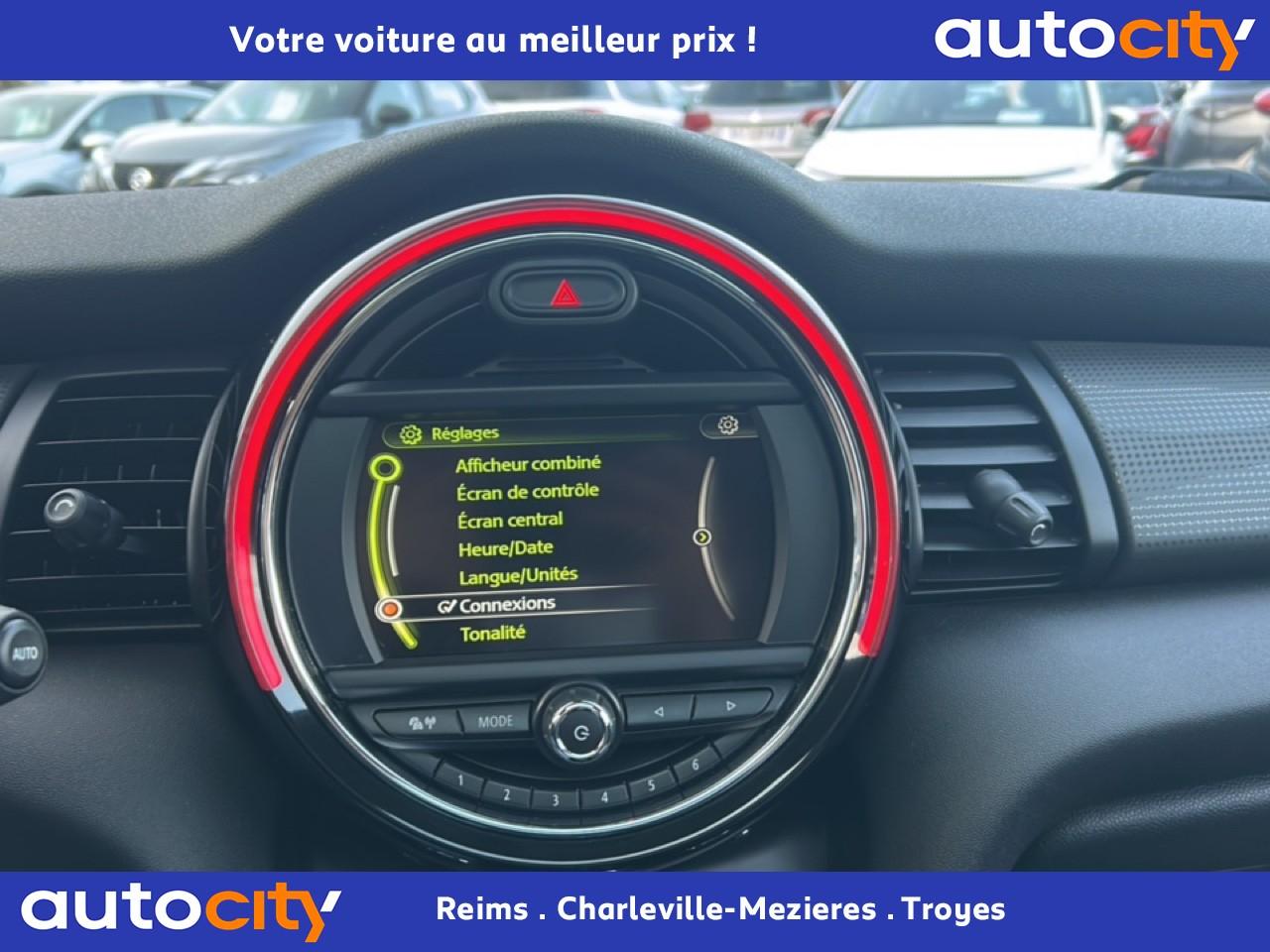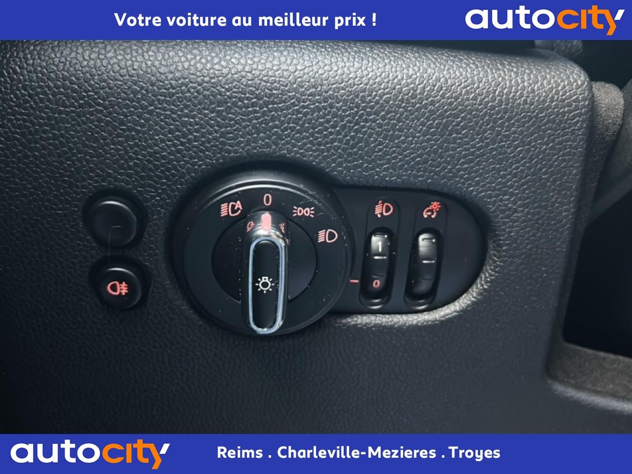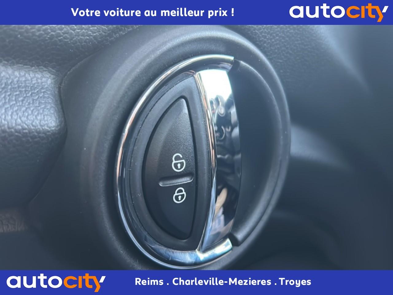 2 clés radiocommandées4 appuie-tête réglables en hauteur6 Airbags : 2 frontaux, 2 latéraux et 2 rideaux gonflables latérauxABS avec aide au freinage d'urgenceAccoudoir central avant inclinable en 4 positionsAffichage en temps réel les besoins de maintenance du véhiculeAutoradio MINI AM/FM avec prises AUX-IN et port USBAutoradio MINI Visual Boost avec écran 6,5”Baguettes de seuil de porte avec inscription de la motorisation façon métalliqueBanquette arrière : trois places, rabattable 40/60Becquet arrière de toitCalandre au contour chromé avec lamelles “Piano Black”Cerclage des buses d'aération chroméesCiel de pavillon teinte Satellite GreyClignotants blancsClimatisation automatique bi-zoneColour Line Carbon BlackContrôle Dynamique de la Stabilité DSC, y compris assistant de démarrage en côteDécoration spécifique ShoreditchDétecteur de pluie et allumage automatique des projecteursEclairage d'accompagnement "Follow me Home"Ecrous antivolFixation ISOFIX à l'arrièreFonction Start & Stop et démarrage sans cléIndicateur de crevaisonJantes en alliage 16'' design "Victory Spoke" noires 6,5 J x 16 / pneumatiques 195/55 R 16Ordinateur de bordPare-chocs avant et arrière couleur carrosseriePoignée de hayon “Piano Black”Poignées de portes chroméesPoignées de portes intérieures chroméesPorte-boissons à l'avant (x2)Prise 12V sous la console centraleProjecteurs avant et feux arrière au contour chroméRétroviseurs extérieurs à réglage électriqueRétroviseurs extérieurs couleur carrosserieRétroviseurs extérieurs rabattables électriquementSiège conducteur réglable en hauteurSièges avant sport avec Sellerie tissu/simili cuir "Black Pearl" Carbon BlackSortie d'échappement simple, droite et chroméeSystème de capot actif (DHS)Système de navigation MINI avec écran 6,5''Système mains-libres Bluetooth avec Snap-in - niveau 2Teinte d'habitacle Carbon BlackToit couleur carrosserieToit ouvrant panoramique en verreTouches multifonctions et régulateur de vitesse avec fonction freinageVolant sport 3 branches gainé de cuir