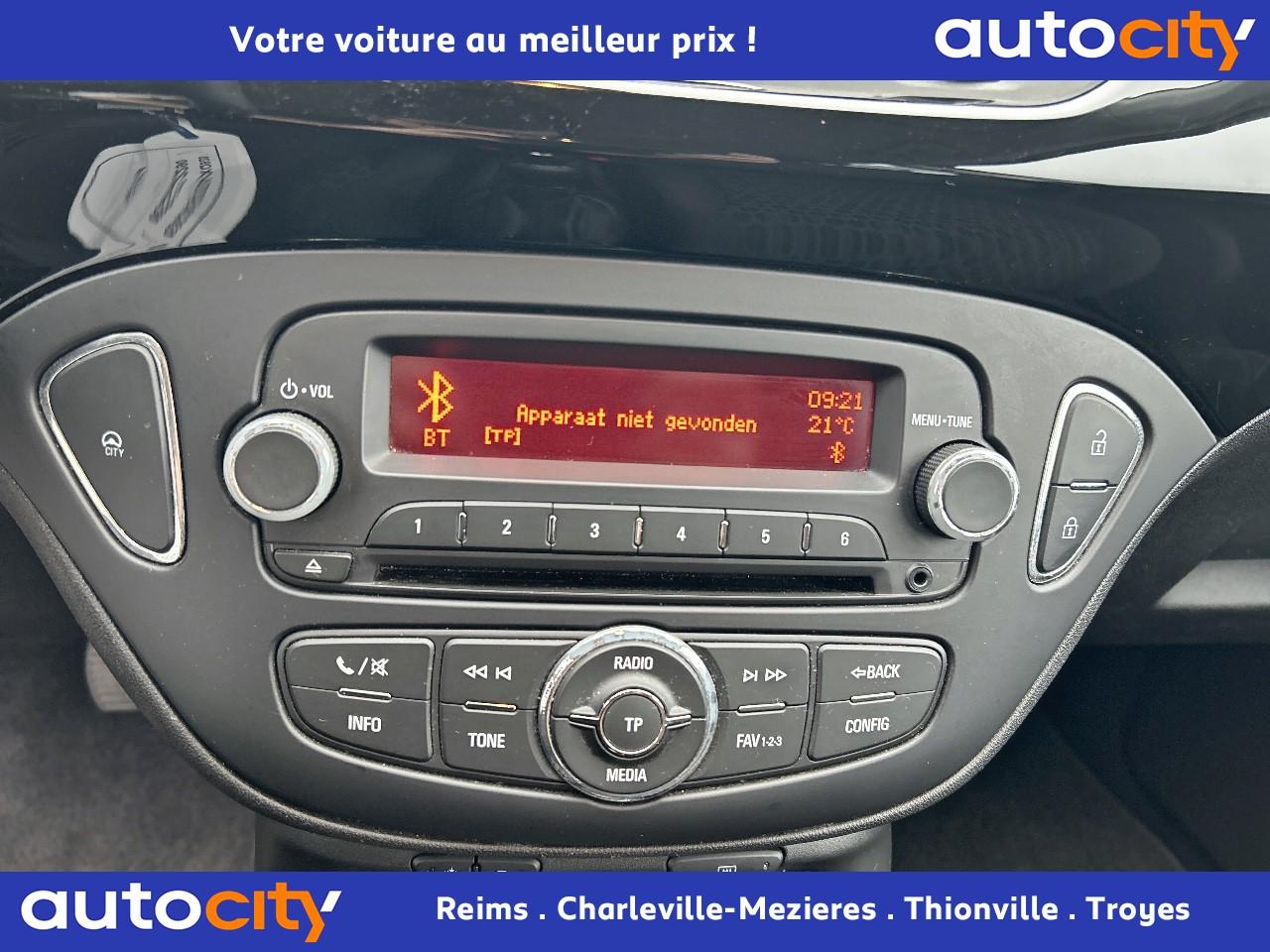 2 appuie-tête avant réglable en hauteur2 appuis-tête AR réglables en hauteurAide au démarrage en côte (HSA)Airbag Opel passager déconnectable par interrupteur depuis la console centrale avec témoin sur tableau de bordAirbags conducteur et passagerAirbags latéraux sur sièges avantAirbags rideauxAlarme sonore d'oubli d'extinction des feuxAllumage automatique des feux de détresse en cas de déclenchement des airbags et / ou des prétensionneursAllumage automatique des feux stop en cas de freinage d'urgenceAssistance au freinage d'urgenceBouton d'activation / désactivation du mode CITY ("manoeuvre facile")Cache-bagages rigide avec glissière de rangement au dos de la banquette arrièreCalandre chroméeCeintures de sécurité avant : 3 points avec prétensionneur et limiteur d'effortClimatisation manuelle avec système de recirculation d'air et filtre anti-pollenConsole centrale avec porte-gobeletsContrôle électronique de trajectoire ESP Plus avec Contrôle de freinage en courbe (CBC), Aide au freinage d'urgence (HBA), Contrôle de traction électronique (TC Plus), Contrôle de stabilité en ligne droite (SLSC) et en courbe (CSC), RépartiteuDécors intérieurs Laque PianoDirection électrique à assistance variable (EPS)Dossiers banquette AR rabattablesExtinction différée des phares "Porte-à-porte"Jantes acier 14" avec enjoliveursKit anti-crevaisonOrdinateur de bordPare-soleil avec miroir de courtoisie conducteurPeinture laquéePlafonnier avant avec 2 spots de lectureRadio CD 3.0 Bluetooth, prises USB et aux-in, avec commandes au volant et 6 haut-parleursRappel de bouclage de ceinture intelligent à l'avant et à l'arrièreRégulateur et limiteur de vitesseRétroviseurs extérieurs électriques couleur carrosserieSellerie tissu Spot / Shimmer BlackSiège conducteur réglable en hauteurSièges latéraux arrière avec fixations ISOFIXSystème "entrée facile" avec mémorisation de la position des sièges conducteur et passagerSystème antiblocage des roues (ABS électronique)Système d'alerte de sous gonflage des pneumatiquesSystème de pédalier rétractable en cas de choc frontalVerrouillage centralisé (portes, coffre et trappe à carburant) à télécommandeVitres électriques avant à impulsion et fonction anti-pincementVolant multifonctions gainé cuirVolant réglable en hauteur et en profondeur