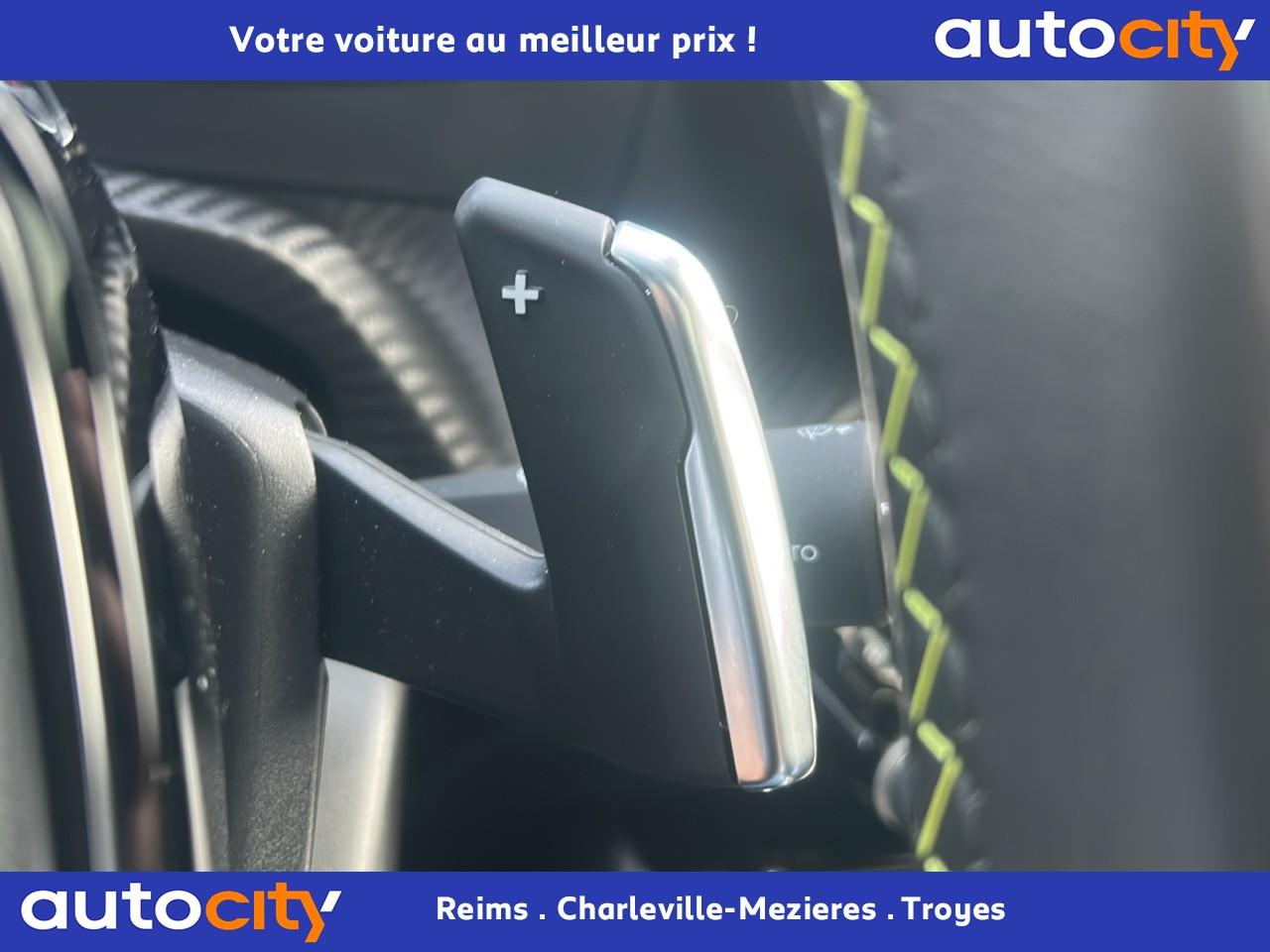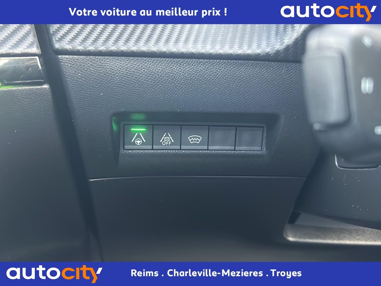 2 prises USB (Recharge type A) sur console haute pour passagers arrière4 poignées de maintien (2 à l'avant et 2 à l'arrière)6 haut-parleurs (2 tweeters et 2 woofers à l'avant et 2 haut-parleurs à l'arrière)ABS (Antiblocage de roues)Accès et démarrage mains libres Proximity avec 2 télécommandes 3 boutonsAFU (Assistance au freinage d'urgence), REF (Répartiteur Electronique de Freinage)Aide graphique et sonore au stationnement arrièreAide graphique et sonore au stationnement avantAir conditionné automatique Mono-zoneAirbags frontaux auto-adaptatifs, latéraux avant (thorax et abdominaux), rideaux avantAllumage automatique des projecteursAppuie-tête avant et arrière (aux 3 places) réglables en hauteurAssistance au démarrage en côte (Hill Assist)Avertisseur de temps de conduiteBanquette arrière rabattable 1/3-2/3Barres de toit longitudinales noires brillantesBecquet arrière noir brillantBoitiers de rétroviseurs extérieurs noir brillantCalandre haut de gamme avec grille supérieure noire vernie et marquage vertical Dark Chrome, grille inférieure avec décor Métallure, enjoliveur supérieur Noir BrillantCanule d'échappement chroméeCommandes d'ouverture extérieure de portes couleur caisseCommandes d'ouverture intérieure de portes chroméesConsole haute avec accoudoir intégréContrôle de stabilité de la remorque (TSM)Contrôle dynamique de stabilité CDS avec antipatinage électronique ASRContrôle électronique de stabilité (ESC)Détecteur de sous-gonflage indirectDirection assistée électriqueEclairage coffreEclairage d'accueil et d'accompagnementEclairage intérieur à LED : plafonniers tactiles avant (1 lampe et 2 liseuses) et arrière (2 liseuses), miroir de courtoisie dans pare-soleil, cave à piedsEclairage polyambient 8 couleursEnjoliveurs de custode Noir Brillant avec sérigraphieEnjoliveurs de seuil de coffre MétallureEssuie-glace à déclenchement automatiqueFeux arrière 3 griffes à LEDFeux diurnes à LED sous projecteursFilets aumônières au dos des sièges avantFixations suivant norme ISOFIX et Top Tether avec étiquette de localisation sur siège passager avantFixations suivant norme ISOFIX et Top Tether avec étiquettes de localisation aux places latérales arrièreFonction Bluetooth et Mirror Screen (Apple CarPlay/ Android Auto)Frein de stationnement électrique avec aide au démarrage en pente et serrage automatiqueGestion automatique des feux de croisement / feux de routeHabitacle et ciel de pavillon noirJantes alliage 18'' BUND diamantées bi-tons Noir Onyx et vernis brillant, cabochons et vis Noir Onyx, inserts Gris Storm matKatana Noir Mat avec insert Noir Brillant et marquage GT brillantKit de dépannage pneumatique avec conditionnement rigideLécheurs de vitres latérales noir brillantLève-vitres électriques avant et arrière, séquentiels et antipincementNavigation 3D connectée avec reconnaissance vocale, écran tactile capacitif 10" HD, 2 prises USB console avant (une DATA Type A et une de recharge type C)Pack Drive Assist PlusPack Safety PlusPanneaux de porte avant avec poignée mousséePare-brise teinté acoustique sérigraphié bi-couchesPassages de roues Noir MatPédalier sport en aluminiumPeinture métallisée Orange FusionPEUGEOT Connect SOS & Assistance et TéléservicesPeugeot i-Cockpit 3D avec combiné tête haute numérique 3DPlanche de bord slush surpiquée et panneaux de portes avant avec décors aspect carbone et éclairage polyambiant 8 couleursPlancher de coffre modulable 2 positionsProjecteurs antibrouillard LED avec fonction corneringProjecteurs Peugeot Full LED Technology avec signature 3 griffes, indicateurs de direction à LEDProtections latérales de portes Noir grainées avec inserts MétallureRadio Numérique DABRétroviseur intérieur photosensible framelessRétroviseurs extérieurs dégivrants à réglage et rabattement électriques, éclairage de seuilSélecteur de mode de conduiteSellerie Alcantara mistral / TEP, surpiqûres Vert AdamiteSiège conducteur avec réglage mécanique de hauteurSiège passager avant réglable en hauteur manuellementSurtapis avant et arrière noirs avec surpiqûres Vert AdamiteSystème de surveillance d'angle mortToit Black DiamondVerrouillage automatique des ouvrants en roulantVitres latérales arrière et lunette arrière chauffante temporisée surteintéesVolant réglable en hauteur et en profondeur