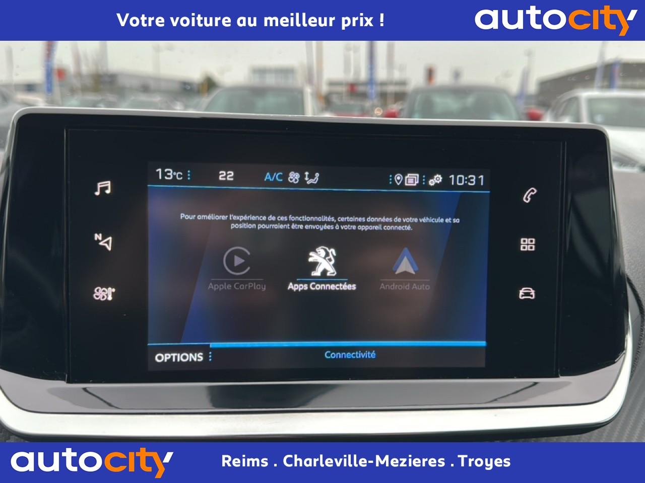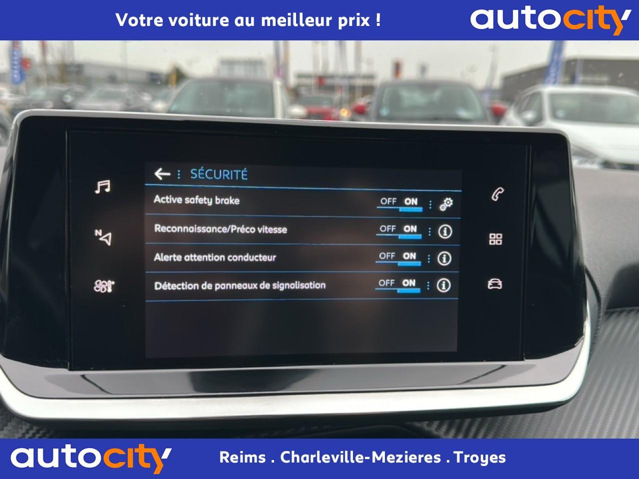 2 prises USB (Recharge type A) sur console basse pour passagers arrière3 poignées de maintien (1 à l'avant et 2 à l'arrière)6 haut-parleurs (2 tweeters et 2 woofers à l'avant et 2 larges bandes à l'arrière)ABS (Antiblocage de roues)AFU (Assistance au freinage d'urgence), REF (Répartiteur Electronique de Freinage)Aide graphique et sonore au stationnement arrièreAirbags frontaux, latéraux AV et rideauxAlarme de non bouclage des ceintures de sécurité avantAlerte de non-bouclage des ceintures à l'arrièreAllumage automatique des projecteursAppuie-tête avant et arrière (aux 3 places) réglables en hauteurAvertisseur de temps de conduiteBandeau entre feux arrière noir brillantBanquette arrière rabattable 1/3-2/3Boitiers de rétroviseurs extérieurs noir brillantCalandre avec grille supérieure avec marquage chrome brillant et enjoliveur supérieur noir grainéCeinture de sécurité arrière centrale 3 pointsCeintures de sécurité arrière latérales, avec enrouleurs pyrotechniques et limiteurs d'effortCeintures de sécurité avant avec enrouleurs pyrotechniques et limiteurs d'effortClimatisation automatique mono-zoneConsole haute avec accoudoir intégréContrôle de stabilité de la remorque (TSM)Contrôle Dynamique de stabilité (DSC)Détecteur de sous-gonflage indirectDirection assistée électriqueEclairage de coffreEclairage intérieur à ampoules : plafonnier avant à 3 spots (1 lampe et 2 liseuses)Enjoliveur de pied milieu noir brillant avec sérigraphies sur l’avantEssuie-glace à déclenchement automatiqueFeux arrière LEDFixations ISOFIX Top Tether pour les places latérales arrièreFonction 'Mirror Screen' (Apple Carplay / Android Auto)Fonction BluetoothFrein de stationnement électrique avec aide au démarrage en pente et serrage automatiqueHabitacle et ciel de pavillon gris clairJantes alliage 16'' SOHO diamantées peintes Gris StormJupes de pare-chocs arrière inférieure Noir grainée et supérieure Noir brillantKit de dépannage pneumatiqueLève-vitres électriques arrière à fonctions séquentielle et anti-pincementLève-vitres électriques avant à commande séquentielle et anti-pincementPack SafetyPare-brise teinté et acoustiquePeinture métallisée Jaune FaroPeugeot i-Cockpit avec combiné tête haute analogique et matrice couleur 3"5Planche de bord slush et panneaux de portes avant avec décors aspect carboneProjecteurs 'Peugeot LED Technology' avec feux diurnes à LED sous projecteursRadio avec écran tactile 7" couleur capacitif, Bluetooth, 2 prises USB console avant (une DATA Type A et une de recharge type C)Radio Numérique DABRégulateur et limiteur de vitesseRétroviseur intérieur électrochromeRétroviseurs extérieurs réglables, rabattables électriquement et dégivrantsSélecteur de mode de conduiteSellerie Tri matière Tissu / TEP COSY , surpiqûres Vert MintSiège conducteur avec réglage manuel en hauteurSystème de contrôle de trajectoire (ESC) avec fonction antipatinage (ASR)Télécommande 3 boutons + clé standardVerrouillage automatique de tous les ouvrants en roulantVitres latérales arrière et lunette arrière chauffante temporisée surteintéesVolant compact croute de cuir, Lion chromé et commandes multimédia sur volantVolant réglable en hauteur et en profondeur