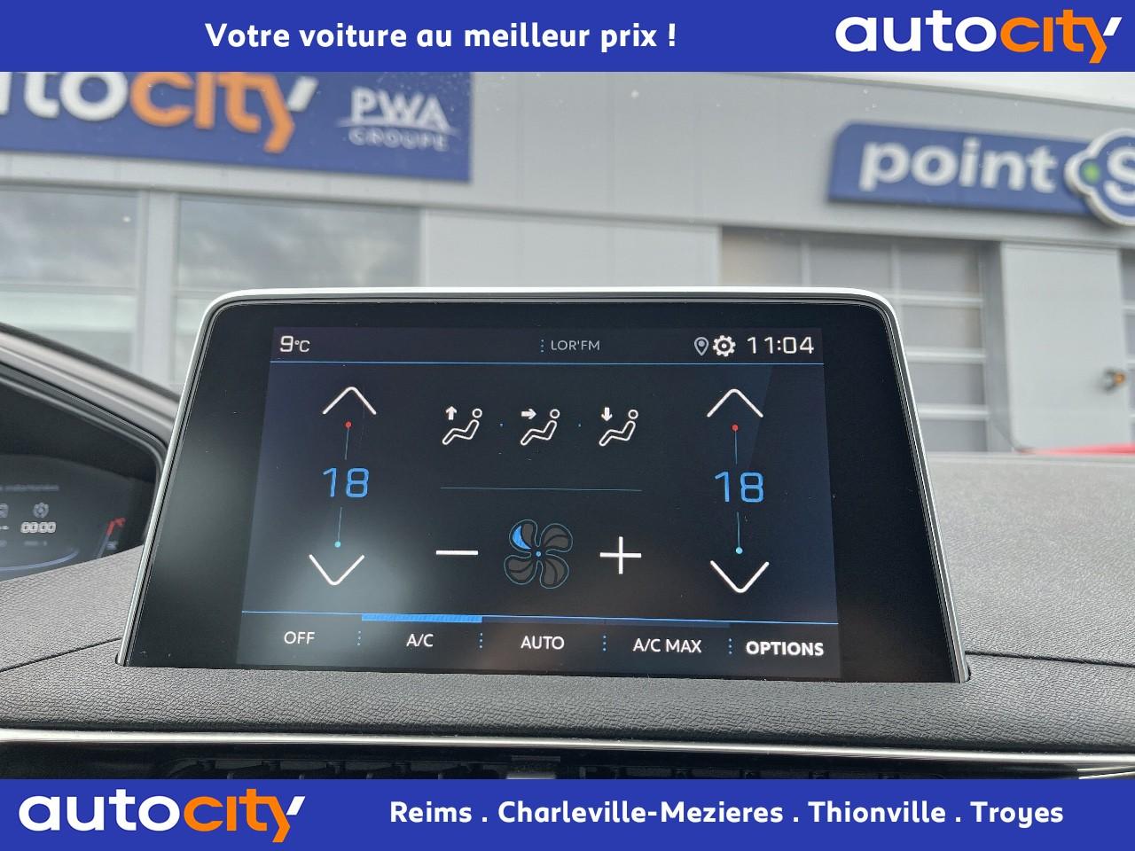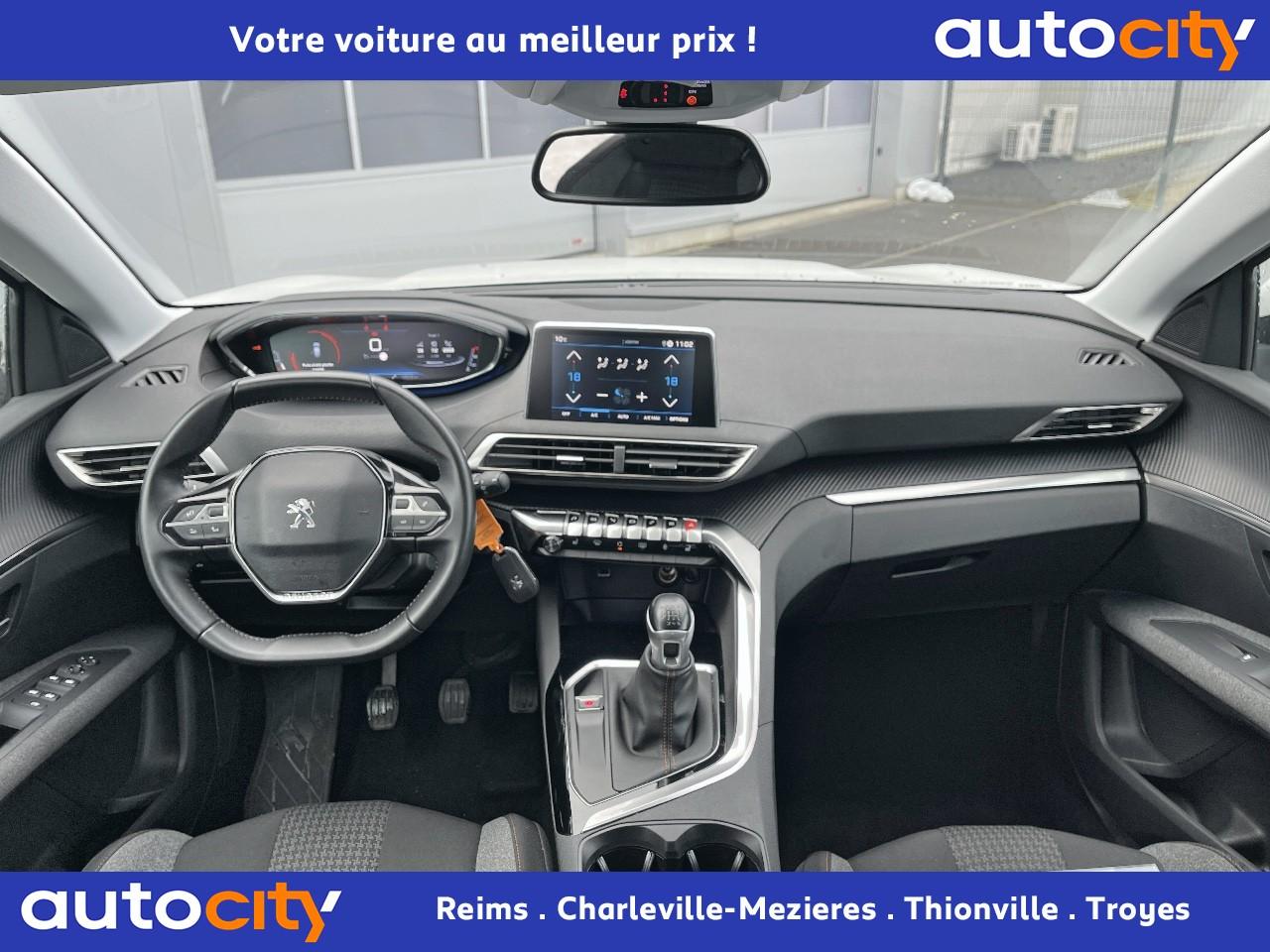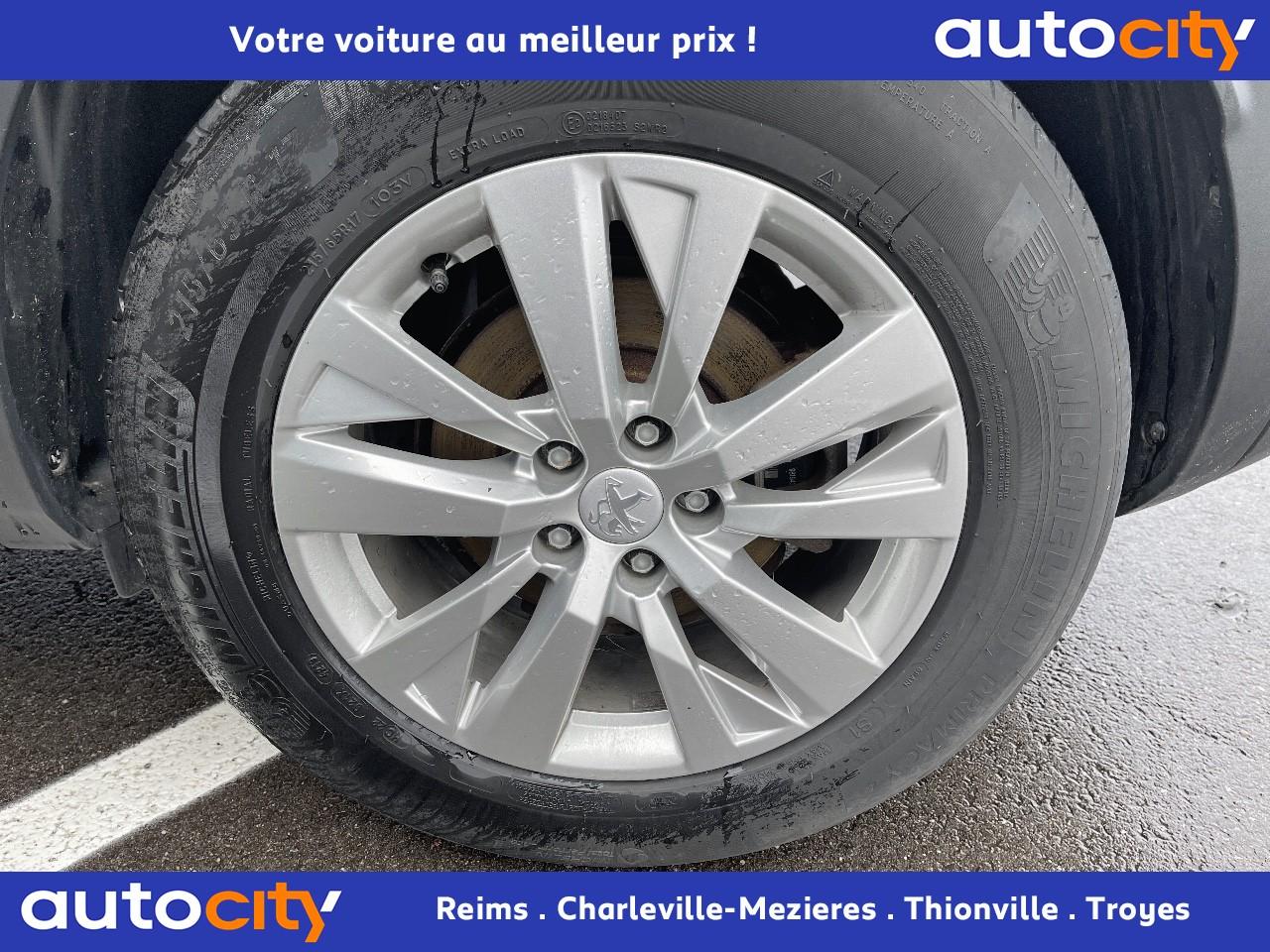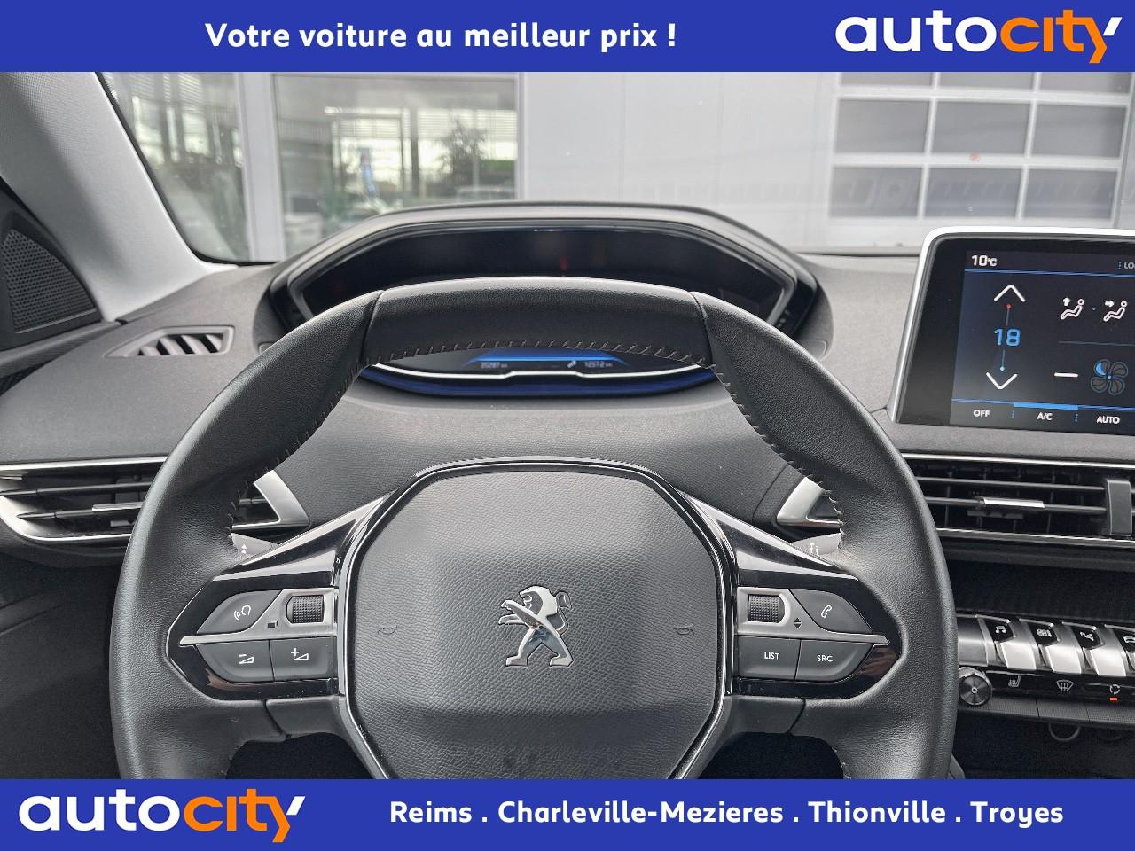 ABS avec répartiteur électronique de freinage (REF) et aide au freinage d'urgence (AFU)Accoudoir central avant à ouverture papillon, avec compartiment de rangement éclairé et réfrigérableAide graphique et sonore au stationnement arrièreAir conditionné automatique bi-zone avec aérateurs aux places arrièreAirbags frontaux conducteur et passager adaptatifsAirbags latéraux conducteur et passager avantAirbags rideaux de tête aux places avant et arrièreAlerte de franchissement Involontaire de ligneAlerte de temps de conduiteAppuis-tête à sécurité optimisée réglables en hauteur sur les sièges conducteur et passager avant ainsi que sur les places latérales arrièresBandeau de pare-choc arrière chroméBanquette rabattable 1/3 - 2/3 (modularité 'Magic Flat' et commandes dans le coffre) avec accoudoir et trappe à skisBoîte à gants floquée et éclairéeBoîtiers de rétroviseurs extérieurs couleur carrosserieCalandre avec jonc périphérique et facettes chromésCeintures avant à 3 points, réglables en hauteur, avec prétensionneurs et limiteurs d'effortCeintures de sécurité arrière trois points à enrouleur (x3), avec prétensionneurs et limiteurs d'effort aux places latéralesCommande de verrouillage à distance (deux plips)Contrôle dynamique de stabilité CDS avec antipatinage électronique ASRDécors de planche de bord et panneaux de portes aspect carboneDécors intérieurs (baguettes de planche de bord et panneaux de portes, enjoliveur de console) chromésDétection de sous-gonflage indirecteDirection assistée électrique, avec colonne de direction réglable en hauteur et profondeur (mécanique)Enjoliveurs d'arc de pavillon en inoxEssuie-vitre arrière à activation automatique au passage en marche arrièreEssuie-vitre avant avec système de lavage 'Magic Wash'Filets aumônières au dos des sièges avantFixations pour trois sièges enfants suivant norme ISOFIX aux places passager avant et latérales arrièreFrein de stationnement électrique avec aide au démarrage en penteIndicateur de rapportInserts d'ailes avant chromésJantes alliage 17" 'Chicago'Kit de dépannage pneumatiqueLève-vitres électriques avant et arrière, séquentiels et antipincementLunette arrière chauffante avec antennes sérigraphiéesPack VisibilitéPassages de roues rapportés noirsPeugeot i-Cockpit combiné tête haute numérique reconfigurable, écran tactile capacitif 8" et volant compact multi-fonctionsPlafonnier avant avec spots de lecture (x2) et plafonnier arrière à extinction temporiséePlancher de coffre deux positionsPrise 12V (x3) : à l'avant, à l'arrière et dans le coffrePrise USBProjecteurs antibrouillard halogènes avec enjoliveurs chromésProjecteurs halogènes à l’avant avec feux diurnes à LED intégrés dans le bloc optiqueRadio 6 HP, bi-tuner compatible MP3 et connectivité Bluetooth (audio streaming, kit mains libres), avec commandes au volant, écran tactile capacitif 8"Radio numérique terrestreReconnaissance des panneaux de vitesse et préconisationRégulateur et limiteur de vitesseRétroviseurs extérieur électriques et dégivrantsSécurité enfant électrique des vitres arrièreSellerie Tissu 'Meco'Siège conducteur réglage en hauteurSiège passager à réglage manuel en hauteurTeinte de caisse Gris HurricaneToggle Switches' chromés (touches 'piano' d'activation des fonctions de l'écran tactile)Verrouillage automatique de tous les ouvrants en roulantVolant croûte de cuir