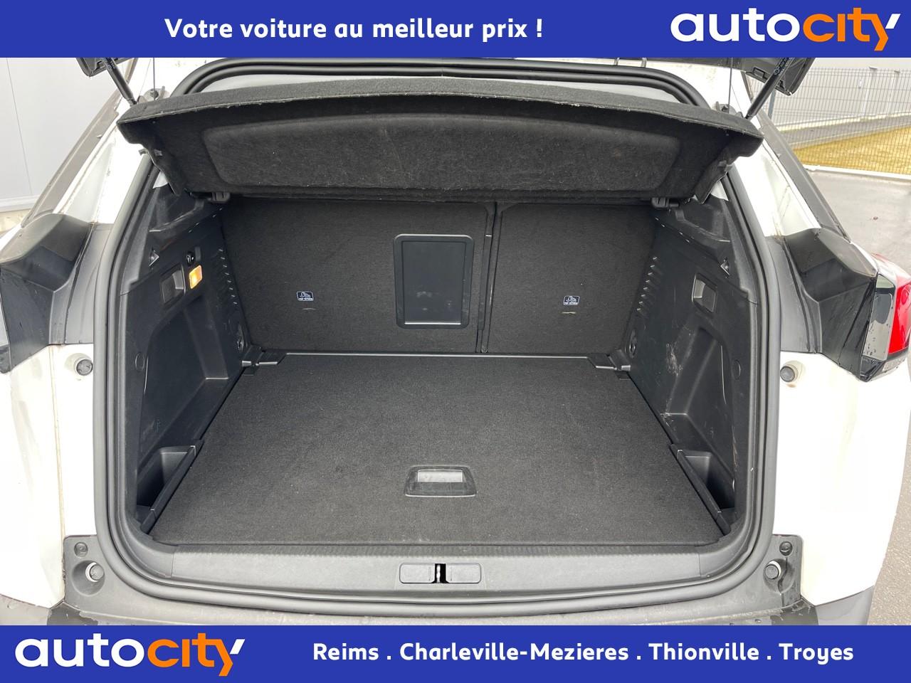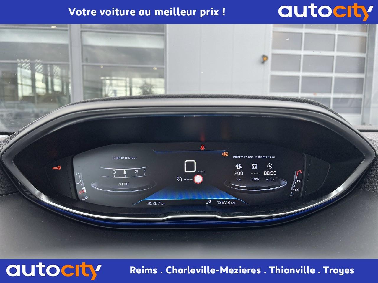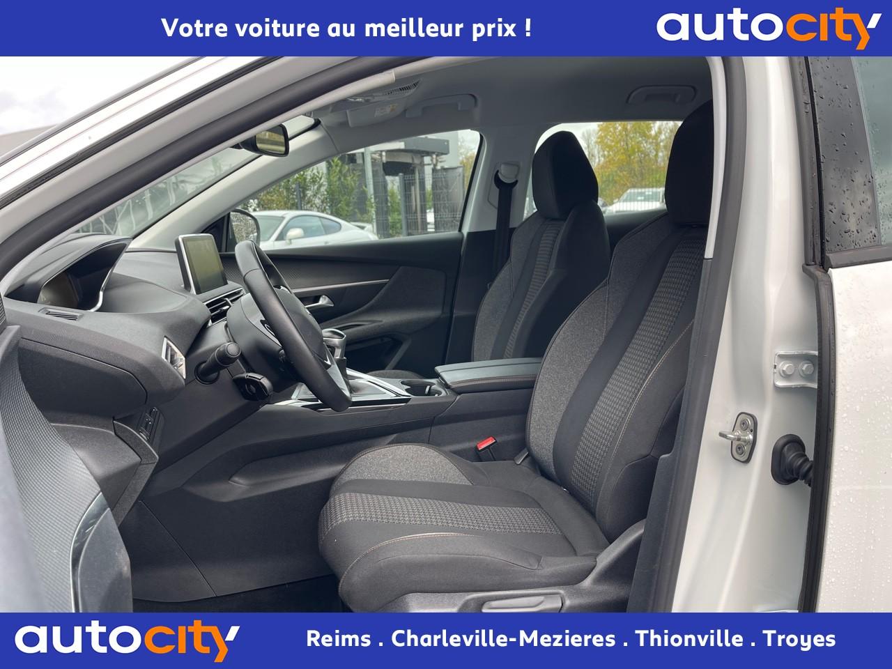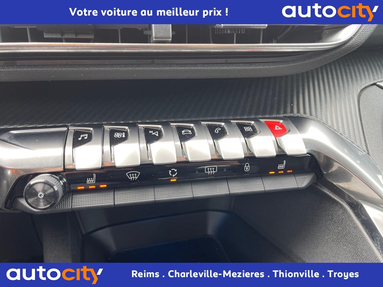 ABS avec répartiteur électronique de freinage (REF) et aide au freinage d'urgence (AFU)Accoudoir central avant à ouverture papillon, avec compartiment de rangement éclairé et réfrigérableAide graphique et sonore au stationnement arrièreAir conditionné automatique bi-zone avec aérateurs aux places arrièreAirbags frontaux conducteur et passager adaptatifsAirbags latéraux conducteur et passager avantAirbags rideaux de tête aux places avant et arrièreAlerte de franchissement Involontaire de ligneAlerte de temps de conduiteAppuis-tête à sécurité optimisée réglables en hauteur sur les sièges conducteur et passager avant ainsi que sur les places latérales arrièresBandeau de pare-choc arrière chroméBanquette rabattable 1/3 - 2/3 (modularité 'Magic Flat' et commandes dans le coffre) avec accoudoir et trappe à skisBoîte à gants floquée et éclairéeBoîtiers de rétroviseurs extérieurs couleur carrosserieCalandre avec jonc périphérique et facettes chromésCeintures avant à 3 points, réglables en hauteur, avec prétensionneurs et limiteurs d'effortCeintures de sécurité arrière trois points à enrouleur (x3), avec prétensionneurs et limiteurs d'effort aux places latéralesCommande de verrouillage à distance (deux plips)Contrôle dynamique de stabilité CDS avec antipatinage électronique ASRDécors de planche de bord et panneaux de portes aspect carboneDécors intérieurs (baguettes de planche de bord et panneaux de portes, enjoliveur de console) chromésDétection de sous-gonflage indirecteDirection assistée électrique, avec colonne de direction réglable en hauteur et profondeur (mécanique)Enjoliveurs d'arc de pavillon en inoxEssuie-vitre arrière à activation automatique au passage en marche arrièreEssuie-vitre avant avec système de lavage 'Magic Wash'Filets aumônières au dos des sièges avantFixations pour trois sièges enfants suivant norme ISOFIX aux places passager avant et latérales arrièreFrein de stationnement électrique avec aide au démarrage en penteIndicateur de rapportInserts d'ailes avant chromésJantes alliage 17" 'Chicago'Kit de dépannage pneumatiqueLève-vitres électriques avant et arrière, séquentiels et antipincementLunette arrière chauffante avec antennes sérigraphiéesPack VisibilitéPassages de roues rapportés noirsPeugeot i-Cockpit combiné tête haute numérique reconfigurable, écran tactile capacitif 8" et volant compact multi-fonctionsPlafonnier avant avec spots de lecture (x2) et plafonnier arrière à extinction temporiséePlancher de coffre deux positionsPrise 12V (x3) : à l'avant, à l'arrière et dans le coffrePrise USBProjecteurs antibrouillard halogènes avec enjoliveurs chromésProjecteurs halogènes à l’avant avec feux diurnes à LED intégrés dans le bloc optiqueRadio 6 HP, bi-tuner compatible MP3 et connectivité Bluetooth (audio streaming, kit mains libres), avec commandes au volant, écran tactile capacitif 8"Radio numérique terrestreReconnaissance des panneaux de vitesse et préconisationRégulateur et limiteur de vitesseRétroviseurs extérieur électriques et dégivrantsSécurité enfant électrique des vitres arrièreSellerie Tissu 'Meco'Siège conducteur réglage en hauteurSiège passager à réglage manuel en hauteurTeinte de caisse Gris HurricaneToggle Switches' chromés (touches 'piano' d'activation des fonctions de l'écran tactile)Verrouillage automatique de tous les ouvrants en roulantVolant croûte de cuir