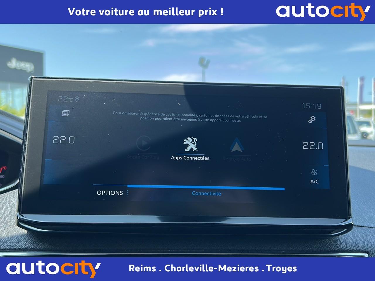 ABS avec répartiteur électronique de freinage (REF) et aide au freinage d'urgence (AFU)Accoudoir central avant à ouverture papillon, avec compartiment de rangement éclairé et réfrigérableAide graphique et sonore au stationnement arrièreAir conditionné automatique bi-zone avec aérateurs aux places arrièreAirbags frontaux conducteur et passager adaptatifs (airbag passager déconnectable)Airbags latéraux conducteur et passager avantAirbags rideaux de tête aux places avant et arrièreAppuis-tête à sécurité optimisée réglables en hauteur sur les sièges conducteur et passager avant ainsi que sur les places latérales arrièresAvertisseur de temps de conduiteBandeau de pare-choc arrière chroméBanquette rabattable 1/3 - 2/3 (modularité 'Magic Flat' et commandes dans le coffre) avec accoudoir et trappe à skisBoîte à gants floquée et éclairéeCalandre à damier chroméCeintures de sécurité arrière trois points à enrouleur (x3), avec prétensionneurs et limiteurs d'effort aux places latéralesCeintures de sécurité avant trois points à enrouleur, réglables en hauteur avec prétensionneurs et limiteurs d'effortCommande de verrouillage à distance (deux plips)Contrôle dynamique de stabilité CDS avec antipatinage électronique ASRDécors de planche de bord et panneaux de portes aspect carboneDécors intérieurs (baguettes de planche de bord et panneaux de portes, enjoliveur de console) chromésDémarrage mains libresDétection de sous-gonflage indirecteDirection assistée électrique, avec colonne de direction réglable en hauteur et profondeur (mécanique)Drive Mode : Choix de 2 modes de conduite (Eco ou Sport)Eclairage intérieur à LED : plafonniersEnjoliveurs d'arc de pavillon en inoxEnjoliveurs en inox sur les protecteurs de bas de portesEssuie-glace arrière avec déclenchement automatique en marche arrièreEssuie-vitre avant avec système de lavage 'Magic Wash'Fixations pour trois sièges enfants suivant norme ISOFIX aux places passager avant et latérales arrièreFonction 'Mirror Screen' (Apple Carplay / Android Auto)Frein de stationnement électrique avec aide au démarrage en penteIndicateur de rapport conseilléInserts d'ailes avant chromésJantes alliage 18" 'Detroit' bi-ton diamantées Gris StormKit de dépannage pneumatiqueLève-vitres électriques avant et arrière, séquentiels et antipincementLunette arrière chauffante avec antennes sérigraphiéesMiroirs de courtoisie éclairésNavigation 3D connectée avec reconnaissance vocale, écran tactile capacitif 10" HDPack City 1Pack Safety PlusPack VisibilitéPassages de roues rapportés noirsPeinture métallisée Bleu CélèbesPEUGEOT Connect SOS & Assistance et TéléservicesPeugeot i-Cockpit : combiné tête haute numérique haute qualité d'affichage, écran tactile capacitif 10" HD et volant compact multi-fonctionsPlafonnier avec spots de lecture avant (x2) et arrière (x2)Plancher de coffre deux positionsPoches aumônières au dos des sièges avantPrise USB (dans la zone connectique)Prises 12V (x3 : zone connectique, arrière de console et coffre)Projecteurs 'Peugeot LED Technology' avec feux diurnes à LED sous projecteursRadio avec fonction DAB (Radio Numérique Terrestre), bi-tuner compatible MP3 et connectivité Bluetooth (audio streaming, kit mains libres), avec commandes au volant, 6 HP, écran tactile capacitif 10" HDReconnaissance étendue des panneaux de signalisation et préconisation de vitesseRégulateur et limiteur de vitesseRétroviseurs extérieurs couleur carrosserieRétroviseurs extérieurs électriques et dégivrants, rabattables électriquement avec éclairage d'accueil à LEDSabot de pare-choc avant gris métalliséSécurité enfant électrique des vitres arrièreSellerie TEP & Tissu 'Colyn'Siège conducteur avec réglage lombaireSiège conducteur et passager réglables en hauteurToggle Switches' chromés (touches 'piano' d'activation des fonctions de l'écran tactile)Verrouillage automatique de tous les ouvrants en roulantVitres latérales et lunette arrière surteintéesVolant cuir fleur