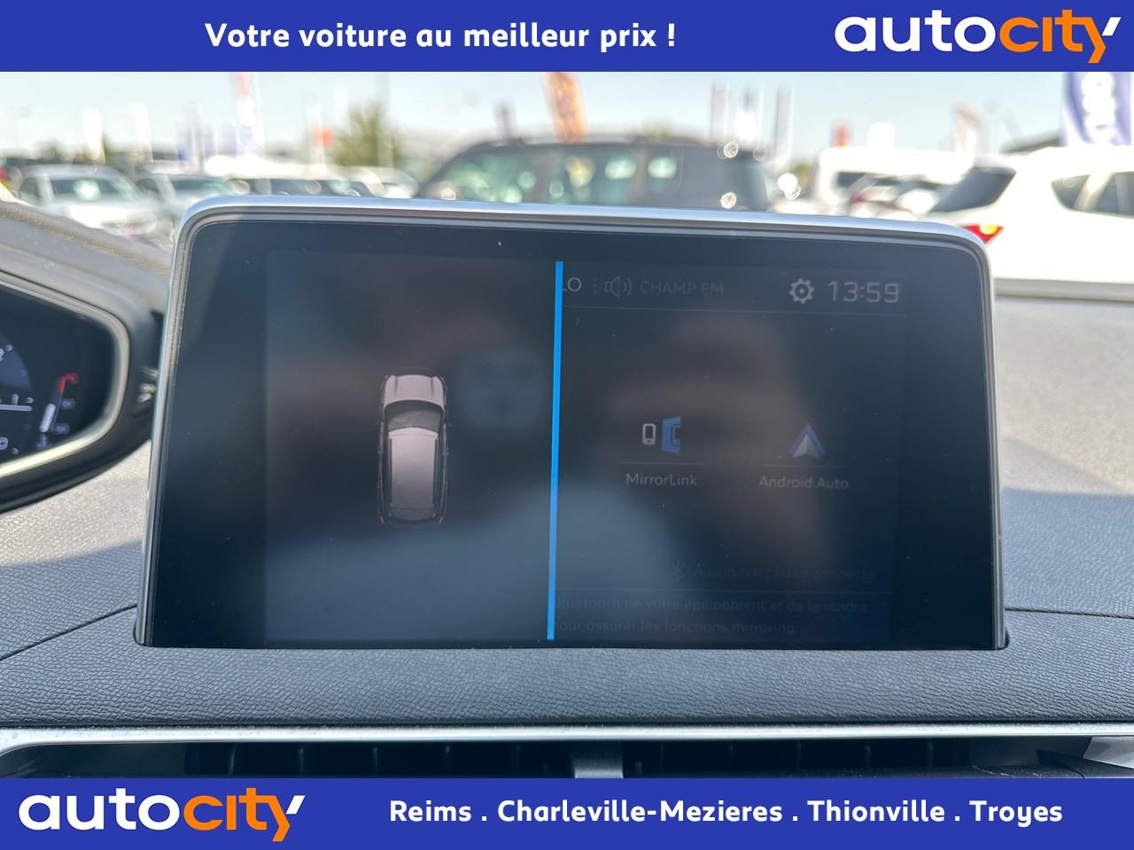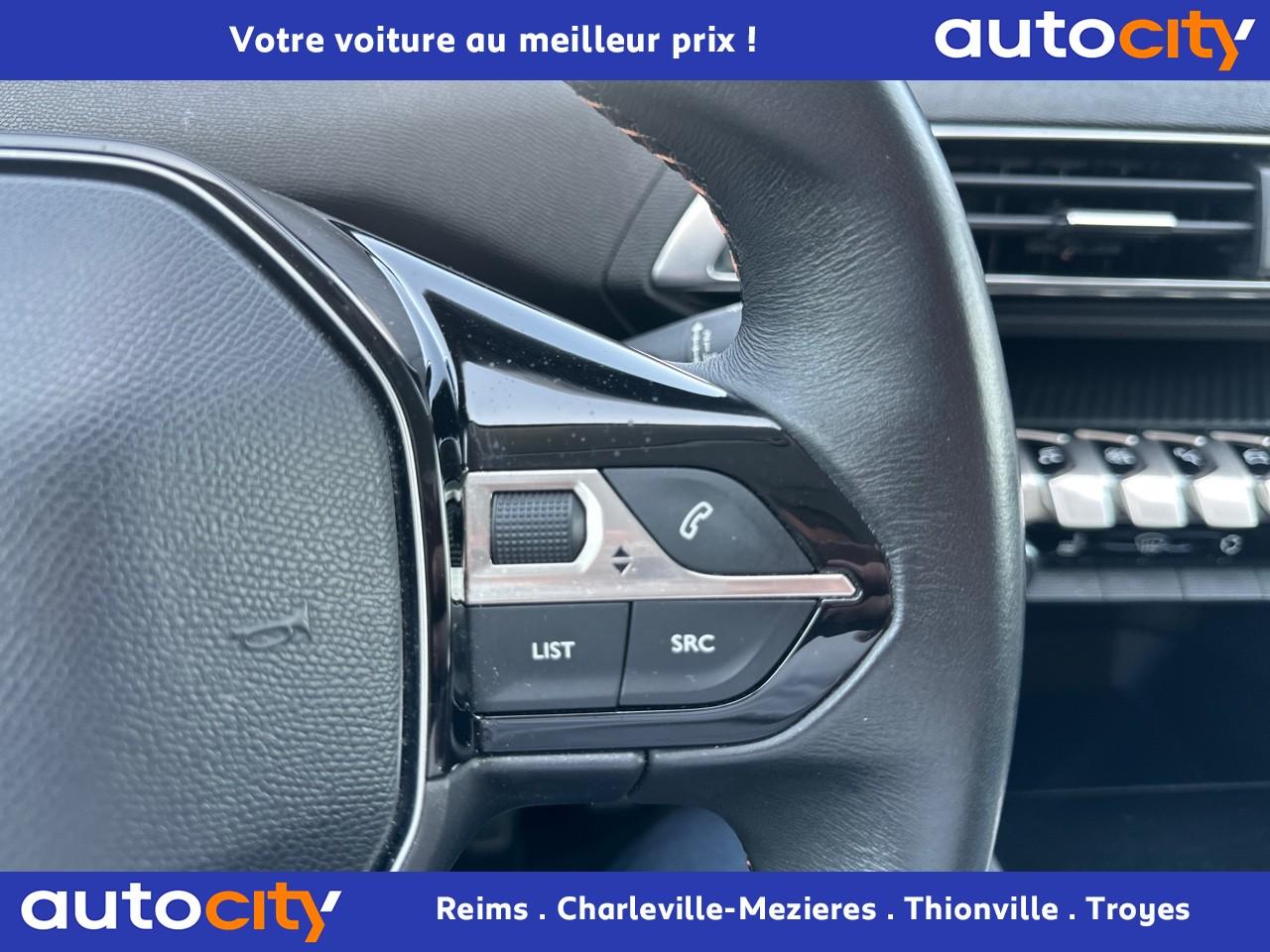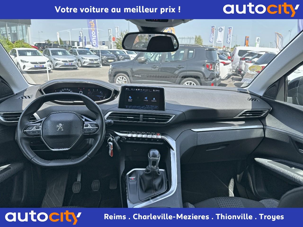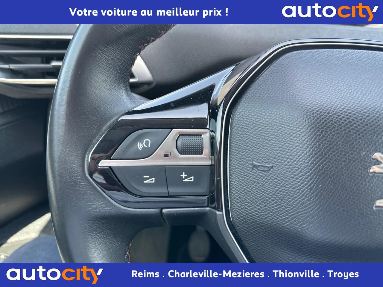 2 spots de lecture à l'arrière4 poignées de maintien rétractables (passagers avant et arrière) et 2 crochets portemanteau à l'arrièreABS avec répartiteur électronique de freinage (REF) et aide au freinage d'urgence (AFU)Accoudoir central avant à ouverture papillon, avec compartiment de rangement éclairé et réfrigérableAide graphique et sonore au stationnement arrièreAir conditionné automatique bi-zone avec aérateurs aux places arrièreAirbags frontaux conducteur et passager adaptatifsAirbags latéraux conducteur et passager avantAirbags rideaux de tête aux places avant et arrièreAlerte de franchissement Involontaire de ligneAlerte de temps de conduiteAppuis-tête à sécurité optimisée réglables en hauteur sur les sièges conducteur et passager avant ainsi que sur les places arrièresBandeau de pare-choc arrière chroméBanquette rabattable 1/3 - 2/3 (modularité 'Magic Flat' et commandes dans le coffre) avec accoudoir et trappe à skisBoîte à gants floquée et éclairéeCalandre avec jonc périphérique et facettes chromésCeintures avant à 3 points, réglables en hauteur, avec prétensionneurs et limiteurs d'effortCeintures de sécurité arrière trois points à enrouleur (x3), avec prétensionneurs et limiteurs d'effort aux places latéralesCommande de verrouillage à distance (deux plips)Contrôle dynamique de stabilité CDS avec antipatinage électronique ASRDécors de planche de bord et panneaux de portes aspect carboneDécors intérieurs (baguettes de planche de bord et panneaux de portes, enjoliveur de console) chromésDétection de sous-gonflage indirecteDeux porte-gobelets intégrés à la console centraleDirection assistée électrique, avec colonne de direction réglable en hauteur et profondeur (mécanique)Eclairage intérieur à LEDEnjoliveurs d'arc de pavillon en inoxEssuie-vitre arrière à activation automatique au passage en marche arrièreEssuie-vitre avant avec système de lavage 'Magic Wash'Filets aumônières au dos des sièges avantFixations pour trois sièges enfants suivant norme ISOFIX aux places passager avant et latérales arrièreFrein de stationnement électrique avec aide au démarrage en penteIndicateur de rapportInserts d'ailes avant chromésJantes alliage 17" 'Chicago'Kit de dépannage pneumatiqueLève-vitres électriques avant et arrière, séquentiels et antipincementLunette arrière chauffante avec antennes sérigraphiéesPack VisibilitéPassages de roues rapportés noirsPeugeot i-Cockpit combiné tête haute numérique reconfigurable, écran tactile capacitif 8" et volant compact multi-fonctionsPlafonnier avant avec spots de lecture (x2) et plafonnier arrière à extinction temporiséePlancher de coffre deux positionsPneus 215/65 R17 VPrise USBPrises 12V (x 3)Projecteurs antibrouillard halogènes avec enjoliveurs chromésProjecteurs halogènes à l’avant avec feux diurnes à LED intégrés dans le bloc optiqueRégulateur et limiteur de vitesseRétroviseurs extérieur électriques et dégivrantsRétroviseurs extérieurs couleur carrosserieRadio 6 HP, bi-tuner compatible MP3 et connectivité Bluetooth (audio streaming, kit mains libres), avec commandes au volant, écran tactile capacitif 8"Reconnaissance des panneaux de vitesse et préconisationSellerie Tissu 'Meco'Siège conducteur réglage en hauteurSiège passager à réglage manuel en hauteurTeinte de caisse Gris HurricaneToggle Switches' chromés (touches 'piano' d'activation des fonctions de l'écran tactile)Verrouillage automatique de tous les ouvrants en roulantVitres électriques AR avec sécurité enfantVolant cuir pleine fleur