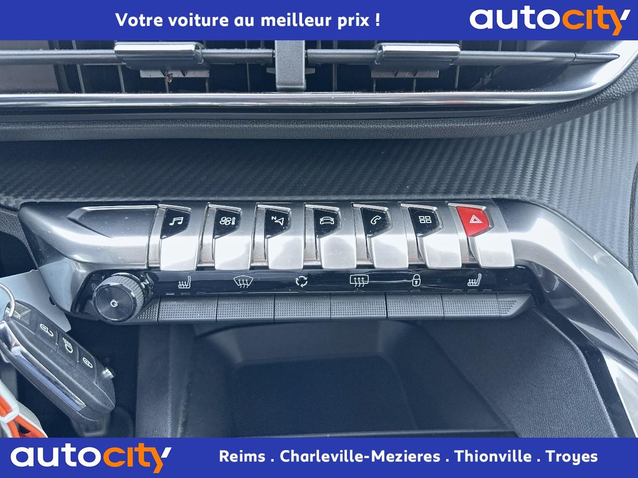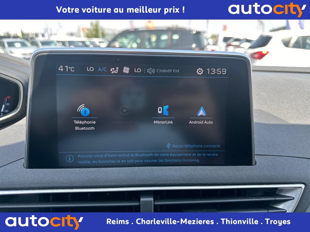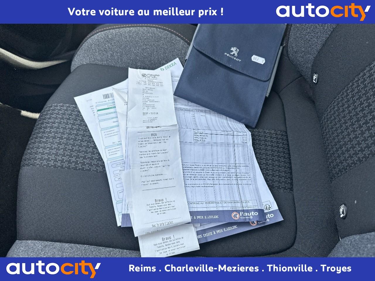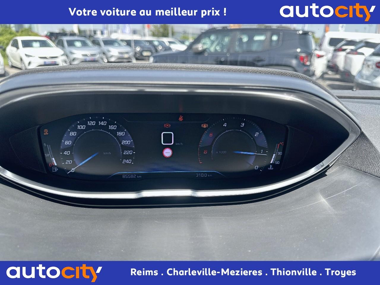 2 spots de lecture à l'arrière4 poignées de maintien rétractables (passagers avant et arrière) et 2 crochets portemanteau à l'arrièreABS avec répartiteur électronique de freinage (REF) et aide au freinage d'urgence (AFU)Accoudoir central avant à ouverture papillon, avec compartiment de rangement éclairé et réfrigérableAide graphique et sonore au stationnement arrièreAir conditionné automatique bi-zone avec aérateurs aux places arrièreAirbags frontaux conducteur et passager adaptatifsAirbags latéraux conducteur et passager avantAirbags rideaux de tête aux places avant et arrièreAlerte de franchissement Involontaire de ligneAlerte de temps de conduiteAppuis-tête à sécurité optimisée réglables en hauteur sur les sièges conducteur et passager avant ainsi que sur les places arrièresBandeau de pare-choc arrière chroméBanquette rabattable 1/3 - 2/3 (modularité 'Magic Flat' et commandes dans le coffre) avec accoudoir et trappe à skisBoîte à gants floquée et éclairéeCalandre avec jonc périphérique et facettes chromésCeintures avant à 3 points, réglables en hauteur, avec prétensionneurs et limiteurs d'effortCeintures de sécurité arrière trois points à enrouleur (x3), avec prétensionneurs et limiteurs d'effort aux places latéralesCommande de verrouillage à distance (deux plips)Contrôle dynamique de stabilité CDS avec antipatinage électronique ASRDécors de planche de bord et panneaux de portes aspect carboneDécors intérieurs (baguettes de planche de bord et panneaux de portes, enjoliveur de console) chromésDétection de sous-gonflage indirecteDeux porte-gobelets intégrés à la console centraleDirection assistée électrique, avec colonne de direction réglable en hauteur et profondeur (mécanique)Eclairage intérieur à LEDEnjoliveurs d'arc de pavillon en inoxEssuie-vitre arrière à activation automatique au passage en marche arrièreEssuie-vitre avant avec système de lavage 'Magic Wash'Filets aumônières au dos des sièges avantFixations pour trois sièges enfants suivant norme ISOFIX aux places passager avant et latérales arrièreFrein de stationnement électrique avec aide au démarrage en penteIndicateur de rapportInserts d'ailes avant chromésJantes alliage 17" 'Chicago'Kit de dépannage pneumatiqueLève-vitres électriques avant et arrière, séquentiels et antipincementLunette arrière chauffante avec antennes sérigraphiéesPack VisibilitéPassages de roues rapportés noirsPeugeot i-Cockpit combiné tête haute numérique reconfigurable, écran tactile capacitif 8" et volant compact multi-fonctionsPlafonnier avant avec spots de lecture (x2) et plafonnier arrière à extinction temporiséePlancher de coffre deux positionsPneus 215/65 R17 VPrise USBPrises 12V (x 3)Projecteurs antibrouillard halogènes avec enjoliveurs chromésProjecteurs halogènes à l’avant avec feux diurnes à LED intégrés dans le bloc optiqueRégulateur et limiteur de vitesseRétroviseurs extérieur électriques et dégivrantsRétroviseurs extérieurs couleur carrosserieRadio 6 HP, bi-tuner compatible MP3 et connectivité Bluetooth (audio streaming, kit mains libres), avec commandes au volant, écran tactile capacitif 8"Reconnaissance des panneaux de vitesse et préconisationSellerie Tissu 'Meco'Siège conducteur réglage en hauteurSiège passager à réglage manuel en hauteurTeinte de caisse Gris HurricaneToggle Switches' chromés (touches 'piano' d'activation des fonctions de l'écran tactile)Verrouillage automatique de tous les ouvrants en roulantVitres électriques AR avec sécurité enfantVolant cuir pleine fleur
