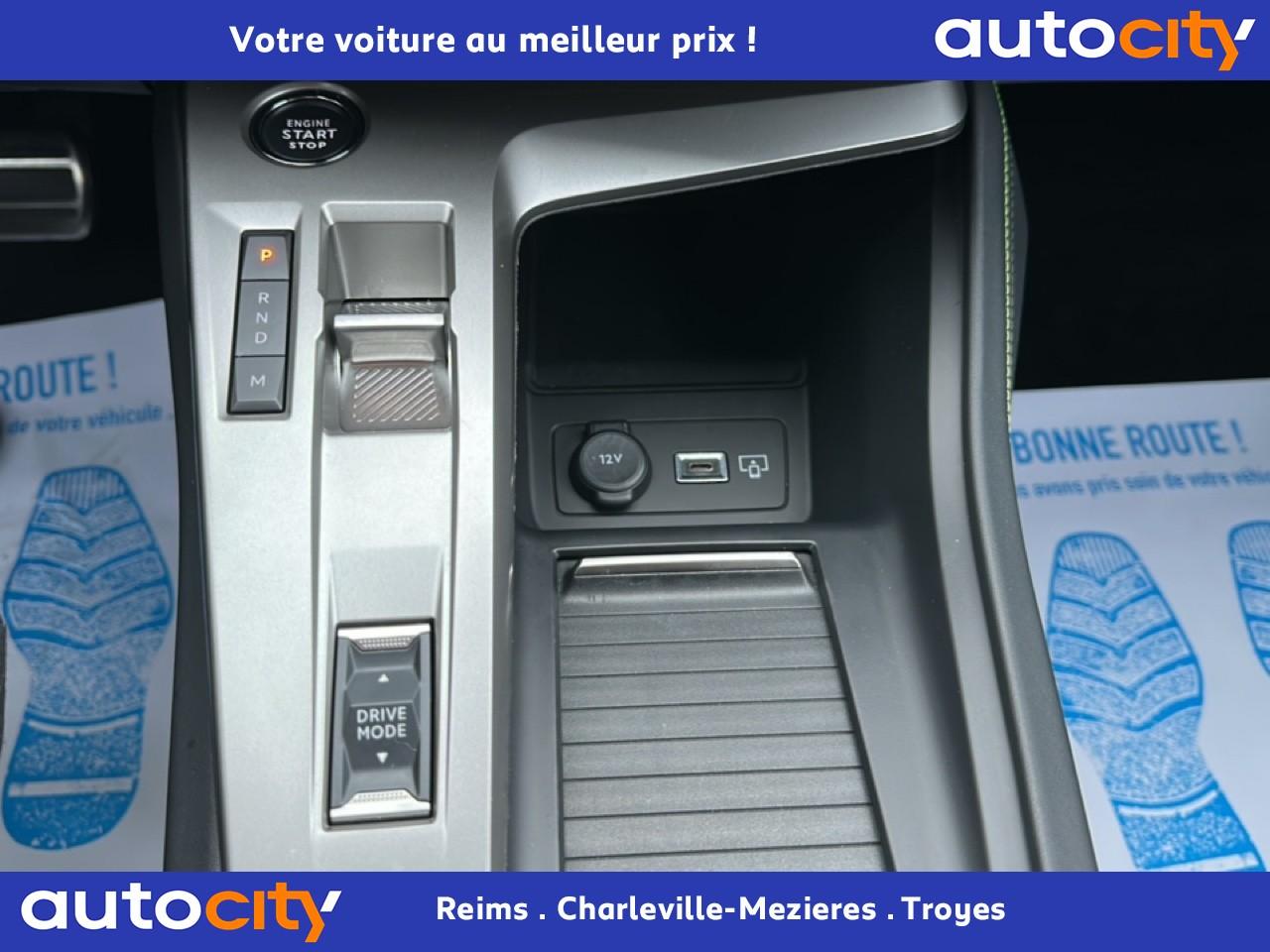2 Prises USB C à l'arrière2 Prises USB C à l'avant2 télécommandes 3 boutons4 poignées de maintienAccès et démarrage mains-libresAccoudoir central avant avec rangementAide au stationnement arrièreAide au stationnement avantAir conditionné à régulation automatique 2 zonesAirbags frontaux conducteur et passager adaptatifs (passager neutralisable), latéraux avant et rideaux avant et arrièreAlerte active de franchissement involontaire de ligne et bas côtéAlerte attention conducteurAllumage automatique des projecteursBanquette arrière fractionnable (40/20/40)Barres de toit Aluminium / Noir OnyxBoitiers de rétroviseurs extérieurs noir brillantCalandre avant spécifique Noir verni avec inserts chromés et écopes Noir BrillantCaméra de reculCeintures de sécurité arrière trois points à enrouleur (x3), avec prétensionneurs et limiteurs d'effort aux places latéralesCeintures de sécurité AV réglables en hauteur : 3 points à enrouleurs avec prétensionneur et limiteur effort intégréCiel de pavillon noirCommande de déverrouillage de la banquette arrière depuis le coffreCommutation automatique des feux de routeDécor Aluminium sur panneaux de porteDétection de sous-gonflage des pneumatiquesDiffuseurs d'air aux places arrièreDirection assistée électriqueDriver Sport Pack : personnalisation du combiné spécifique, sonorité du moteur amplifiée et plus sportive ( désactivable)Elargisseurs de pare chocs avant et de bas de caisse latérauxESP (contrôle dynamique de stabilité ) + aide au démarrage en penteEssuie-glace à déclenchement automatiqueFeux arrière spécifiques avec allumage dynamique griffe à griffeFeux diurnes à LED avec signature lumineuseFixations Isofix (aux places latérales arrière)Fonction Mirror Screen (Apple Carplay / Android Auto ) sans filFrein de parking électriqueJantes alliage 18'' Kamakura diamantéesJupe arrière en noir brillant avec jonc chroméLécheurs de vitres noir brillantLève-vitres électriques arrière à fonctions séquentielle et anti-pincementLève-vitres électriques avant à commande séquentielle et anti-pincementLimiteur de vitesseModes de conduite Eco / SportMonogrammes latéraux emblème LionNavigation connectée avec écran central tactile 10‘’ et i-Toggles virtuels personnalisablesPack Drive AssistPack Safety PlusPare brise teinté acoustiquePédaliers Sport et repose-pied en AluminiumPeinture métallisée Bleu AvatarPeugeot Connect SOS & AssistancePeugeot i Cockpit avec combiné d'instrumentation numérique 10'' personnalisablePlanche de bord avec jonc transversal peint, décor Alu et surpiqûres VertPrise 12V à l'avantProjecteurs Matrix LEDReconnaissance étendue des panneaux de circulationRéglage lombaire conducteurRétroviseur intérieur électrochromeRétroviseurs extérieurs électriques avec clignotants à LED intégrés, dégivrants et rabattables électriquementSellerie tri matières tissu / TEP / New BelomkaSeuils de portes avant en aluminiumSièges conducteur et passager réglables en hauteurSmart Multidrive : personnalisation du combiné et éclairage d'ambiance LED intérieur associés aux modes de conduiteSurtapis aux places avant et arrièreVitres de custode arrière et lunette arrière chauffante temporisée surteintéesVitres latérales et lunette arrière surteintéesVolant à réglage manuel en hauteur et en profondeurVolant cuir