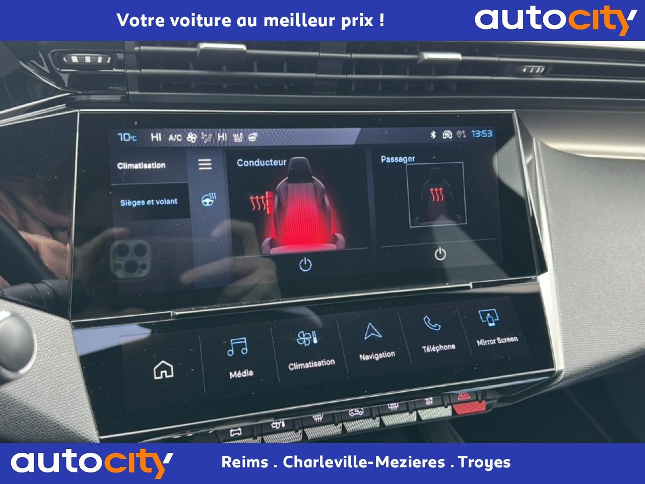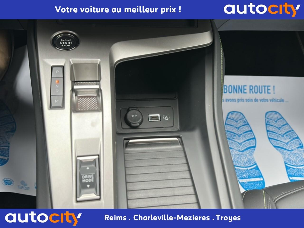 2 Prises USB C à l'arrière2 Prises USB C à l'avant2 télécommandes 3 boutons4 poignées de maintienAccès et démarrage mains-libresAccoudoir central avant avec rangementAide au stationnement arrièreAide au stationnement avantAir conditionné à régulation automatique 2 zonesAirbags frontaux conducteur et passager adaptatifs (passager neutralisable), latéraux avant et rideaux avant et arrièreAlerte active de franchissement involontaire de ligne et bas côtéAlerte attention conducteurAllumage automatique des projecteursBanquette arrière fractionnable (40/20/40)Barres de toit Aluminium / Noir OnyxBoitiers de rétroviseurs extérieurs noir brillantCalandre avant spécifique Noir verni avec inserts chromés et écopes Noir BrillantCaméra de reculCeintures de sécurité arrière trois points à enrouleur (x3), avec prétensionneurs et limiteurs d'effort aux places latéralesCeintures de sécurité AV réglables en hauteur : 3 points à enrouleurs avec prétensionneur et limiteur effort intégréCiel de pavillon noirCommande de déverrouillage de la banquette arrière depuis le coffreCommutation automatique des feux de routeDécor Aluminium sur panneaux de porteDétection de sous-gonflage des pneumatiquesDiffuseurs d'air aux places arrièreDirection assistée électriqueDriver Sport Pack : personnalisation du combiné spécifique, sonorité du moteur amplifiée et plus sportive ( désactivable)Elargisseurs de pare chocs avant et de bas de caisse latérauxESP (contrôle dynamique de stabilité ) + aide au démarrage en penteEssuie-glace à déclenchement automatiqueFeux arrière spécifiques avec allumage dynamique griffe à griffeFeux diurnes à LED avec signature lumineuseFixations Isofix (aux places latérales arrière)Fonction Mirror Screen (Apple Carplay / Android Auto ) sans filFrein de parking électriqueJantes alliage 18'' Kamakura diamantéesJupe arrière en noir brillant avec jonc chroméLécheurs de vitres noir brillantLève-vitres électriques arrière à fonctions séquentielle et anti-pincementLève-vitres électriques avant à commande séquentielle et anti-pincementLimiteur de vitesseModes de conduite Eco / SportMonogrammes latéraux emblème LionNavigation connectée avec écran central tactile 10‘’ et i-Toggles virtuels personnalisablesPack Drive AssistPack Safety PlusPare brise teinté acoustiquePédaliers Sport et repose-pied en AluminiumPeinture métallisée Bleu AvatarPeugeot Connect SOS & AssistancePeugeot i Cockpit avec combiné d'instrumentation numérique 10'' personnalisablePlanche de bord avec jonc transversal peint, décor Alu et surpiqûres VertPrise 12V à l'avantProjecteurs Matrix LEDReconnaissance étendue des panneaux de circulationRéglage lombaire conducteurRétroviseur intérieur électrochromeRétroviseurs extérieurs électriques avec clignotants à LED intégrés, dégivrants et rabattables électriquementSellerie tri matières tissu / TEP / New BelomkaSeuils de portes avant en aluminiumSièges conducteur et passager réglables en hauteurSmart Multidrive : personnalisation du combiné et éclairage d'ambiance LED intérieur associés aux modes de conduiteSurtapis aux places avant et arrièreVitres de custode arrière et lunette arrière chauffante temporisée surteintéesVitres latérales et lunette arrière surteintéesVolant à réglage manuel en hauteur et en profondeurVolant cuir