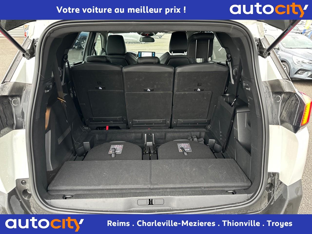 3 Sièges arrière en rang 2 (indépendants, coulissants, inclinables et escamotables dans le plancher)Accoudoir central avant à ouverture papillon, avec compartiment de rangement éclairé et réfrigérableAir conditionné automatique bi-zone avec aérateurs aux places arrièreAirbags frontaux conducteur et passager adaptatifs (passager neutralisable)Airbags latéraux conducteur et passager avantAirbags rideaux rangs 1, 2 et 3Appuis-tête à sécurité optimisée réglables en hauteur sur les sièges conducteur et passager avant ainsi que sur les places latérales arrièresAvertisseur de temps de conduiteBarres de toit longitudinales profilées en aluminiumCalandre à damier chroméCarte d'accès et démarrage mains libresCoques de rétroviseurs extérieurs Noir Perla NeraDécors de planche de bord et panneaux de portes en maille 'Brumeo'Détection de sous-gonflage indirecteDeux sièges escamotables et extractibles pour les passagers du troisième rangDirection assistée électrique, avec colonne de direction réglable en hauteur et profondeur (mécanique)Drive Mode : Choix de 2 modes de conduite (Eco ou Sport)Enjoliveurs d'arc de pavillon en inoxEssuie-vitre avant avec système de lavage 'Magic Wash'Fixation ISOFIX pour sièges enfants sur 3 places arrièreFonction 'Mirror Screen' (Apple Carplay / Android Auto)Frein de stationnement électrique avec aide au démarrage en penteHabitacle et ciel de pavillon Noir MistralInserts d'ailes avant chromésJantes alliage 18" 'Detroit' bi-ton diamantées Gris StormKit de dépannage pneumatiqueLève-vitres électriques et séquentiels avec antipincementLunette arrière surteintée chauffanteNavigation 3D connectée avec reconnaissance vocale, écran tactile capacitif 10" HDPack City 1Pack Eclairage d'ambiancePack EnfantsPack Safety PlusPack VisibilitéPare-soleil avec miroirs de courtoisie éclairésPassages de roues rapportés noirsPeinture métallisée Metallic CopperPeugeot i-Cockpit combiné tête haute numérique reconfigurable,et volant compact multi-fonctionsPlafonniers avant, rang 2 et rang 3 à LED avec 2 spots de lecturePrises 12V (x3 : zone connectique, arrière de console et coffre)Projecteurs haut de gamme 'Peugeot Full LED Technology'Protecteurs de bas de portes avec inserts Inox BrillantReconnaissance étendue des panneaux de circulationRégulateur et limiteur de vitesseRétroviseur intérieur photosensible (position automatique ou manuelle)Rétroviseurs extérieurs électriques et dégivrants, rabattables électriquement,éclairage d'accueil à LED,témoin de surveillance d'angles mortsSabot de pare-choc avant MétallureSécurité enfant électrique des vitres arrièreSellerie TEP & Tissu 'Colyn'Siège conducteur avec réglage lombaire manuelSiège passager avant avec mise en tabletteSièges conducteur et passager réglables en hauteurToggle Switches' chromés (touches 'piano' d'activation des fonctions de l'écran tactile)Trappes de rangement (x2) aux pieds des passagers du deuxième rangVitres latérales AR surteintéesVolant en cuir Fleur Mistral