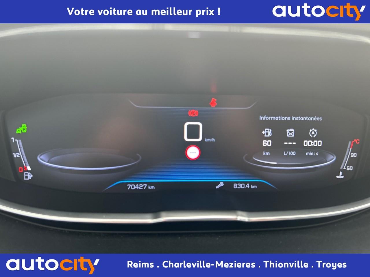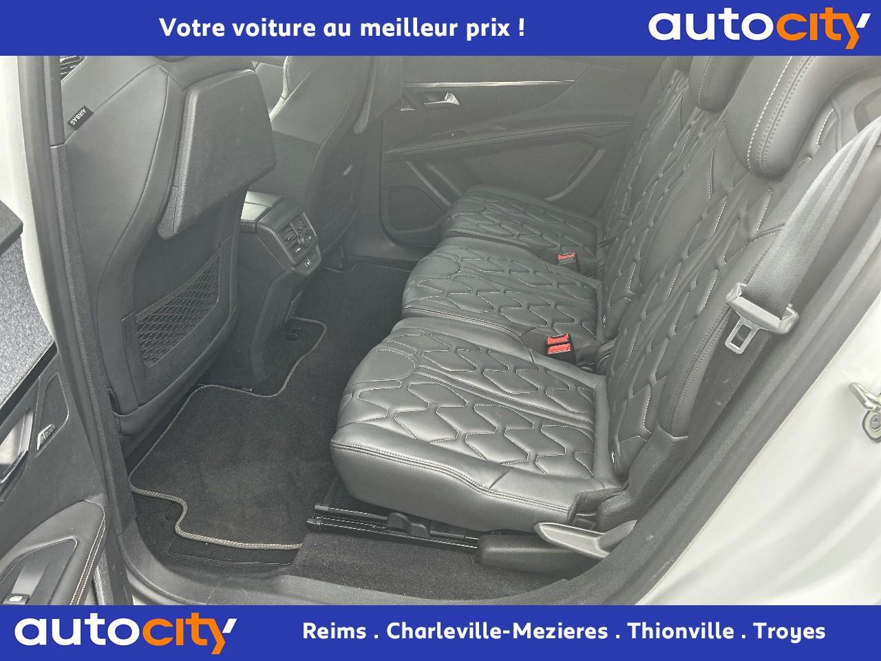 3 Sièges arrière en rang 2 (indépendants, coulissants, inclinables et escamotables dans le plancher)ABS (Antiblocage de roues)Accès et démarrage mains-libresAccoudoir central avant à ouverture papillon, avec compartiment de rangement éclairé et réfrigérableAide sonore et graphique au stationnement arrièreAir conditionné automatique bi-zone avec aérateurs aux places arrièreAirbags frontaux et latéraux conducteur et passager à déclenchement adaptatif pour les Airbag frontaux (Airbag passager désactivable par clé)Airbags rideaux de tête aux places avant et arrièreAlerte de temps de conduiteAppuis-tête à sécurité optimisée réglables en hauteur sur les sièges conducteur et passager avant ainsi que sur les places arrièresAssistance au freinage d'urgenceBarres de toit longitudinales profilées en aluminiumBoîte à gants floquée et éclairéeCalandre avec jonc périphérique chrome brillant et satiné, damier chromé et lettrage Peugeot noirCeintures avant à 3 points, réglables en hauteur, avec prétensionneurs et limiteurs d'effortCeintures de sécurité trois points à enrouleur (x2) au troisième rangCeintures de sécurité trois points à enrouleur (x3) au deuxième rang, avec prétensionneurs et limiteurs d'effort aux places latéralesCommande de verrouillage à distance (deux plips)Contrôle dynamique de stabilité CDS avec antipatinage électronique ASRCoques de rétroviseurs extérieurs Noir Perla NeraDécors de planche de bord et panneaux de portes en maille 'Brumeo'Décors intérieurs (baguettes de planche de bord et panneaux de portes, enjoliveur de console) chromésDétection de sous-gonflage indirecteDeux sièges escamotables et extractibles pour les passagers du troisième rangDirection assistée électrique, avec colonne de direction réglable en hauteur et profondeur (mécanique)Eclairage intérieur à LED : plafonniers, rangements, coffreEnjoliveur de seuil d'entrée de coffre chroméEnjoliveurs d'arc de pavillon en inoxEnjoliveurs en inox sur les protecteurs de bas de portesEssuie-glace arrière avec déclenchement automatique en marche arrièreEssuie-vitre avant avec système de lavage 'Magic Wash'Filets aumônières au dos des sièges avantFixations ISOFIX sur les 3 sièges de la 2ème rangéeFonction Mirror ScreenFrein de stationnement électrique avec aide au démarrage en penteHabitacle et ciel de pavillon Noir MistralIndicateur de rapport optimalInserts d'ailes avant chromésJantes alliage 18" 'Detroit' bi-ton diamantéesJoncs de vitres latérales en inoxKit de dépannage pneumatiqueLève-vitres électriques avant et arrière, séquentiels et antipincementLunette arrière chauffante avec antennes sérigraphiéesMiroirs de courtoisie éclairésPack City 1Pack Eclairage d'ambiancePack Safety PlusPack VisibilitéPassages de roues rapportés noirsPédalier et repose-pied conducteur en aluminiumPeinture Blanc BanquisePeugeot Connect : Navigation 3D connectée avec reconnaissance vocale + PEUGEOT Connect SOS & AssistancePeugeot i-Cockpit Amplify: choix de 2 ambiances paramétrablesPeugeot i-Cockpit combiné tête haute numérique reconfigurable, écran tactile capacitif 8" et volant compact multi-fonctionsPlafonnier avant avec spots de lecture (x2) et plafonniers à extinction temporisée aux deuxième et troisième rangsPoignées de maintien (x4) rétractables avec frein (crochets pour cintres aux places arrière)Porte-gobelets dans la console centrale avant (x2)Prise 12V (x3) : à l'avant, à l'arrière et dans le coffrePrise USBProjecteurs 'Peugeot Full LED Technology'Radio 6 HP, bi-tuner compatible MP3 et connectivité Bluetooth (audio streaming, kit mains libres), avec commandes au volant, écran tactile capacitif 8"Reconnaissance des panneaux de vitesse et préconisationRégulateur et limiteur de vitesseRépartiteur électronique de freinage REFRétroviseurs extérieurs électriques et dégivrantsRétroviseurs extérieurs rabattables électriquement avec 'Lion Spotlight'Rideaux pare-soleil en rang 2Sabot de pare-choc avant gris métalliséSécurité enfant électrique des vitres arrièreSellerie TEP & Tissu 'Imila'Seuils de portes avant en inoxSiège conducteur avec réglage lombaire manuelSiège conducteur réglable en hauteurSiège passager avant mécanique avec mise en tabletteSiège passager avant réglable en hauteur manuellementSortie d'echappement avec canule chroméeSpots de lecture (x2) aux deuxième et troisième rangsSurtapis aux places avant et arrièreTablettes aviation au dos des sièges de la 1ère rangéeToggle Switches' chromés (touches 'piano' d'activation des fonctions de l'écran tactile)Toit 'Black Diamond' (toit Noir Perla Nera)Trappes de rangement (x2) aux pieds des passagers du deuxième rangVerrouillage automatique de tous les ouvrants en roulantVitres latérales et lunette arrière surteintéesVolant cuir pleine fleur perforé avec bagues chromées et badge GT Line