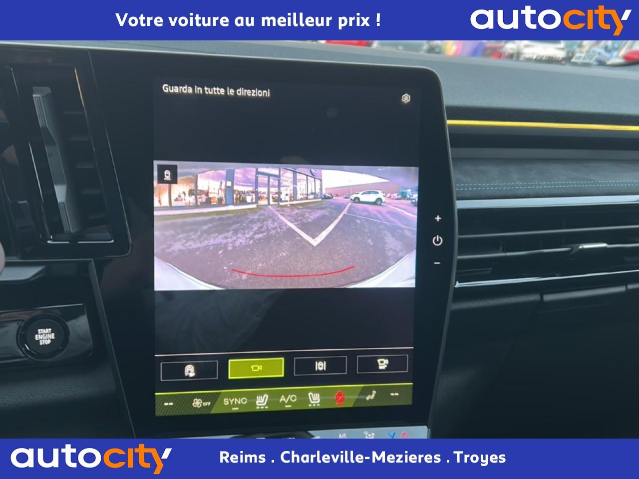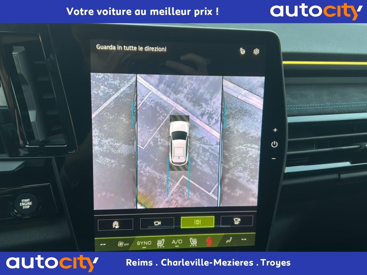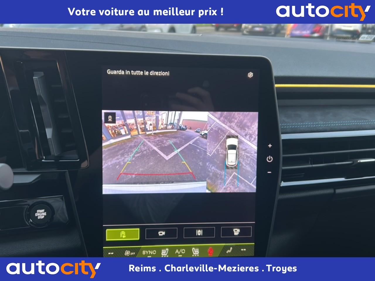 Accoudoir central ARActive driver assist : régulateur de vitesse adaptatif intelligent + centrage dans la voie avec scène réalisteAide au démarrage en côteAide au maintien dans la voieAide au parking avant, arrière et latéralAlerte de distance de sécuritéAlerte sortie sécurisée des occupantsAndroid Auto et Apple CarPlayAntenne requin Noir étoiléAppel d'urgenceAvertisseur d'angle mortAvertisseur de changement de voieAvertisseur de sortie de stationnement en marche arrièreBanquette arrière coulissanteBarres de toit Noir SatinCalandre identitaire noir brillantCaméra de recul analogiqueCarte accès et démarrage mains-libresChargeur smartphone à inductionClimatisation automatique bi-zoneCommutation automatique des feux route/croisementConduite hybride prédictiveDétection arrière avec correction trajectoire d’urgenceDétection avant avec correction trajectoire d’urgenceEcran conducteur de 12.3''Essuie-vitres automatiquesFeux LED adaptive vision (avec fonction antibrouillard intégrée)Finition planche de bord et panneaux de porte en AlcantaraFOTA (Firmware Over-The-Air)Frein de parking électrique avec fonction Auto-HoldFreinage automatique d'urgence en marche arrière (RAEB)Freinage d'urgence autonome avec fonction intersectionFreinage d’urgence automatique urbain/péri-urbain avec détection piétons et cyclistesHayon électrique mains-libresJantes alliage 20” altitude diamanté noir avec vernis fumé grisLimiteur de vitesseLogos avant et arrière noir brillantMonogramme noir brillantMultisense 4 modes (perso/sport/comfort/eco)OpenR link 12” : système multimédia connecté avec Google intégré incluant pack navigation (Google Maps et Google Assistant) pendant 5 ans, et pack infotainment (Google Play)Pack remote services (via l'application My Renault) inclus pendant 5 ansPédalier en aluminiumPeinture Rouge FlammeReconnaissance des panneaux de signalisation avec alerte de survitesseRéplication smartphone sans filRétroviseur intérieur électrochrome sans contourRétroviseurs extérieurs rabattables électriquementSellerie mixte tissu carbone Alcantara avec surpiqûres bleu, blanc, rougeSiège conducteur électrique avec fonction massage réglage lombaireSiège passager électriqueSiège passager réglable en hauteurSièges avant chauffantsSystème audio Arkamys auditorium avec 6 haut-parleursSystème d'alerte franchissement de ligne (LDW)Système de reconnaissance faciale du conducteurSystème de surveillance de l'attention du conducteurVitres arrière surteintéesVolant chauffantVolant spécifique en textile refined avec insert Alcantara