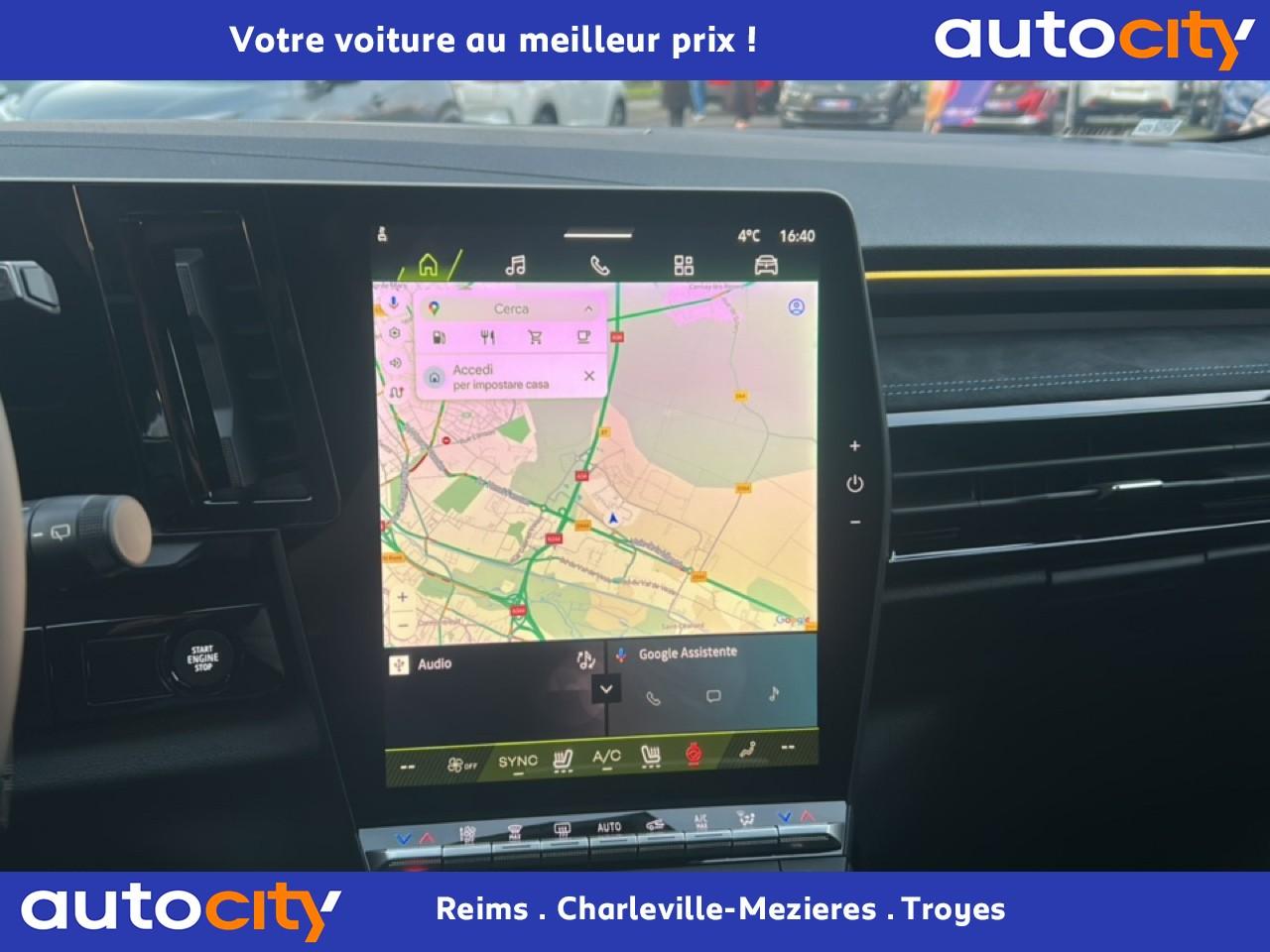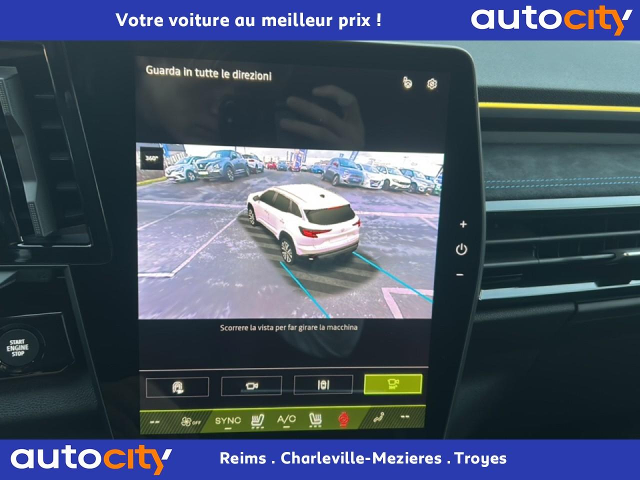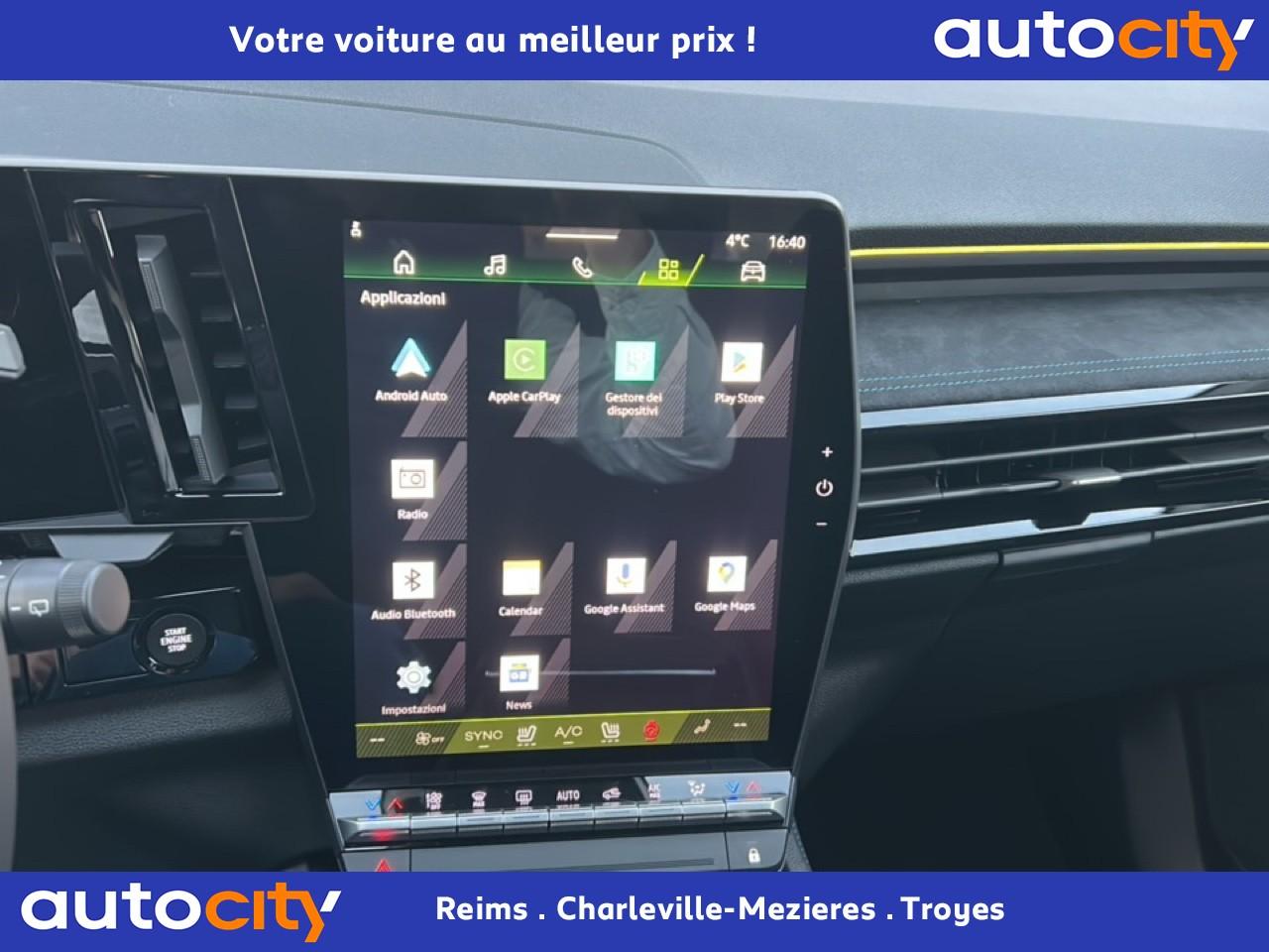 Accoudoir central ARActive driver assist : régulateur de vitesse adaptatif intelligent + centrage dans la voie avec scène réalisteAide au démarrage en côteAide au maintien dans la voieAide au parking avant, arrière et latéralAlerte de distance de sécuritéAlerte sortie sécurisée des occupantsAndroid Auto et Apple CarPlayAntenne requin Noir étoiléAppel d'urgenceAvertisseur d'angle mortAvertisseur de changement de voieAvertisseur de sortie de stationnement en marche arrièreBanquette arrière coulissanteBarres de toit Noir SatinCalandre identitaire noir brillantCaméra de recul analogiqueCarte accès et démarrage mains-libresChargeur smartphone à inductionClimatisation automatique bi-zoneCommutation automatique des feux route/croisementConduite hybride prédictiveDétection arrière avec correction trajectoire d’urgenceDétection avant avec correction trajectoire d’urgenceEcran conducteur de 12.3''Essuie-vitres automatiquesFeux LED adaptive vision (avec fonction antibrouillard intégrée)Finition planche de bord et panneaux de porte en AlcantaraFOTA (Firmware Over-The-Air)Frein de parking électrique avec fonction Auto-HoldFreinage automatique d'urgence en marche arrière (RAEB)Freinage d'urgence autonome avec fonction intersectionFreinage d’urgence automatique urbain/péri-urbain avec détection piétons et cyclistesHayon électrique mains-libresJantes alliage 20” altitude diamanté noir avec vernis fumé grisLimiteur de vitesseLogos avant et arrière noir brillantMonogramme noir brillantMultisense 4 modes (perso/sport/comfort/eco)OpenR link 12” : système multimédia connecté avec Google intégré incluant pack navigation (Google Maps et Google Assistant) pendant 5 ans, et pack infotainment (Google Play)Pack remote services (via l'application My Renault) inclus pendant 5 ansPédalier en aluminiumPeinture Rouge FlammeReconnaissance des panneaux de signalisation avec alerte de survitesseRéplication smartphone sans filRétroviseur intérieur électrochrome sans contourRétroviseurs extérieurs rabattables électriquementSellerie mixte tissu carbone Alcantara avec surpiqûres bleu, blanc, rougeSiège conducteur électrique avec fonction massage réglage lombaireSiège passager électriqueSiège passager réglable en hauteurSièges avant chauffantsSystème audio Arkamys auditorium avec 6 haut-parleursSystème d'alerte franchissement de ligne (LDW)Système de reconnaissance faciale du conducteurSystème de surveillance de l'attention du conducteurVitres arrière surteintéesVolant chauffantVolant spécifique en textile refined avec insert Alcantara